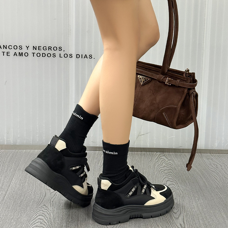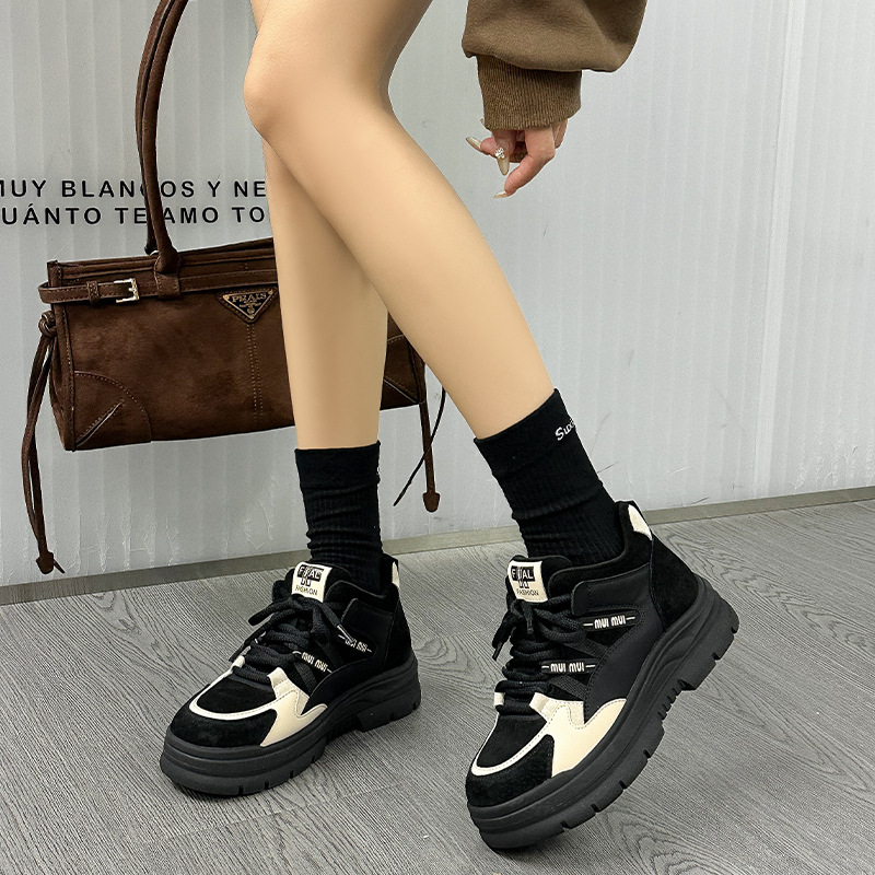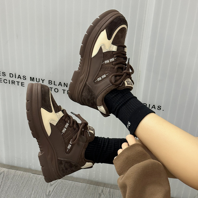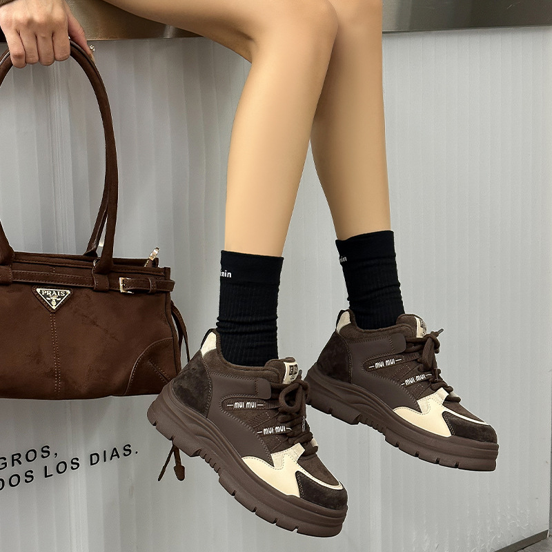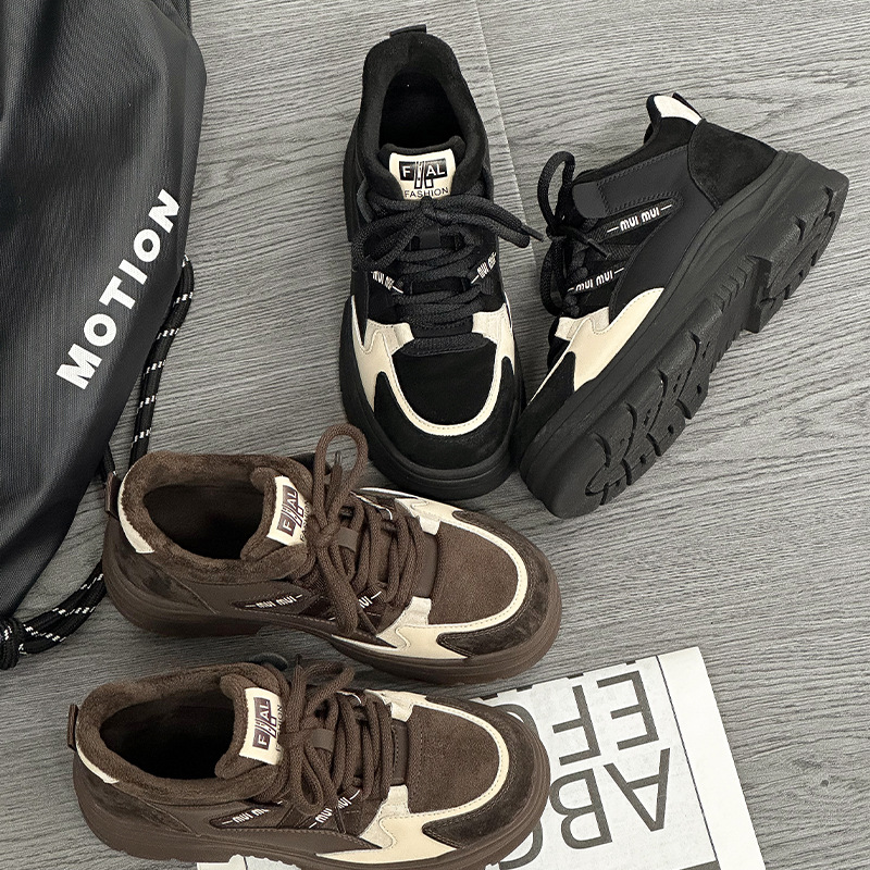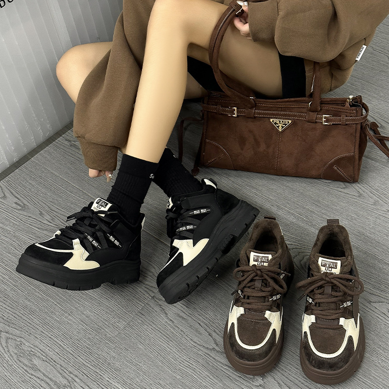 Женские кроссовки на толстой подошве с плюшевой подкладкой, популярная новинка 2024 года, подходят для весны, осени и зимы, повседневная и универсальная женская спортивная обувь.