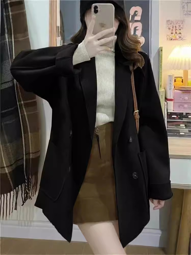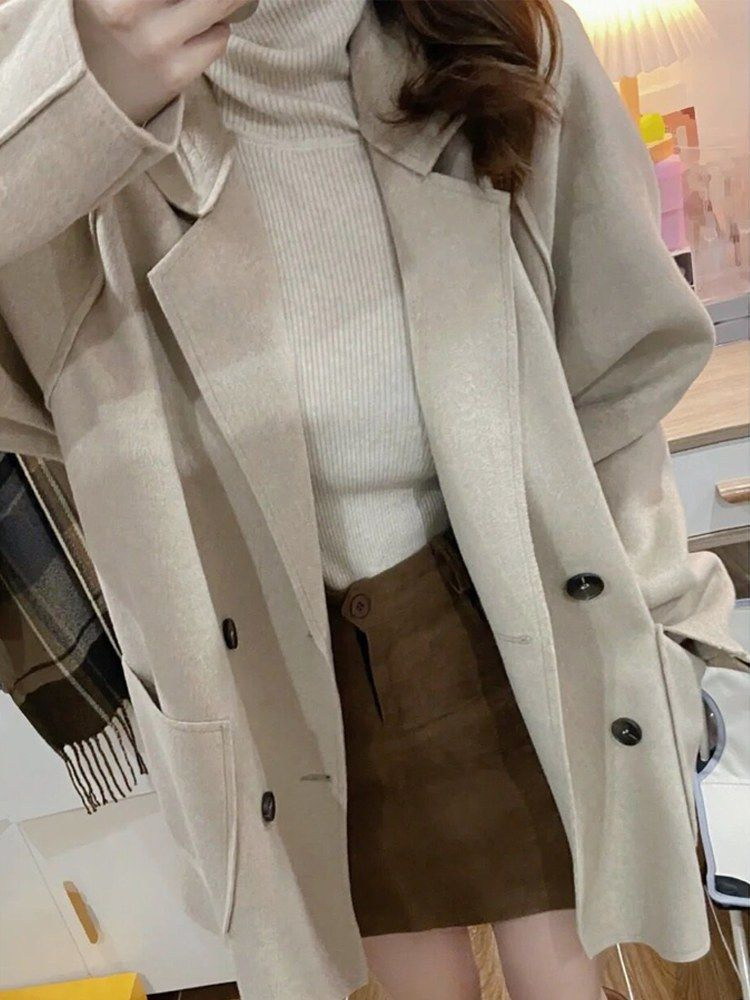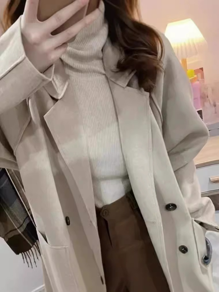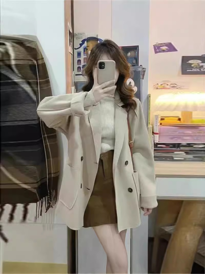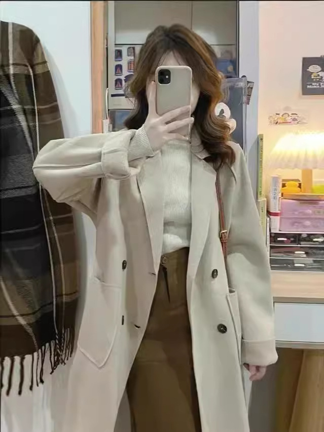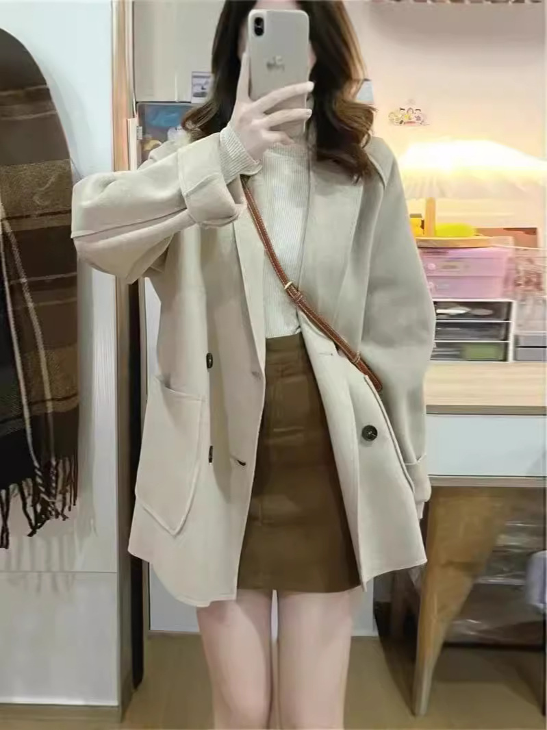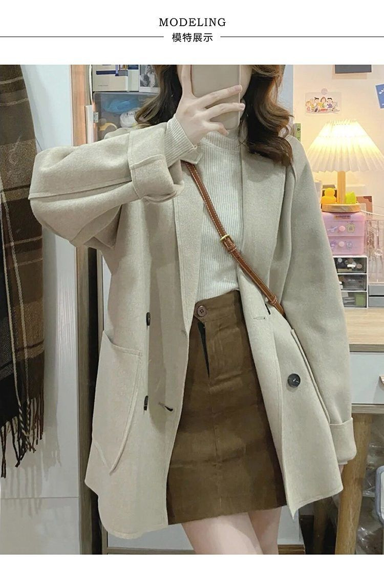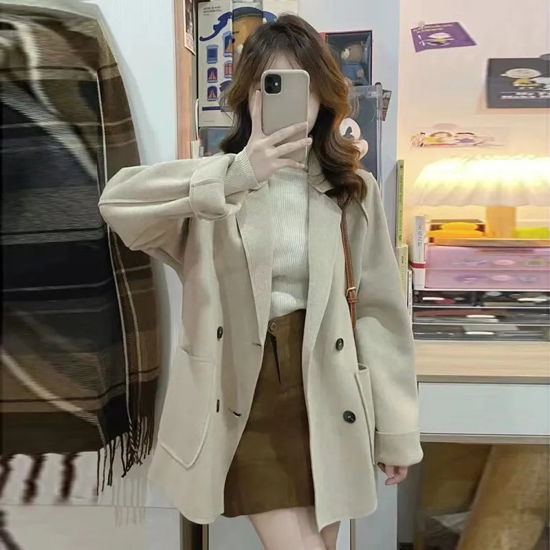 Трансграничное двухстороннее плюшевое шерстяное пальто осень и зима 2024 новая свободная повседневная корейская шерстяная куртка с лацканом женская