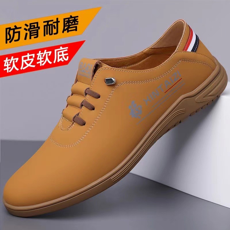 Фабрика оптовая мужская новая кожаная обувь мужская повседневная обувь нескользящая и износостойкая мягкая подошва бизнес-бобовая обувь