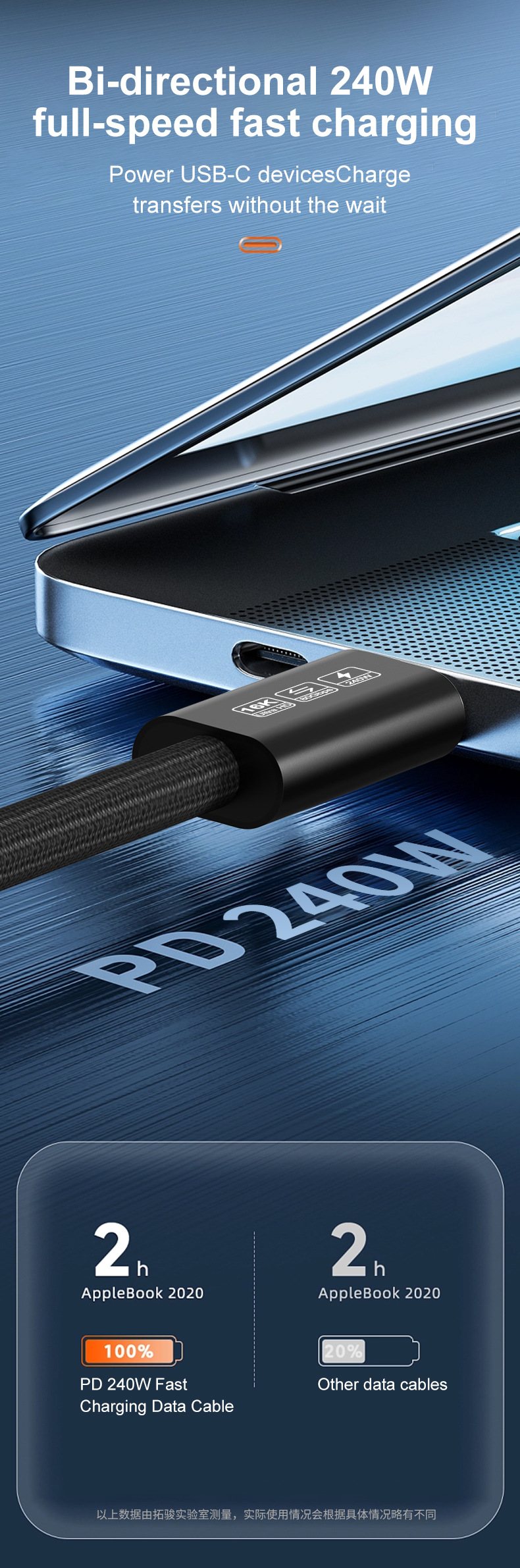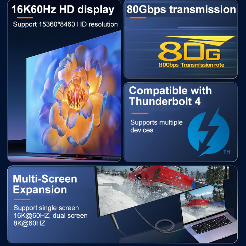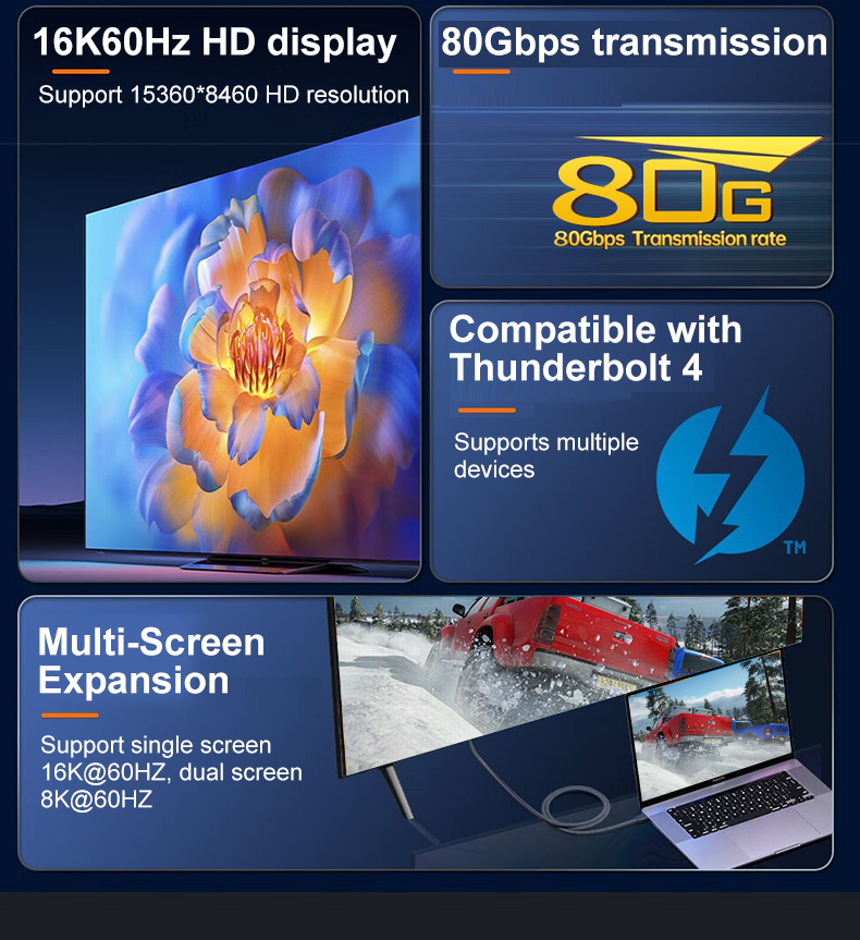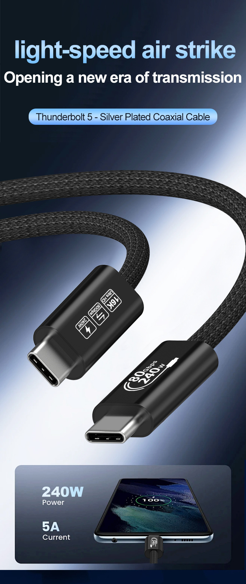 Кабель для передачи данных Thunderbolt 5 с быстрой зарядкой PD240W и поддержкой дублирования экрана 16K