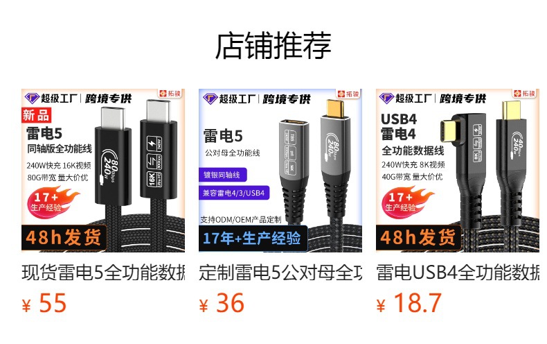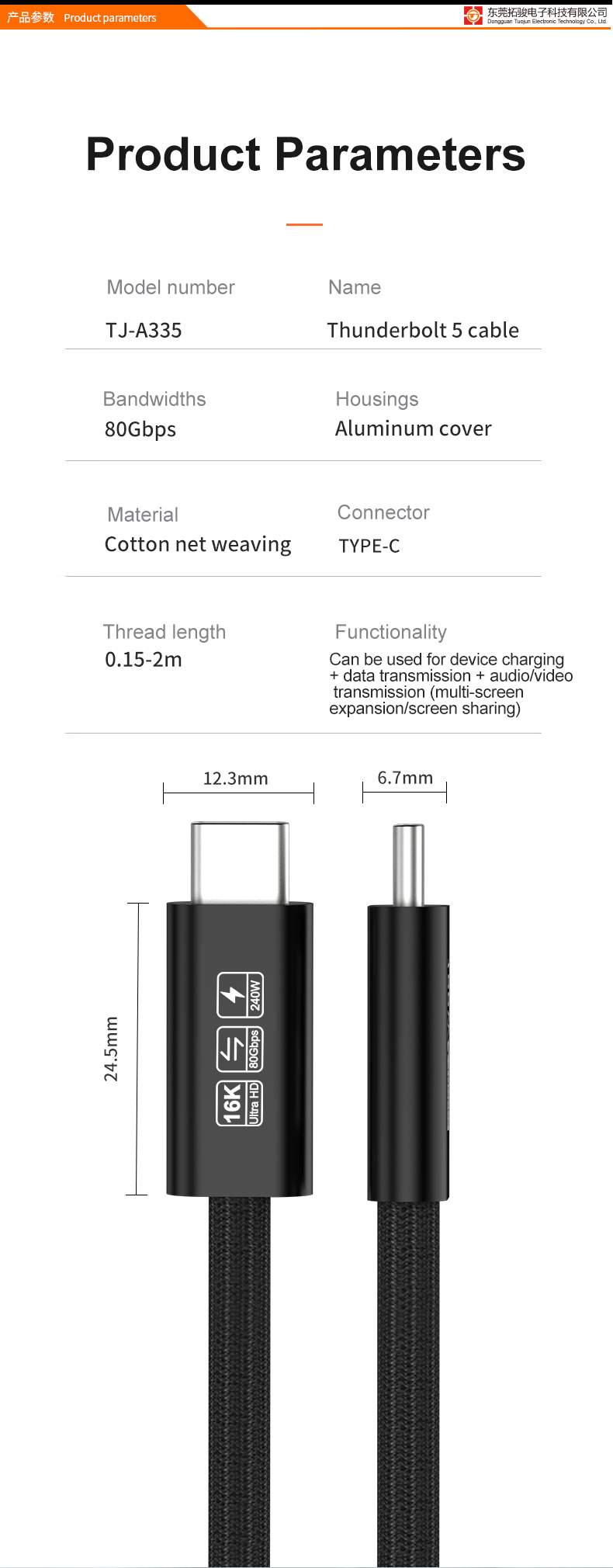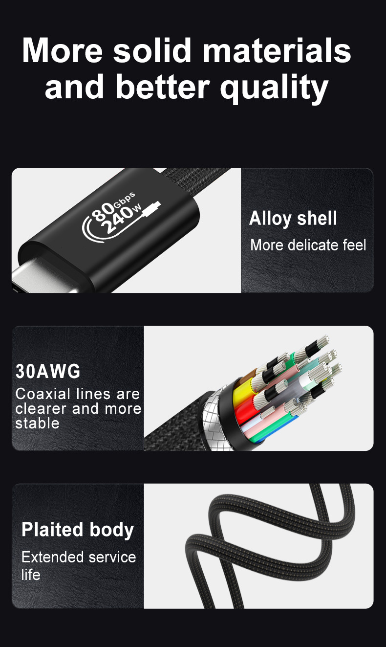 Кабель для передачи данных Thunderbolt 5 с быстрой зарядкой PD240W и поддержкой дублирования экрана 16K
