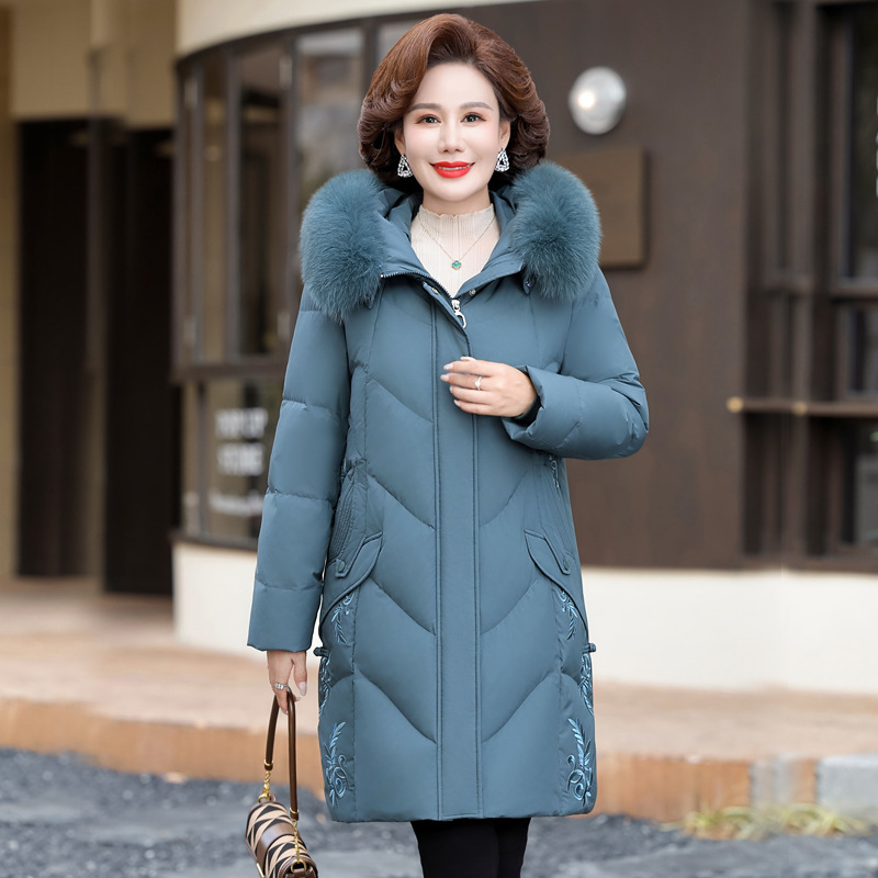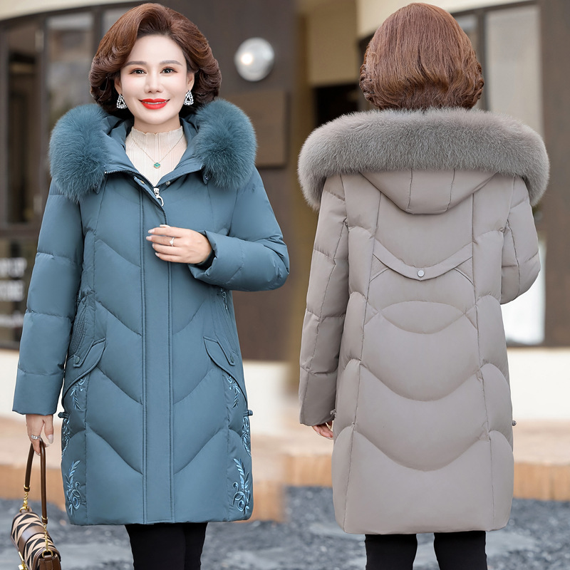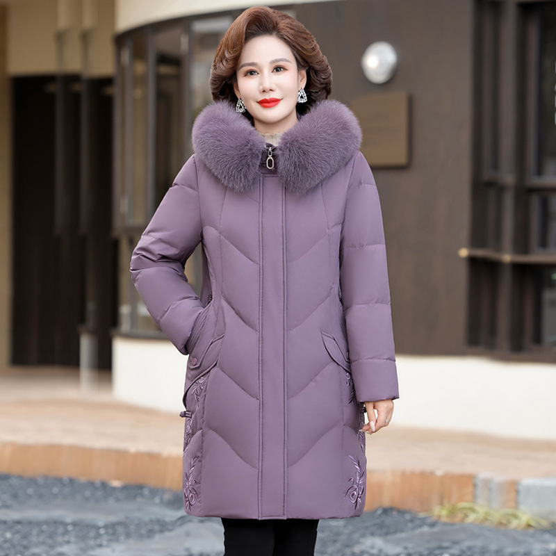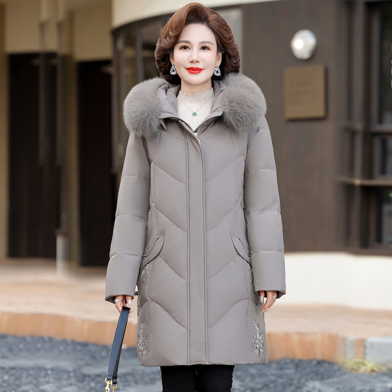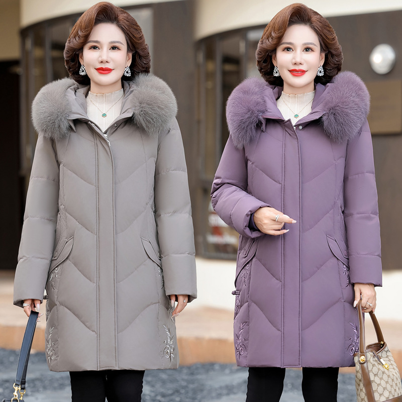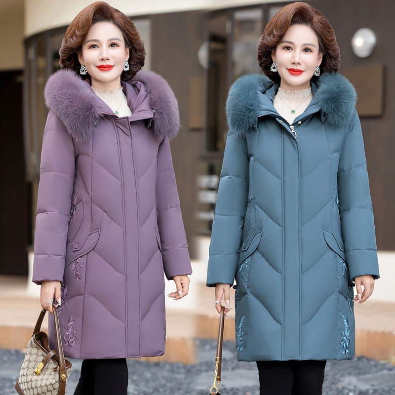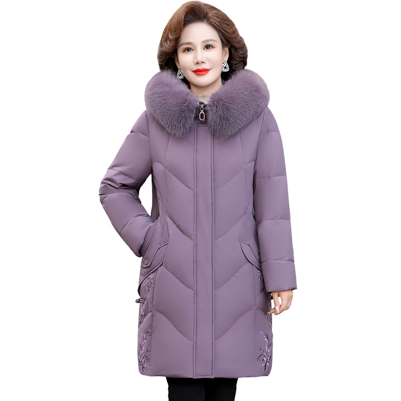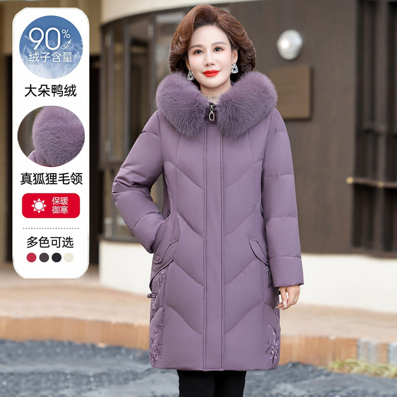 Толстая мама зимний пуховик юбка длинная 2024 новый средний и пожилой человек настоящий меховый воротник пуховик женская куртка оптом