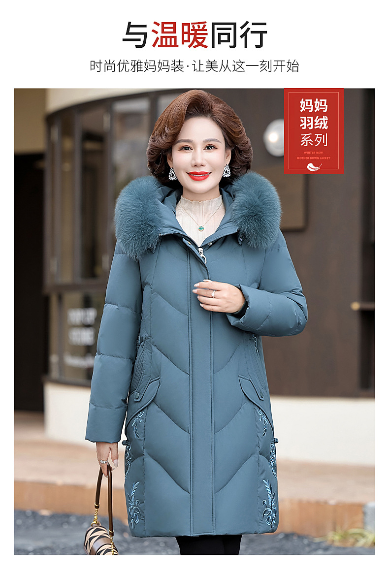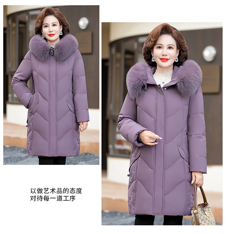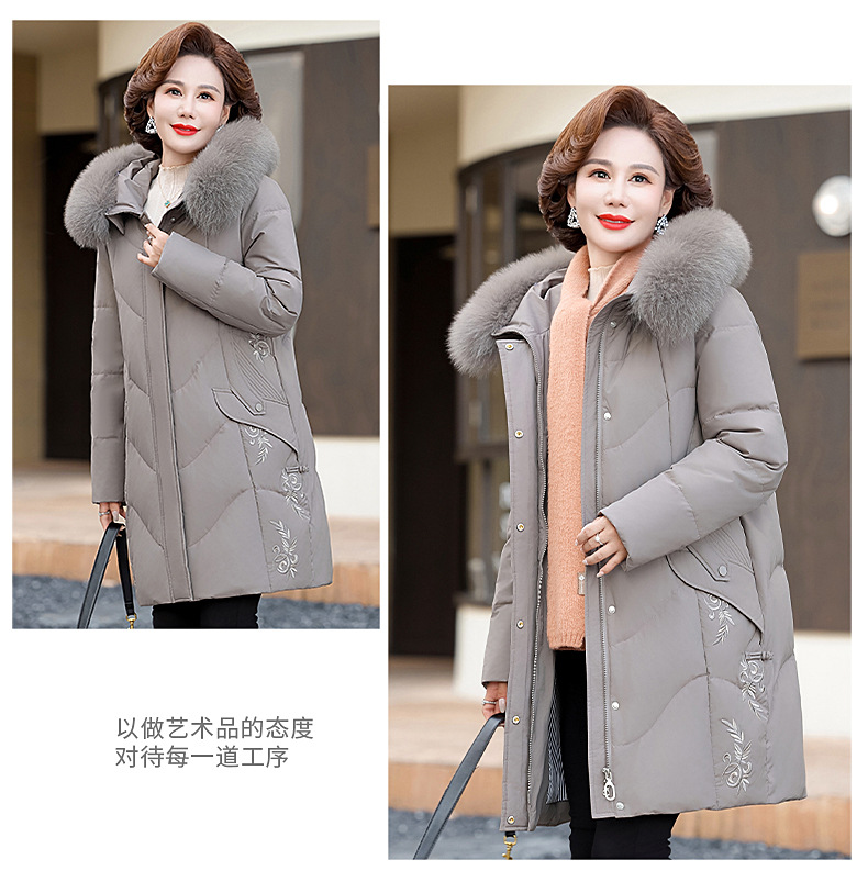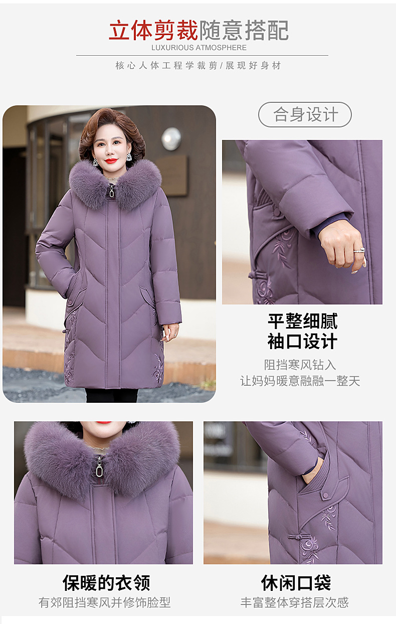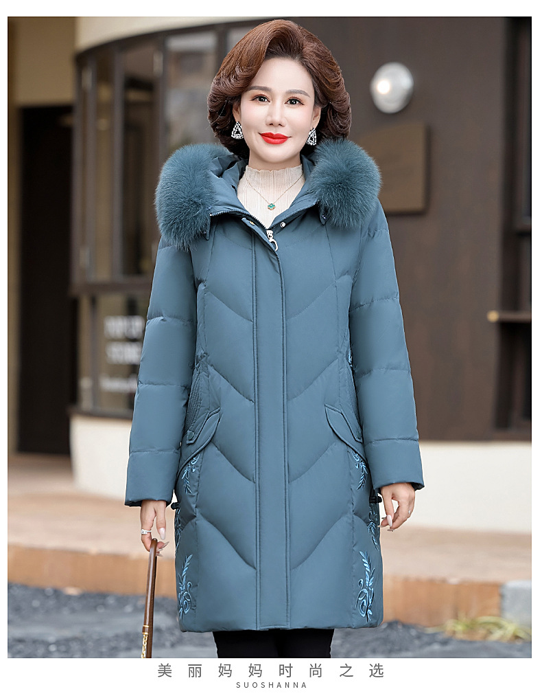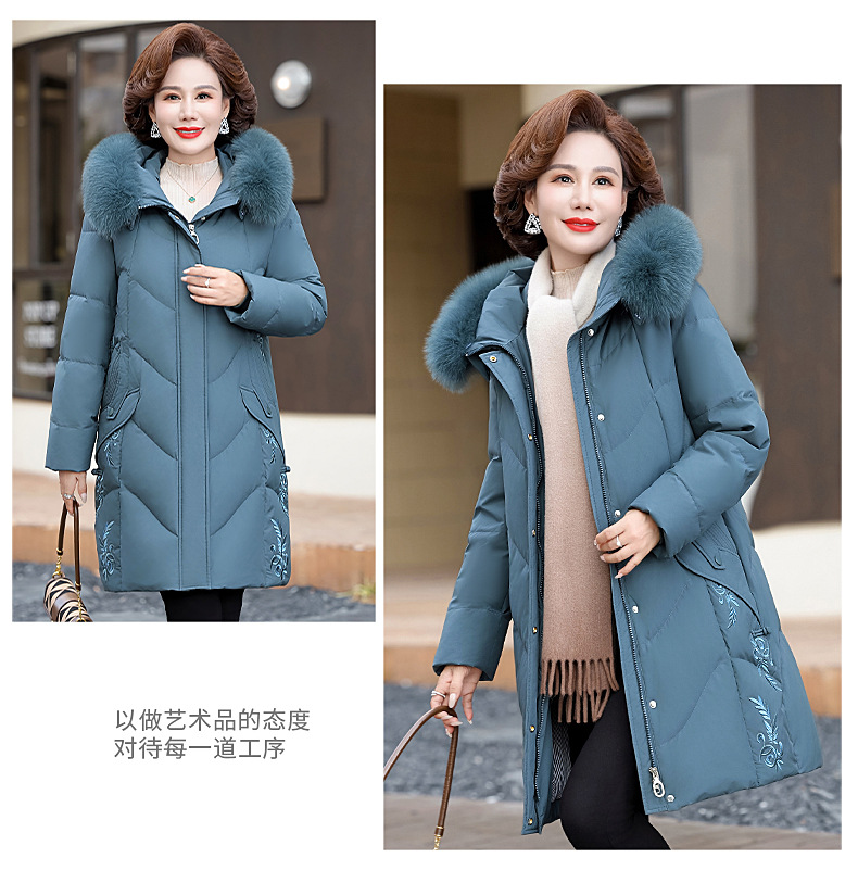 Толстая мама зимний пуховик юбка длинная 2024 новый средний и пожилой человек настоящий меховый воротник пуховик женская куртка оптом