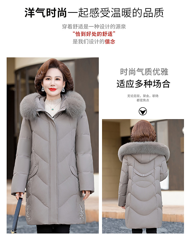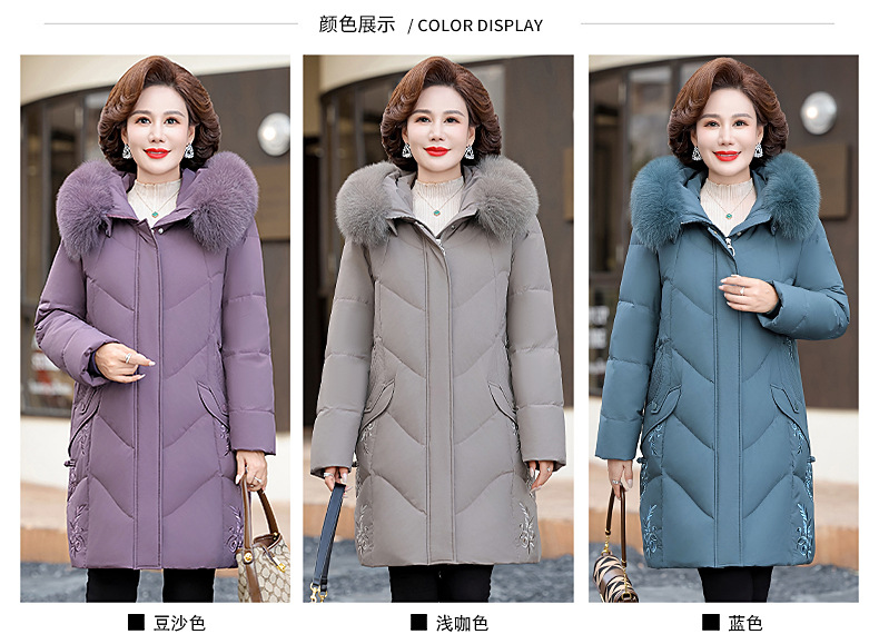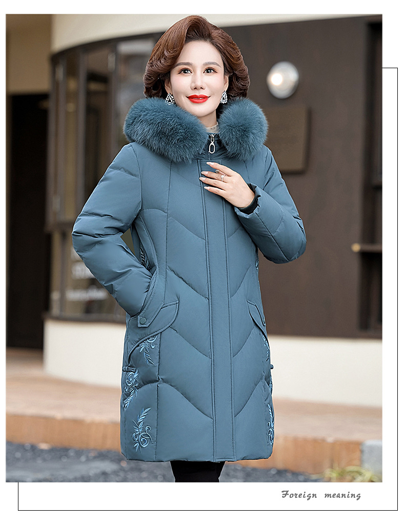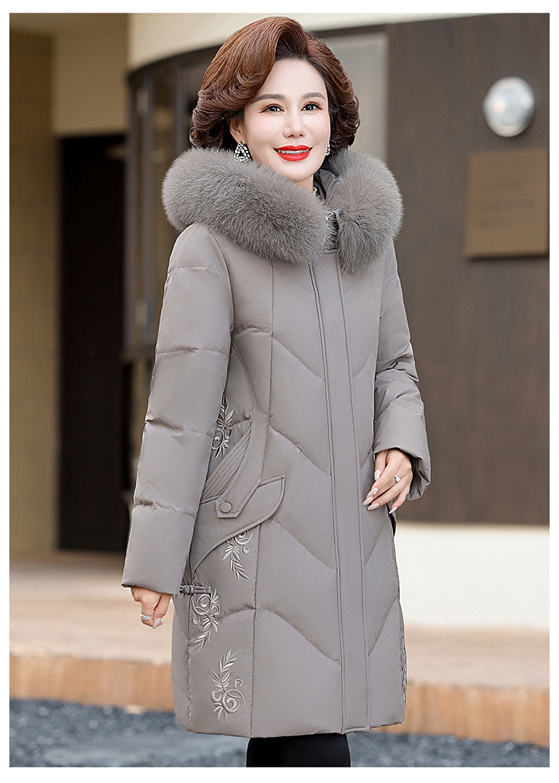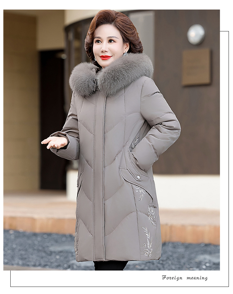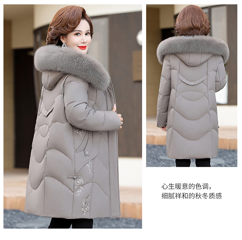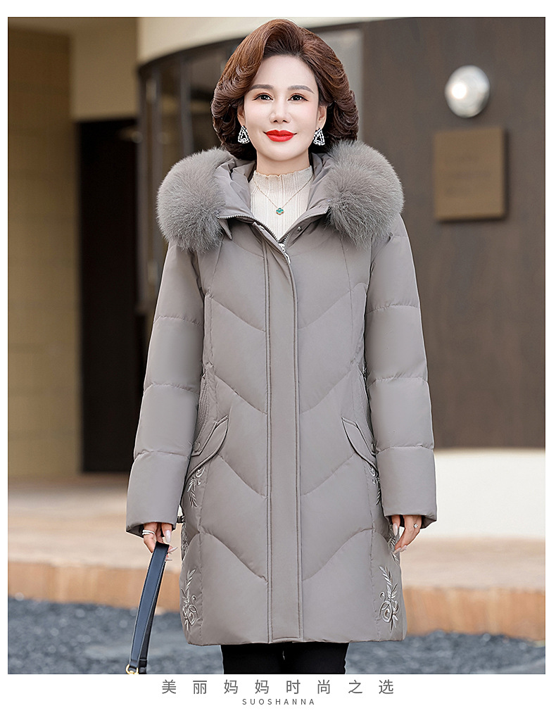 Толстая мама зимний пуховик юбка длинная 2024 новый средний и пожилой человек настоящий меховый воротник пуховик женская куртка оптом