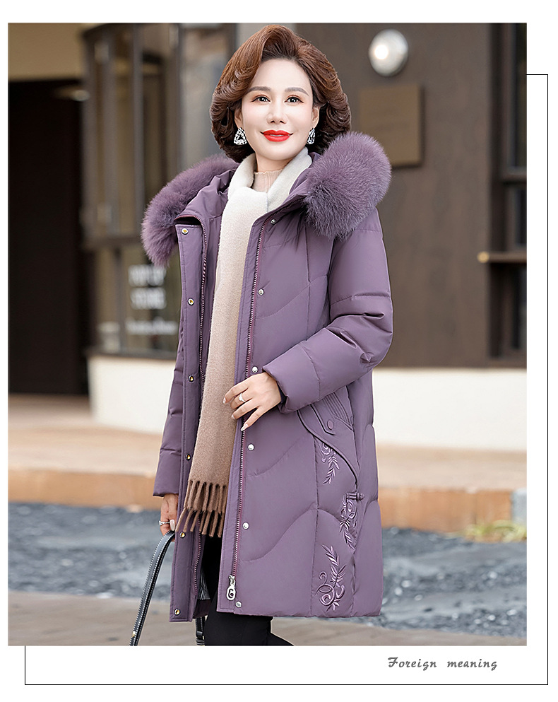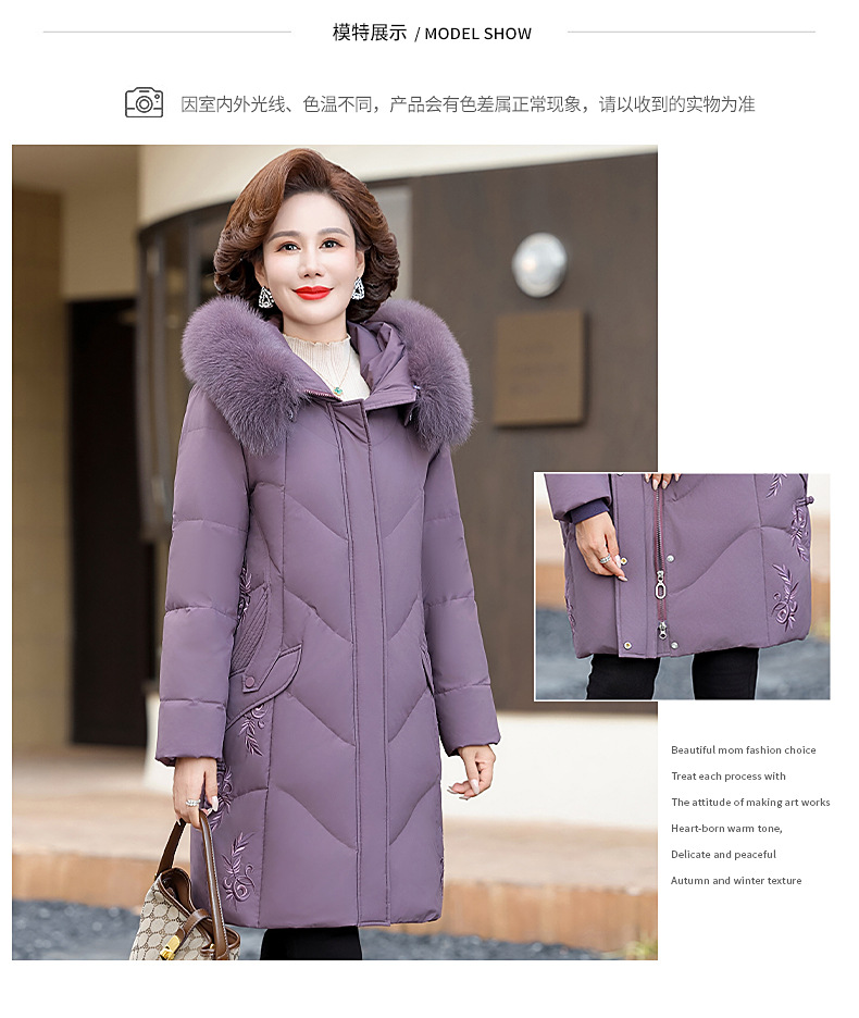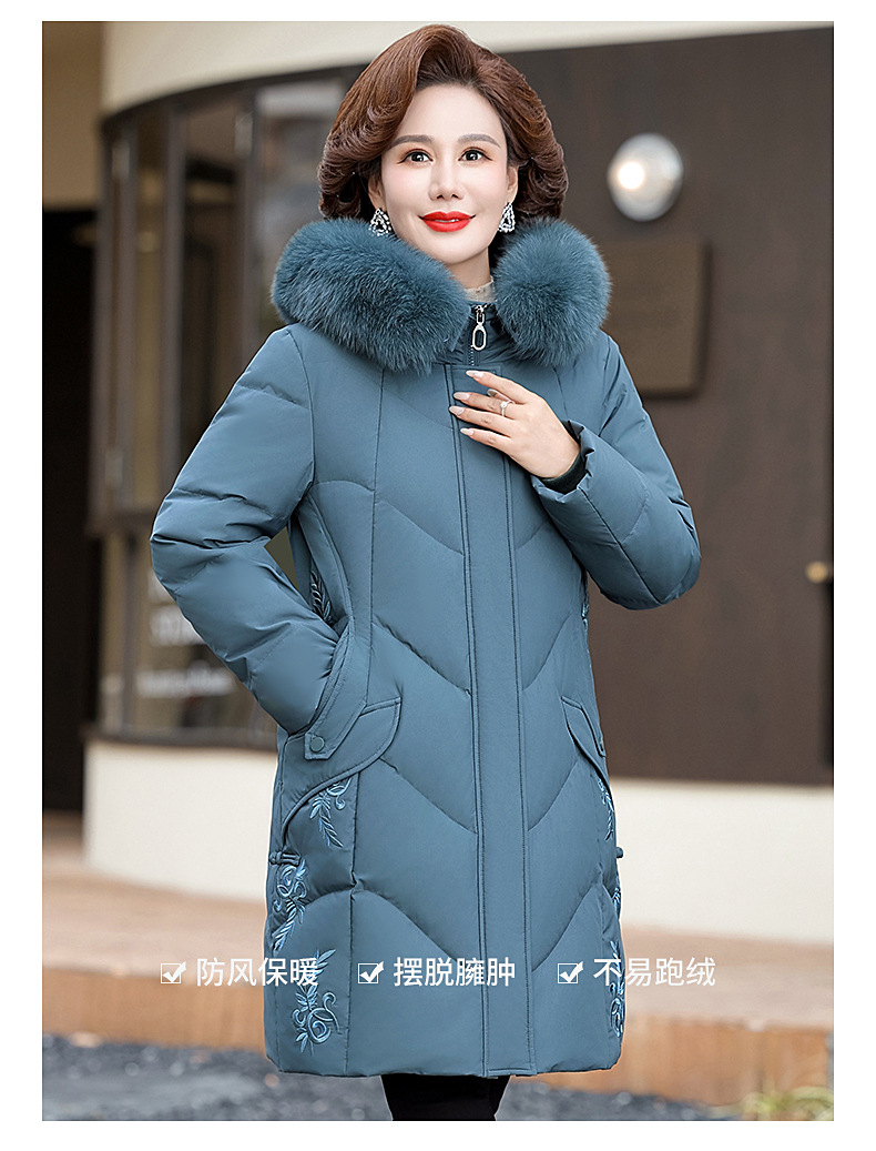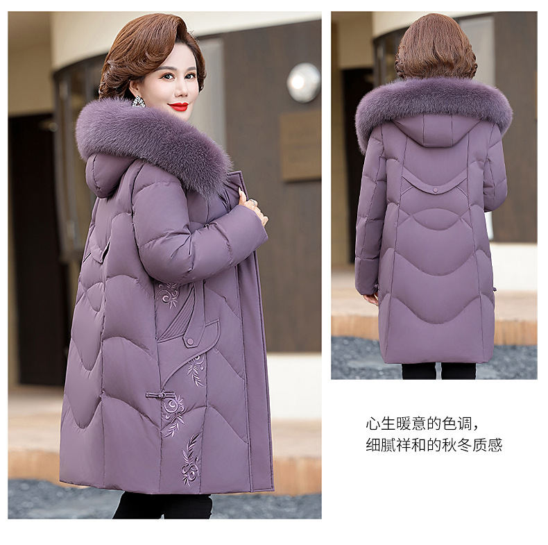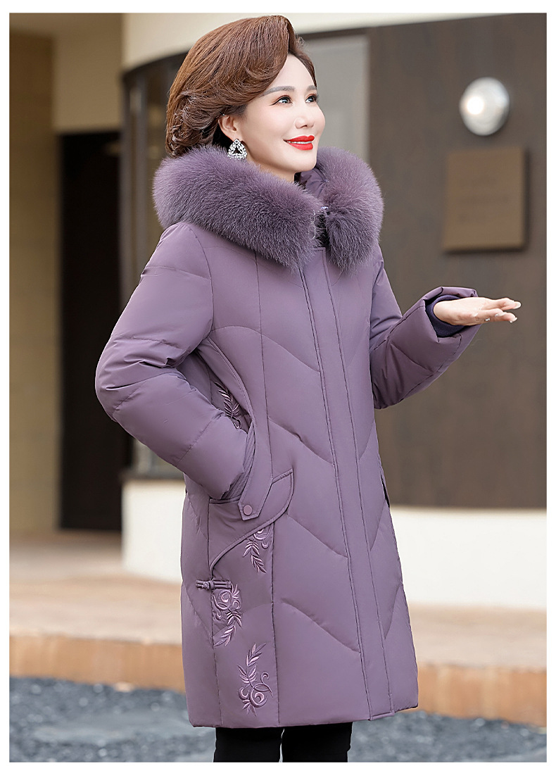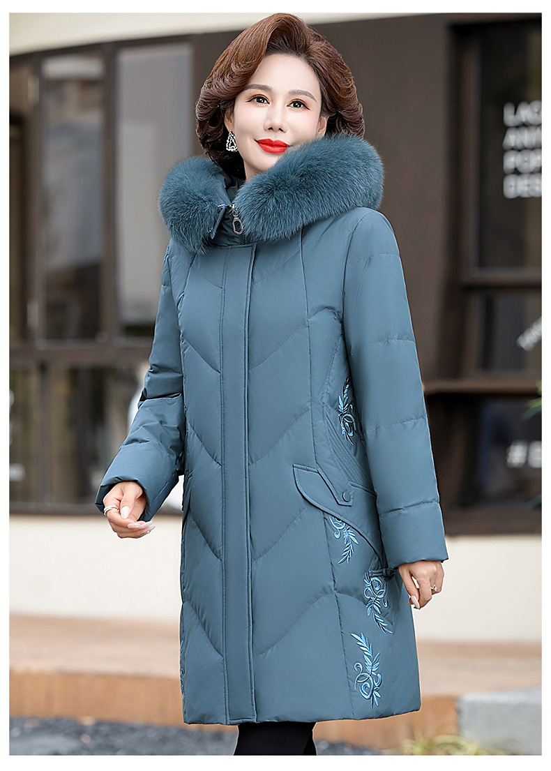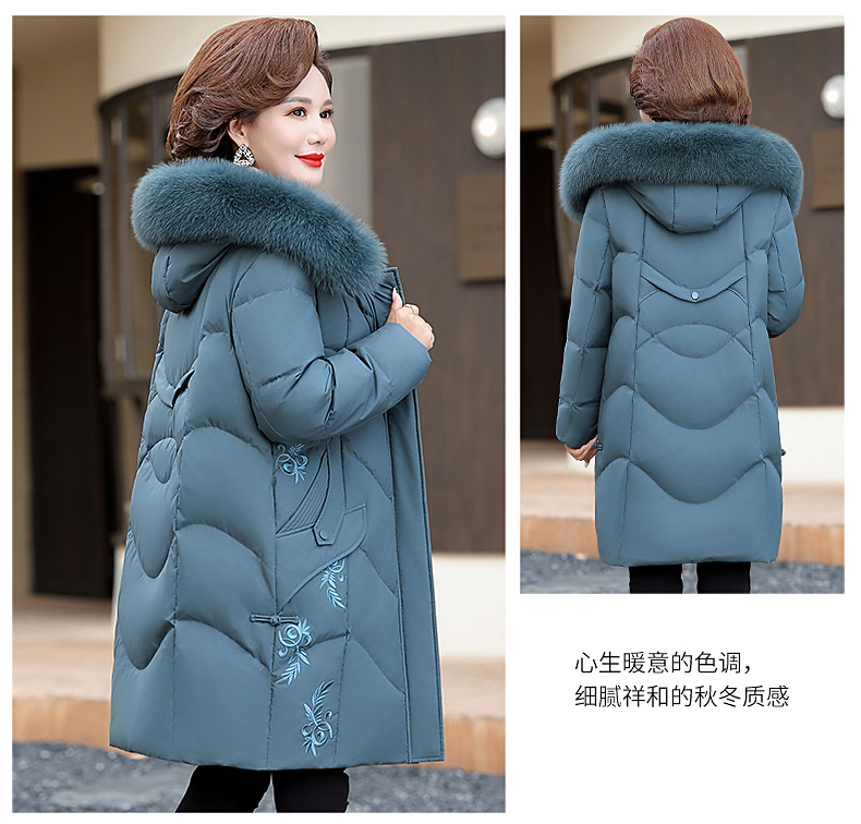 Толстая мама зимний пуховик юбка длинная 2024 новый средний и пожилой человек настоящий меховый воротник пуховик женская куртка оптом