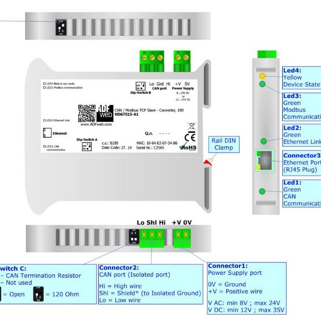 Итальянский шлюз ADF HD67440 DeviceNet протокол переходит к PROFIBUS протокол шлюз