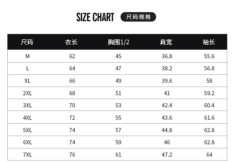 M; L; XL; 2XL; 3XL; 4XL; 5XL; 6XL; 7XL