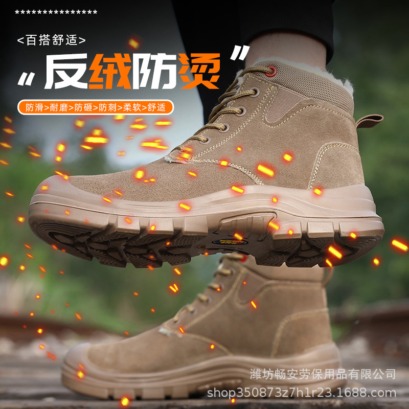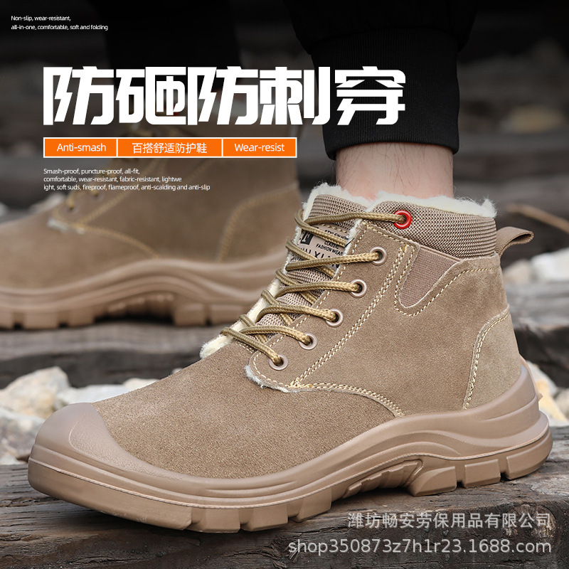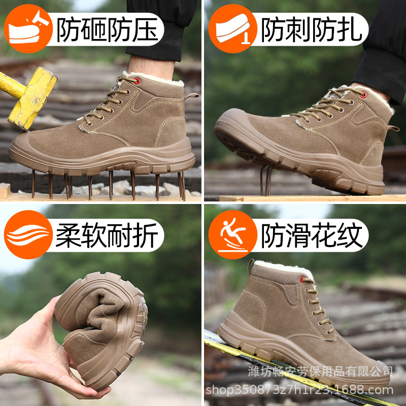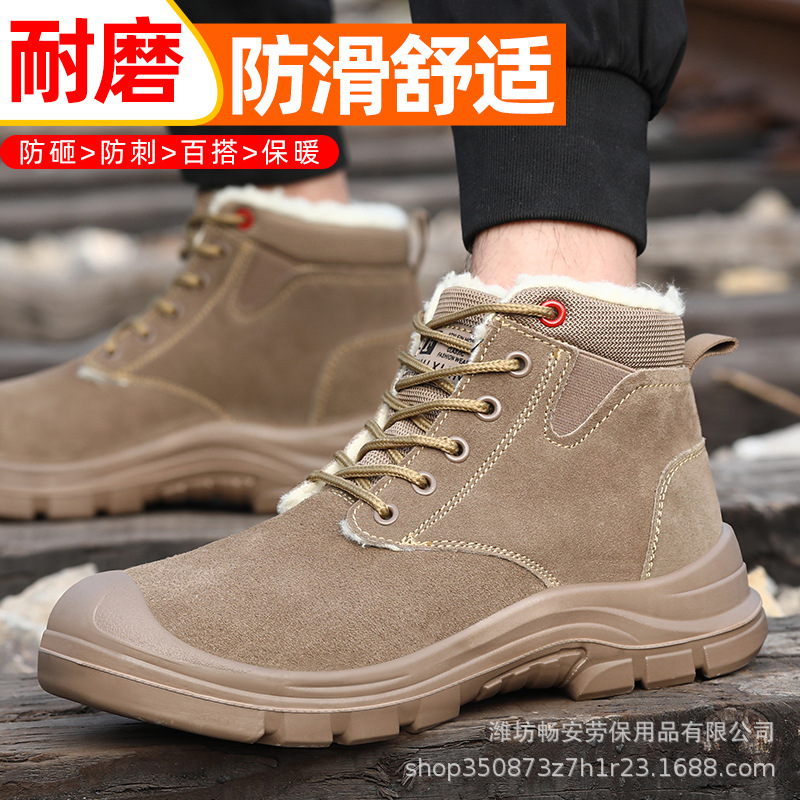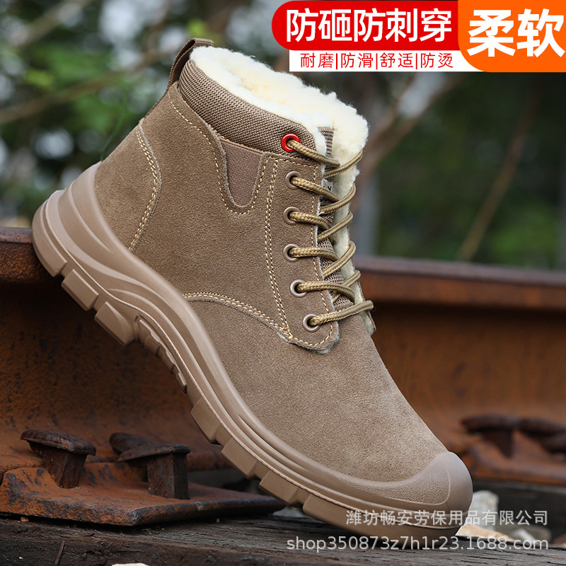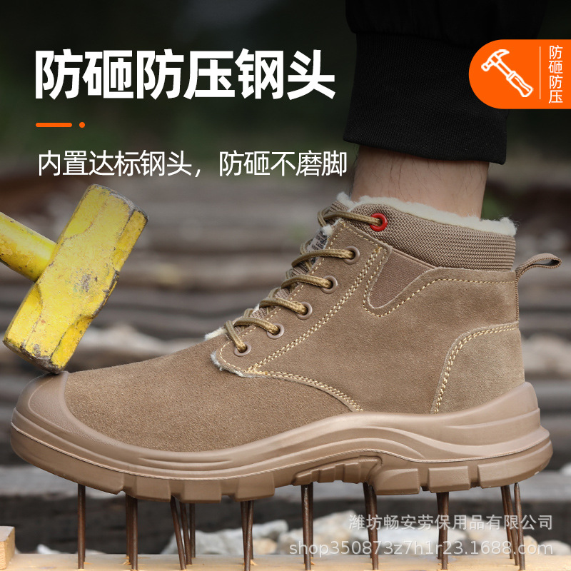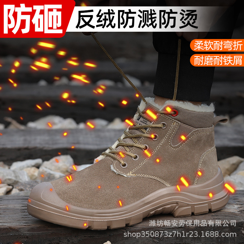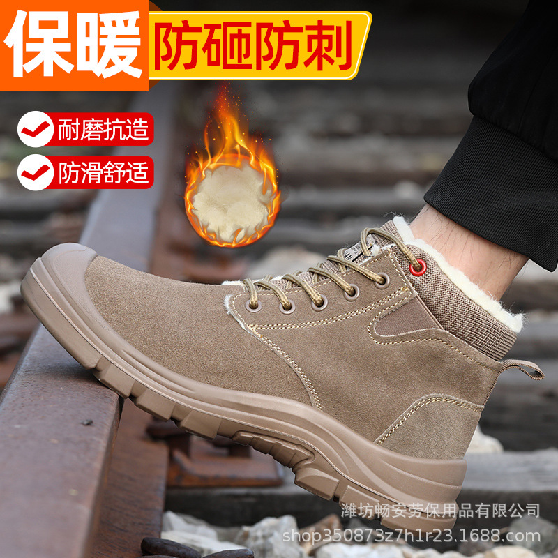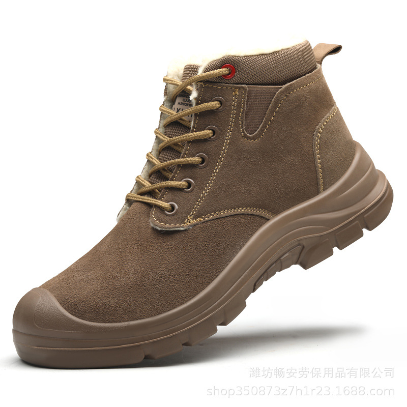 Охранная обувь зимой плюс бархат хлопчатобумажная шнурка стальная головка противоударная ударная