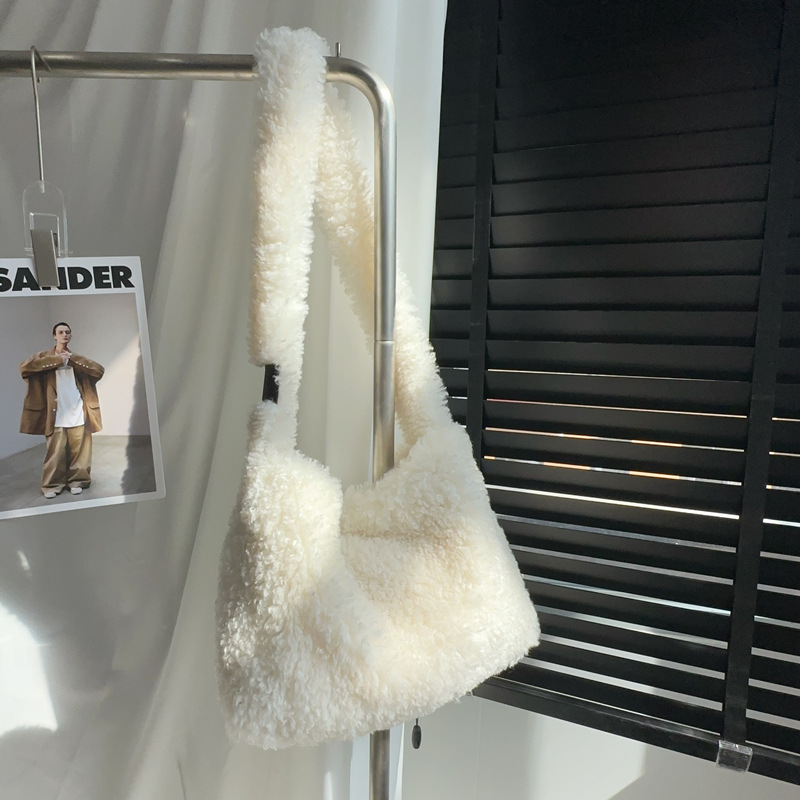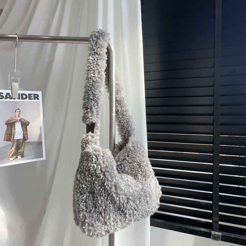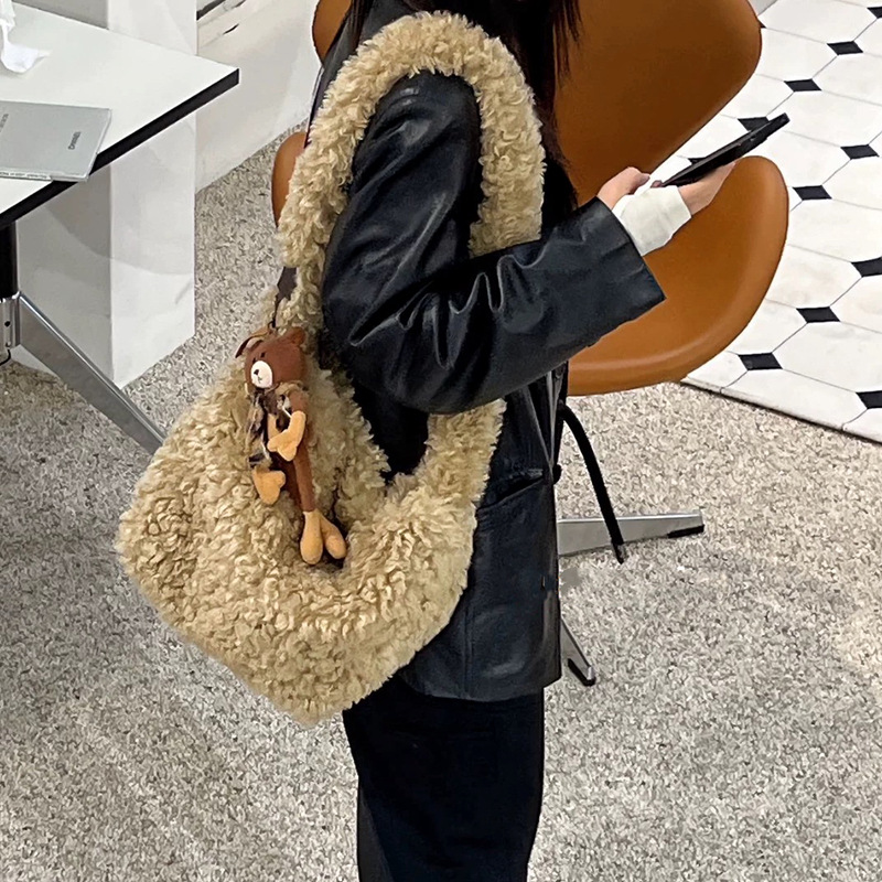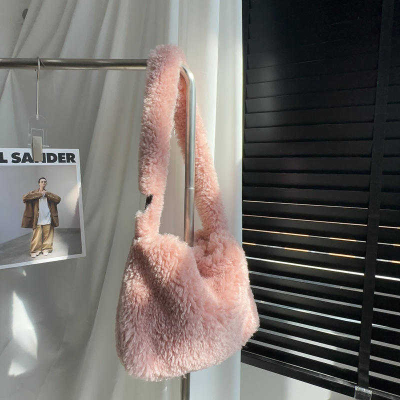 2024 осень и зима новая дикая сумка на плечо облачная сумка через плечо имитация шерсти большой емкости сетка красная та же плюшевая сумка