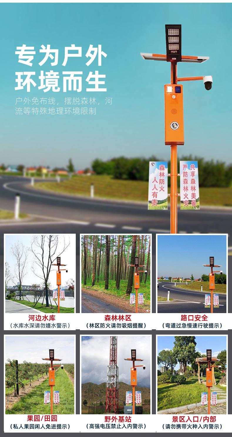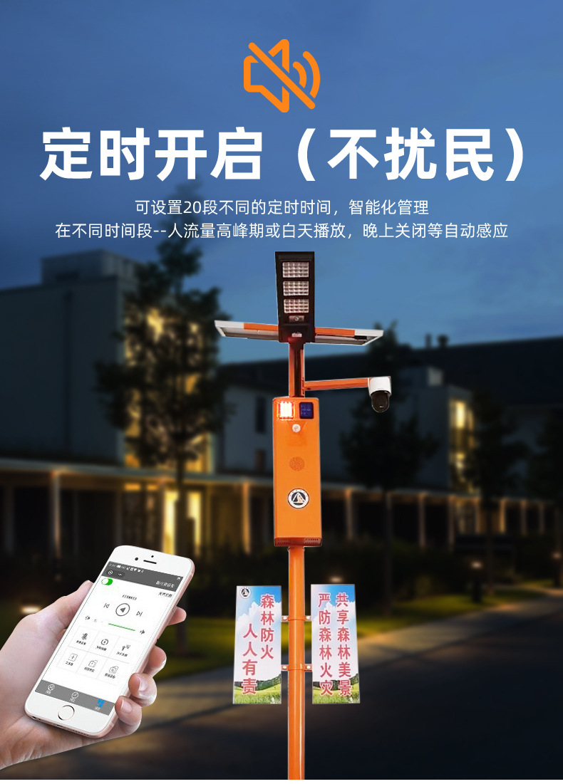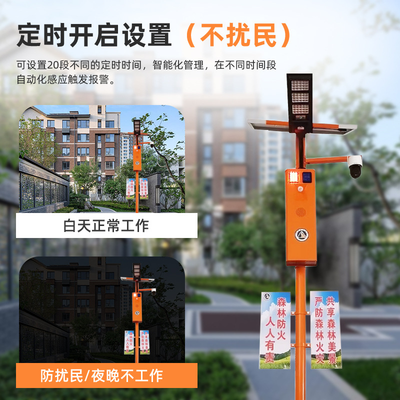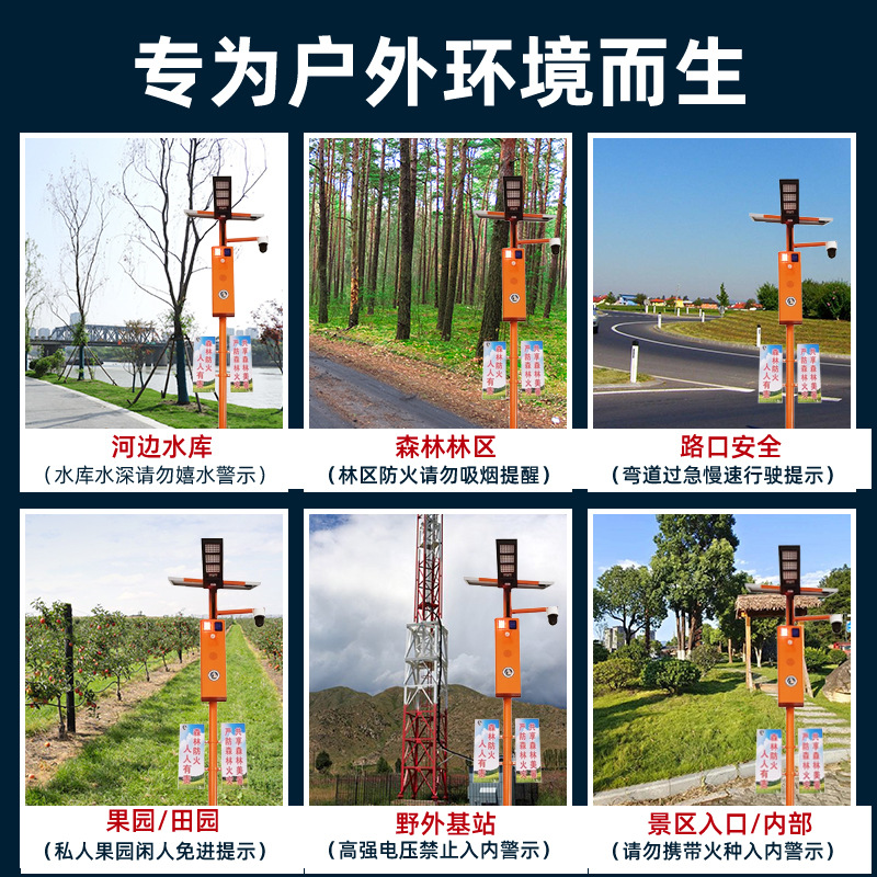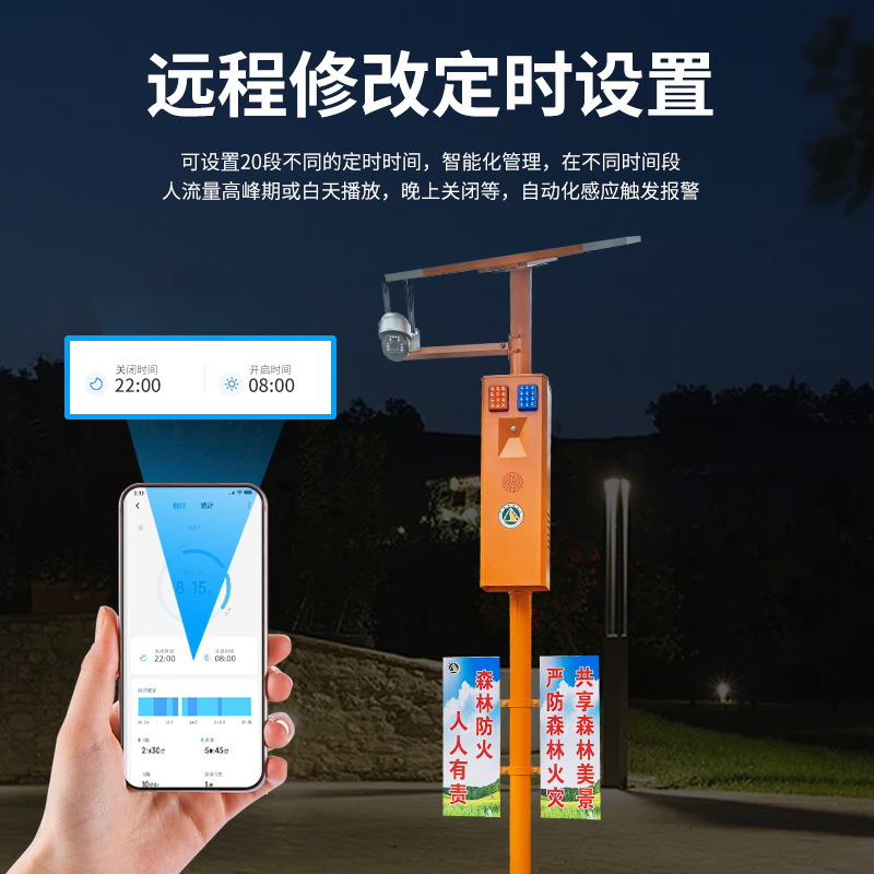 厂家直供户外智能太阳语音提示器声光宣传杆太阳能报警器森林防火