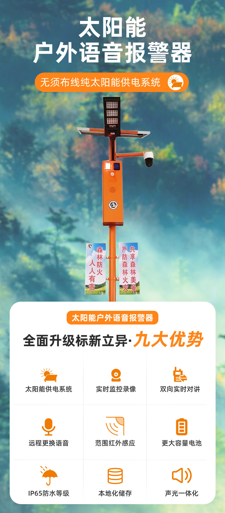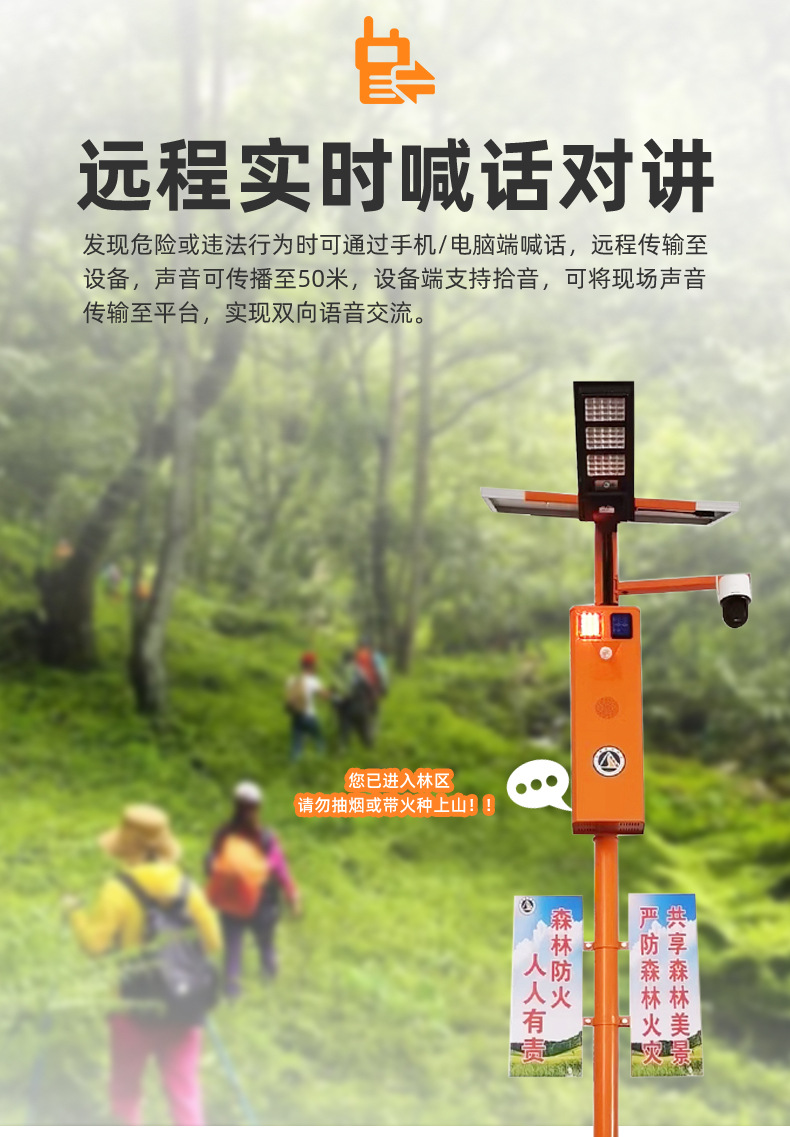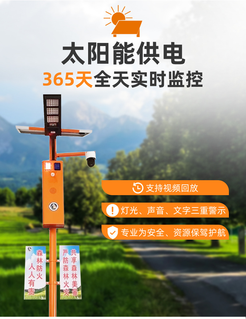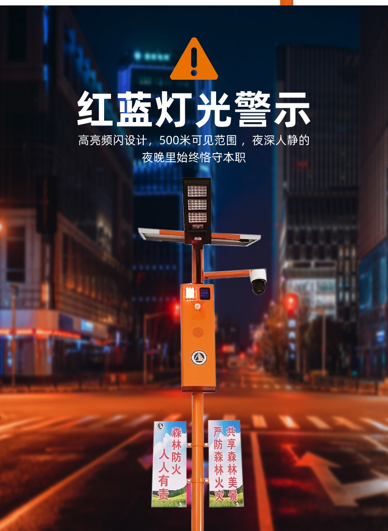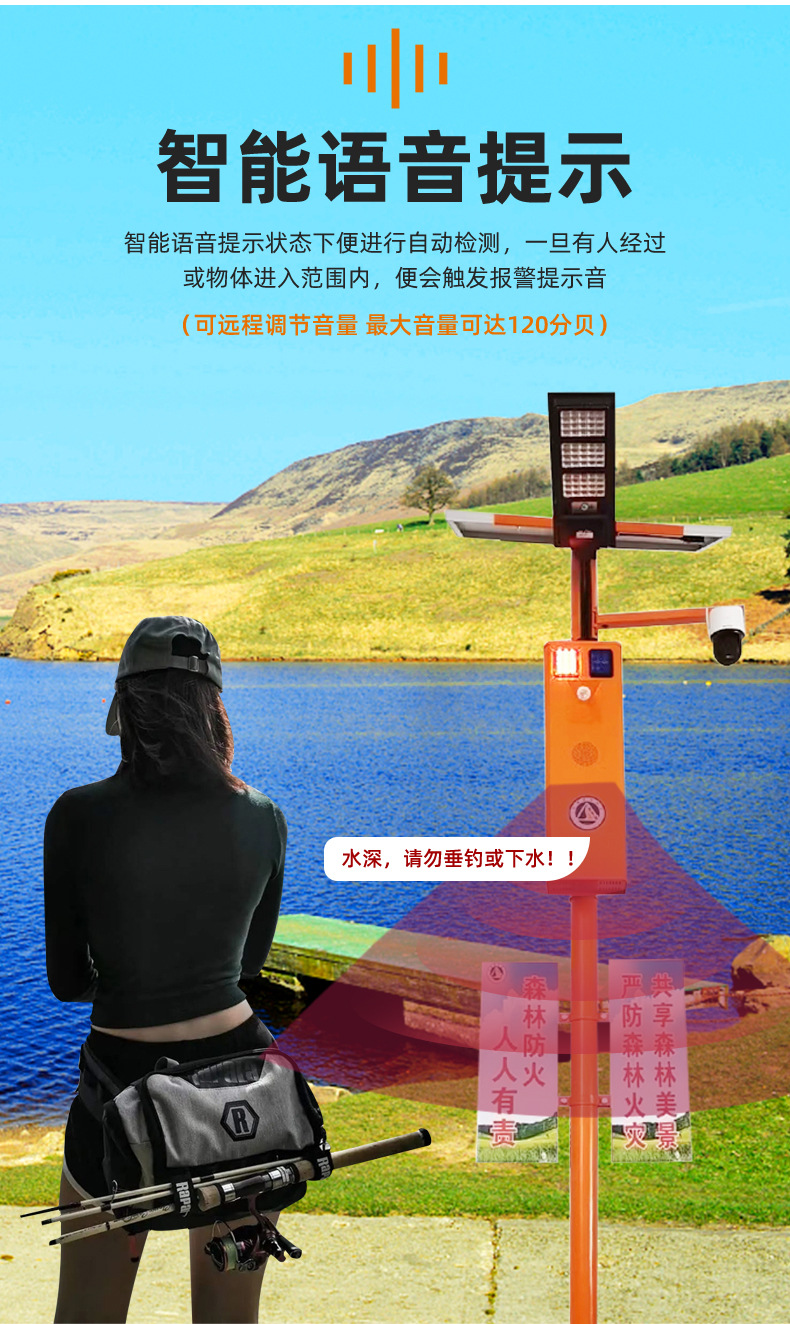 厂家直供户外智能太阳语音提示器声光宣传杆太阳能报警器森林防火