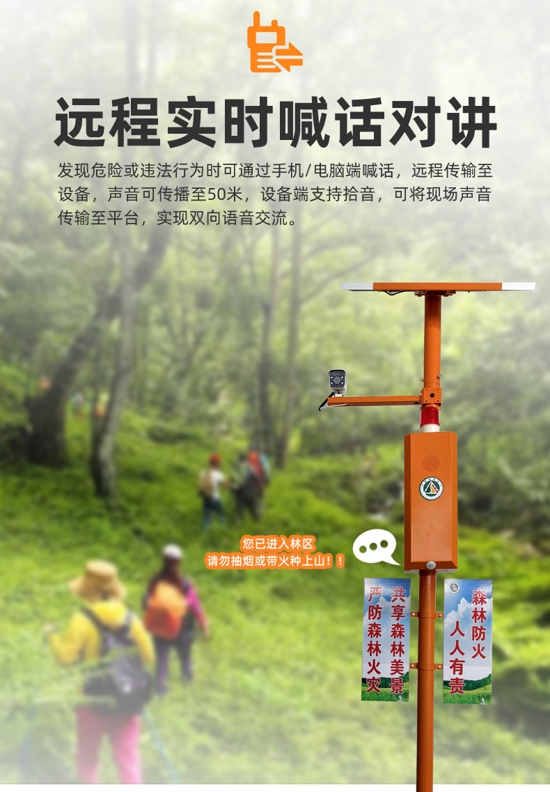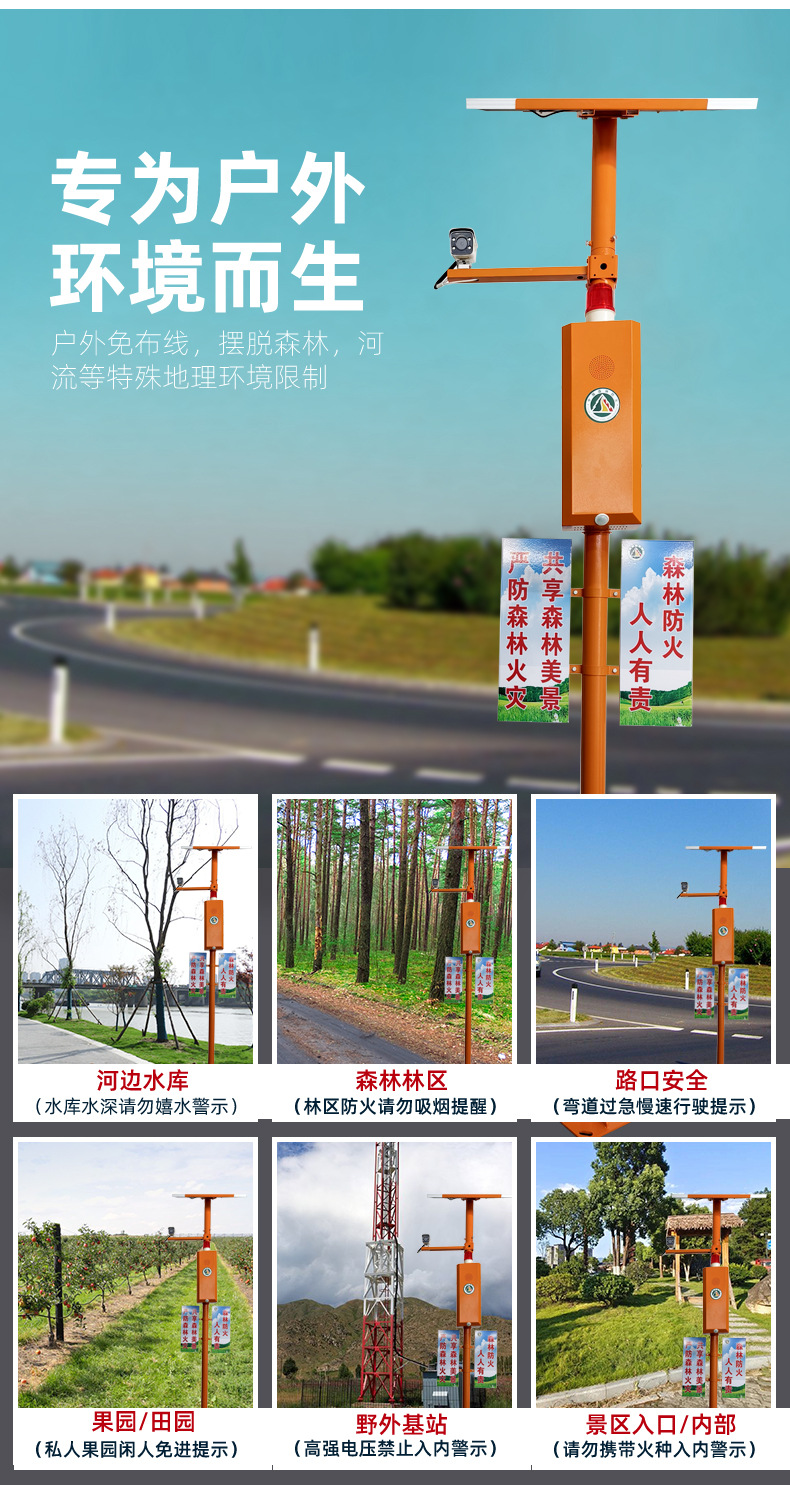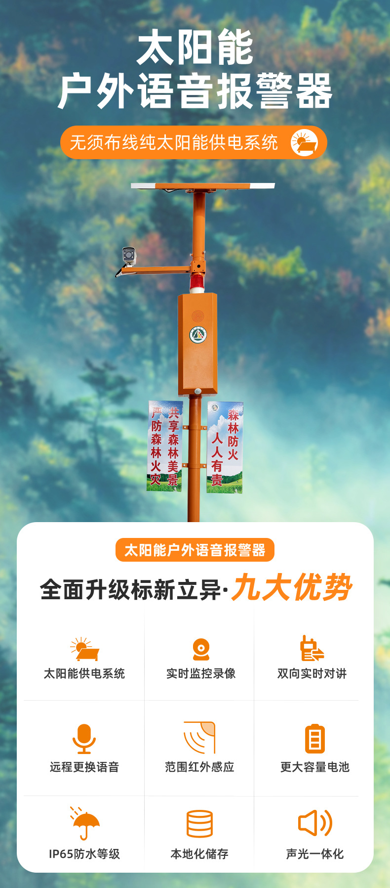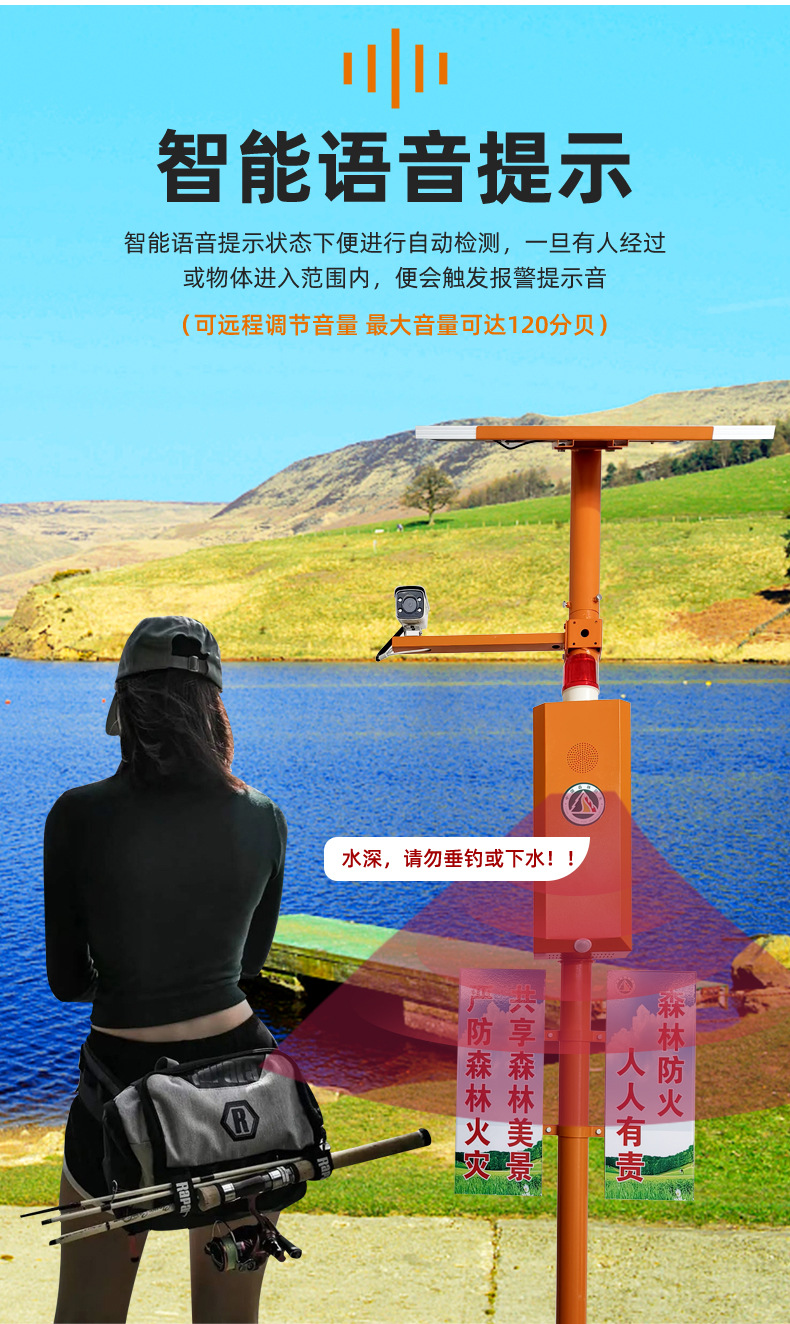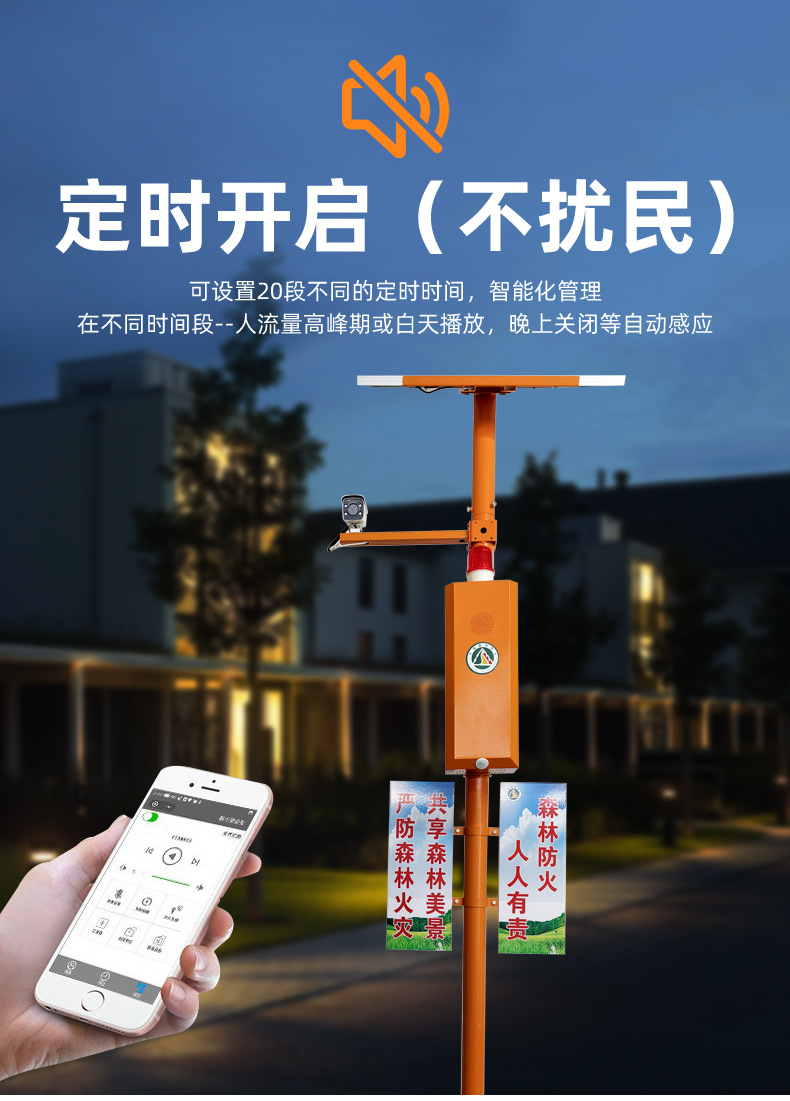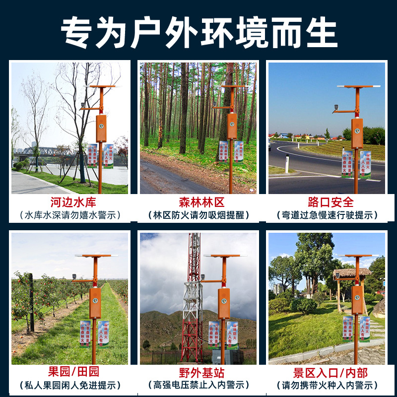 现货森林防火警报器太阳能声光报警器户外水库语音提示器语音杆