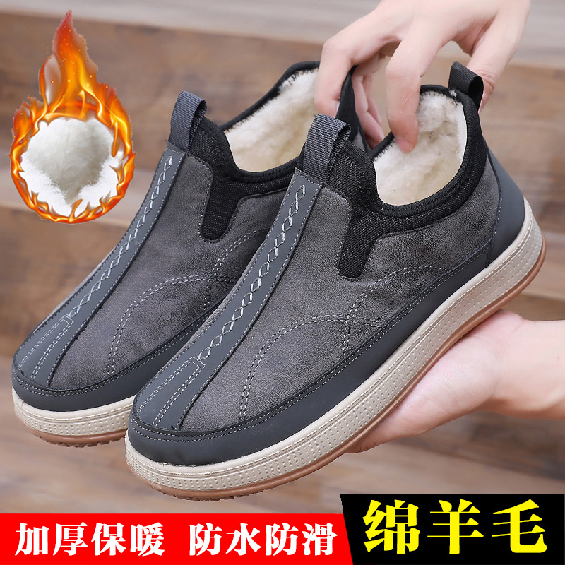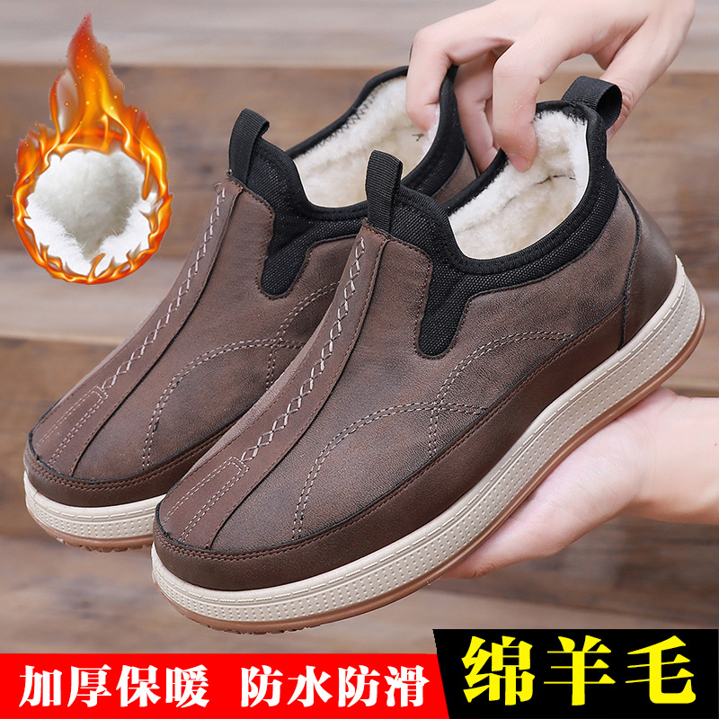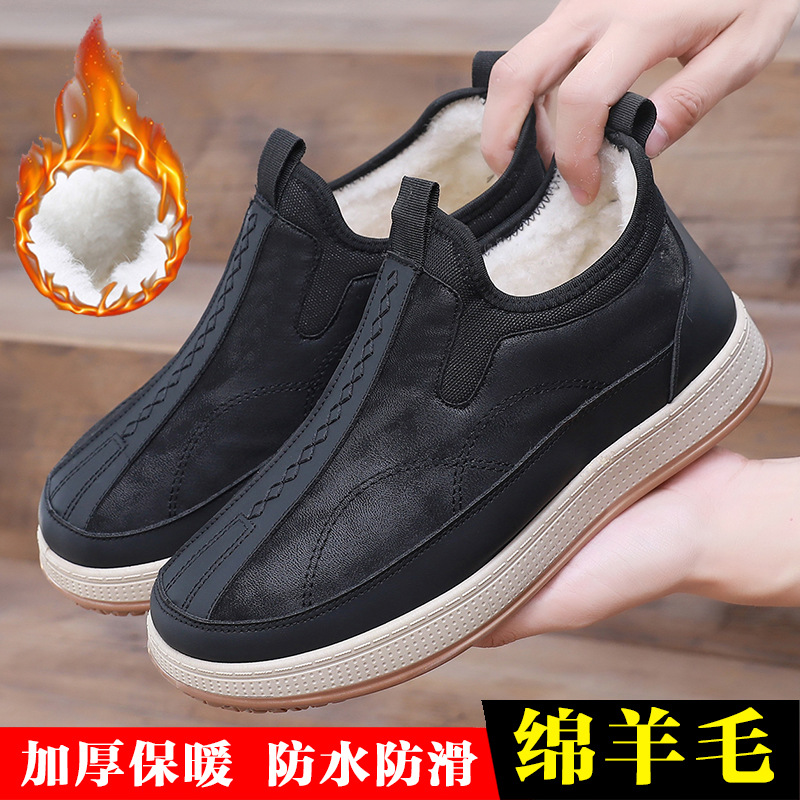 Хлопковая обувь мужская зимняя новая старая пекинская шерсть теплая и нескользящая высокая помощь снежные сапоги мягкая подошва плюс бархат утолщение