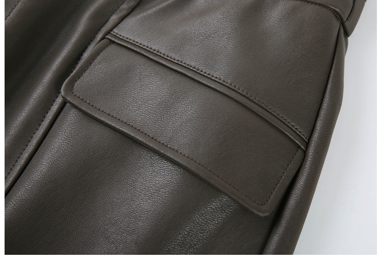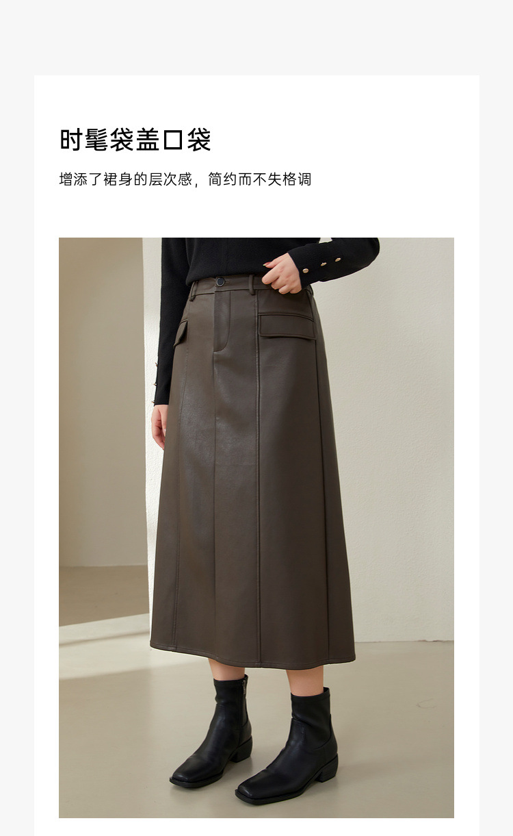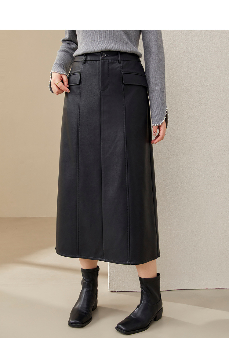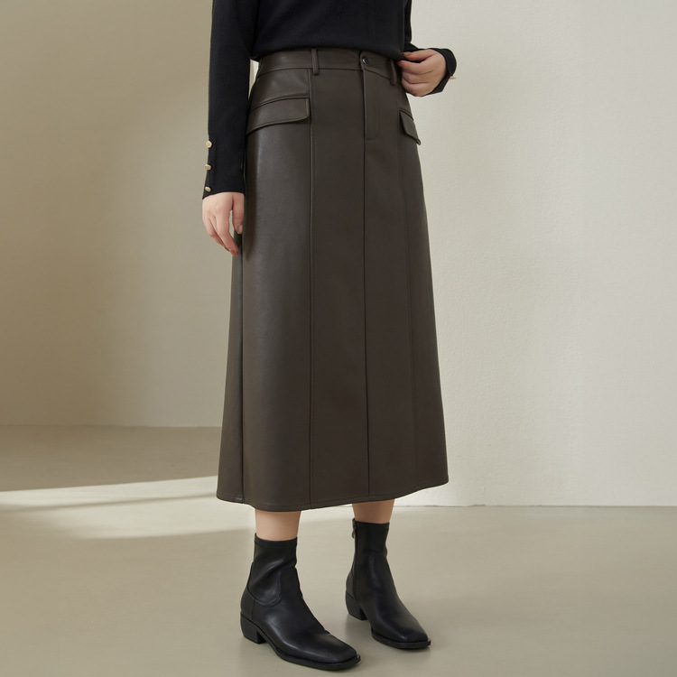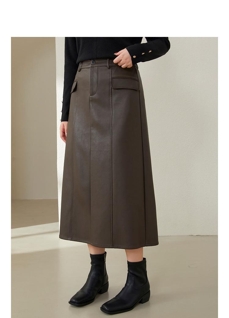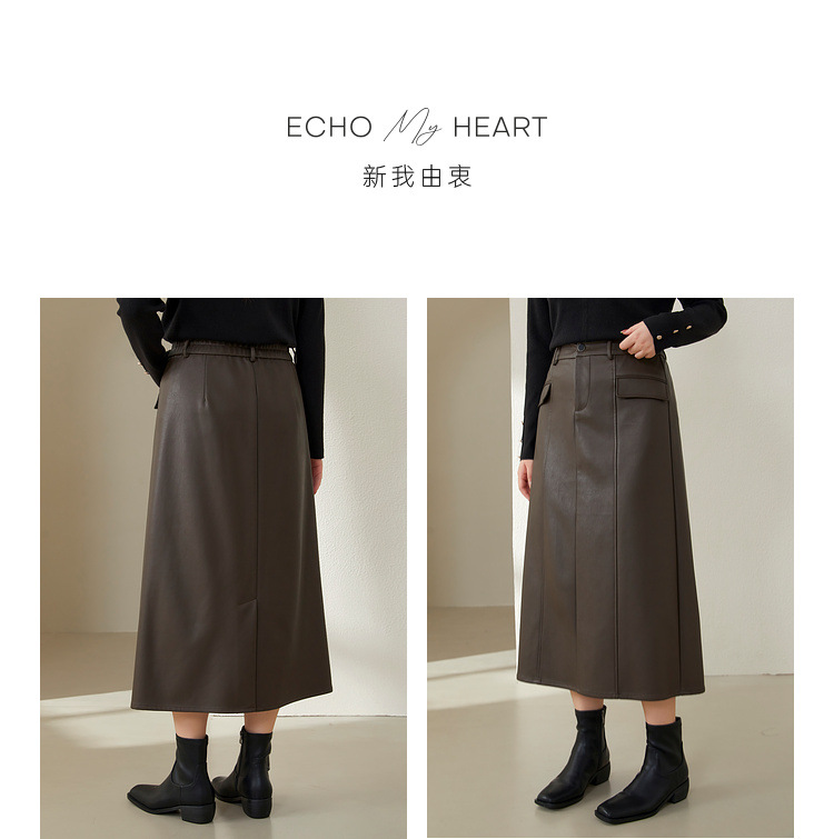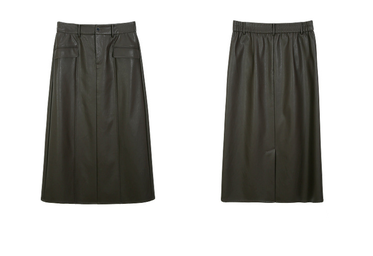 Полноцветное шоу большого размера женская ретро текстура индивидуальность с открытой вилкой дикая PUКожа Юбка Толстый mm2024 осенний костюм новый