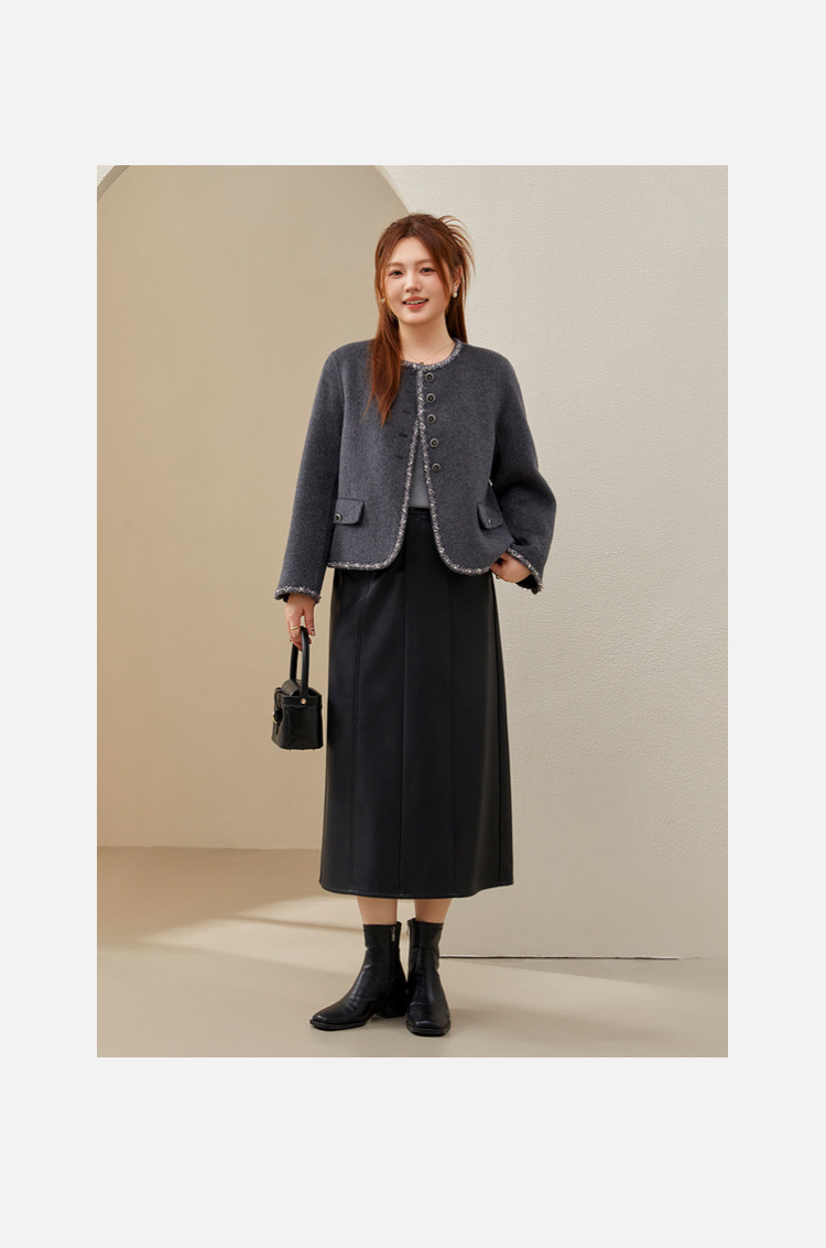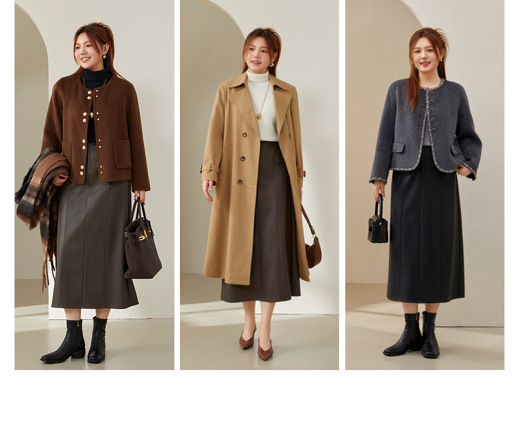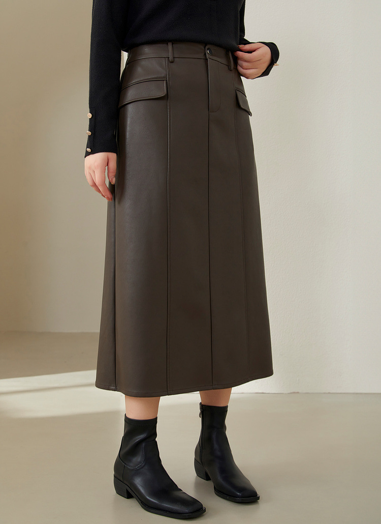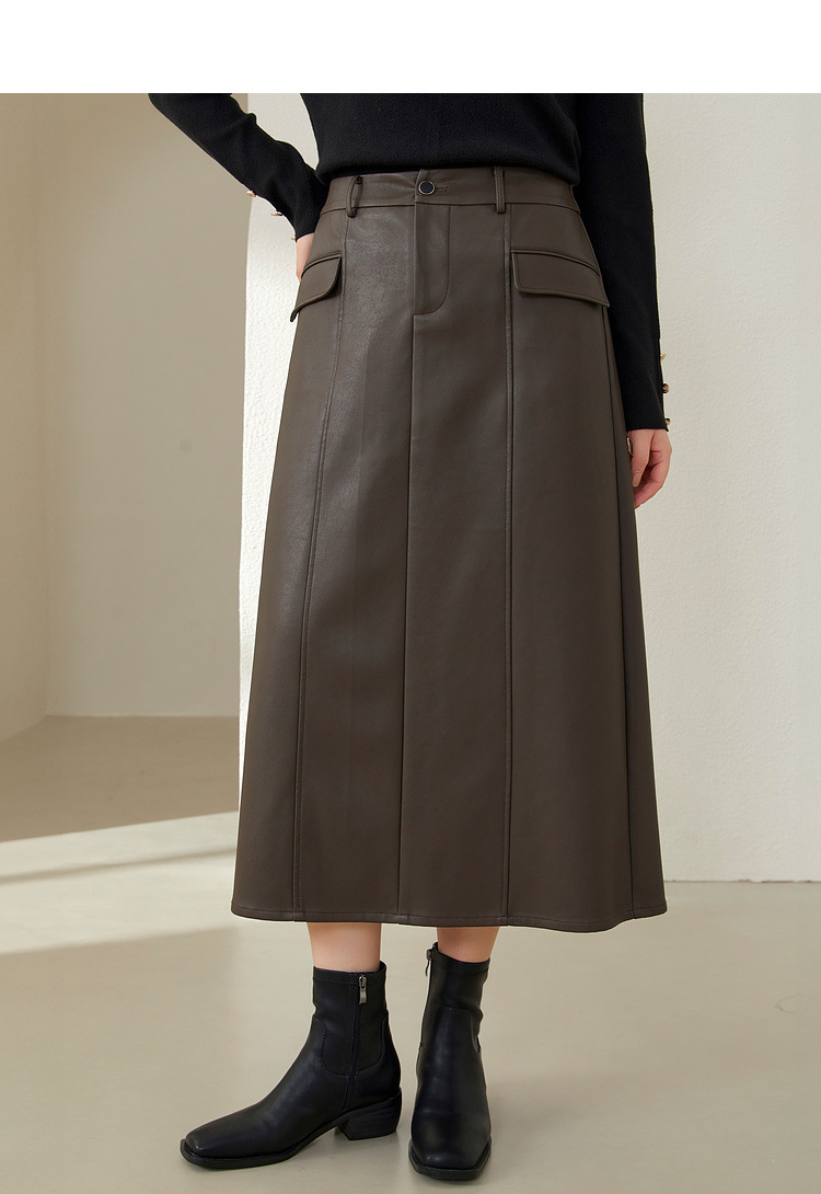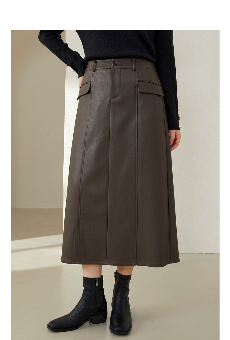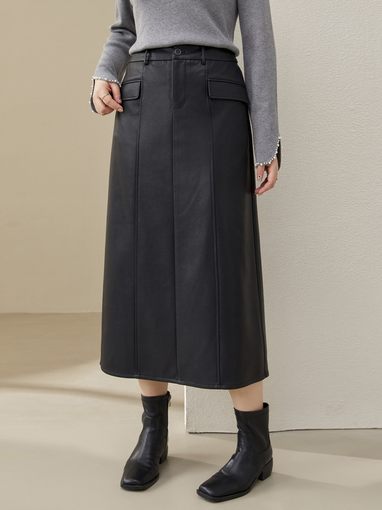 Полноцветное шоу большого размера женская ретро текстура индивидуальность с открытой вилкой дикая PUКожа Юбка Толстый mm2024 осенний костюм новый
