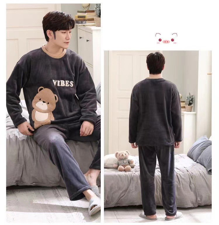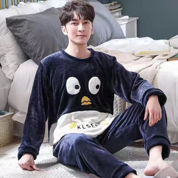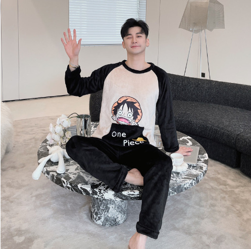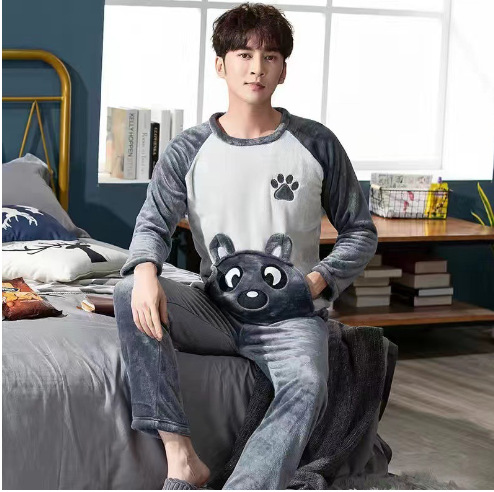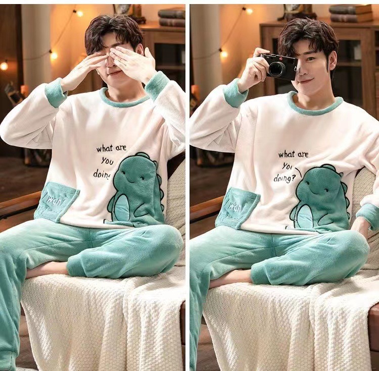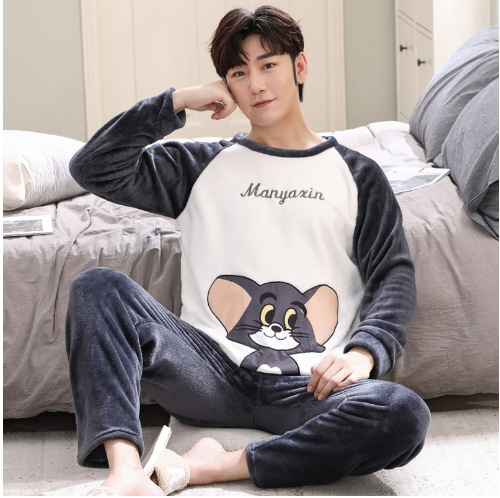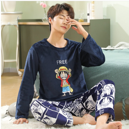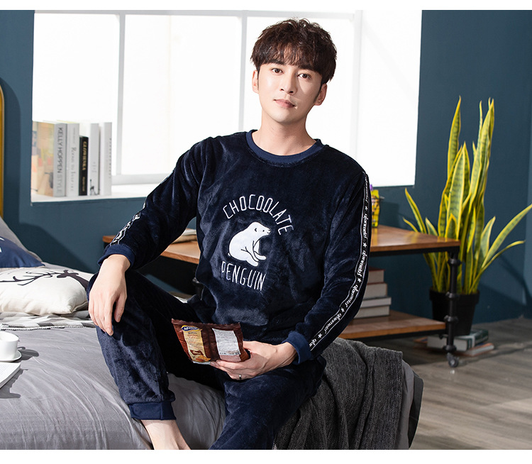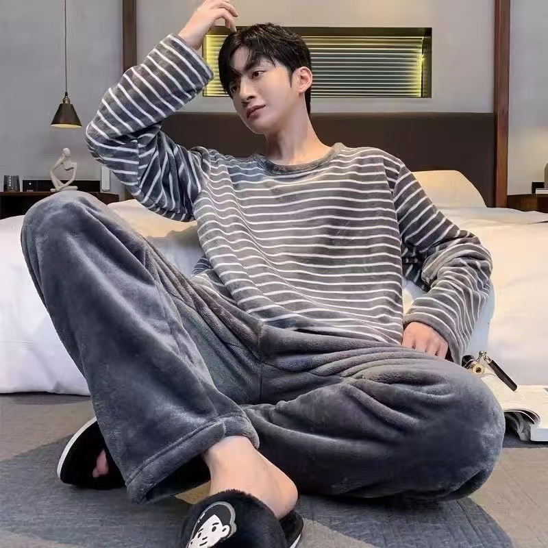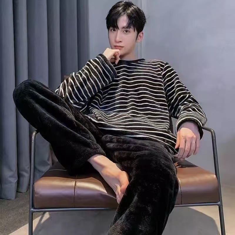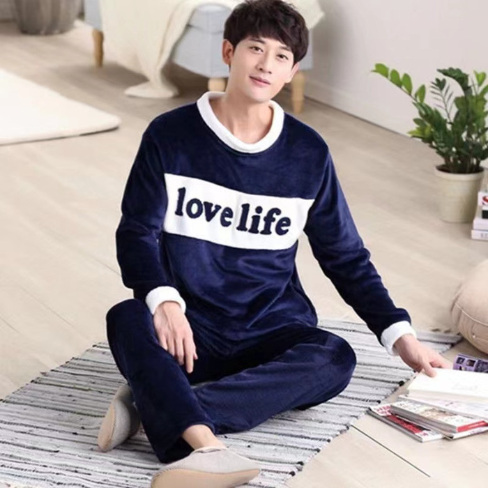 Коралловый бархатный пижама мужской осенний и зимний бархатный набор с круглым вырезом фланелевый мальчик подросток домашняя одежда