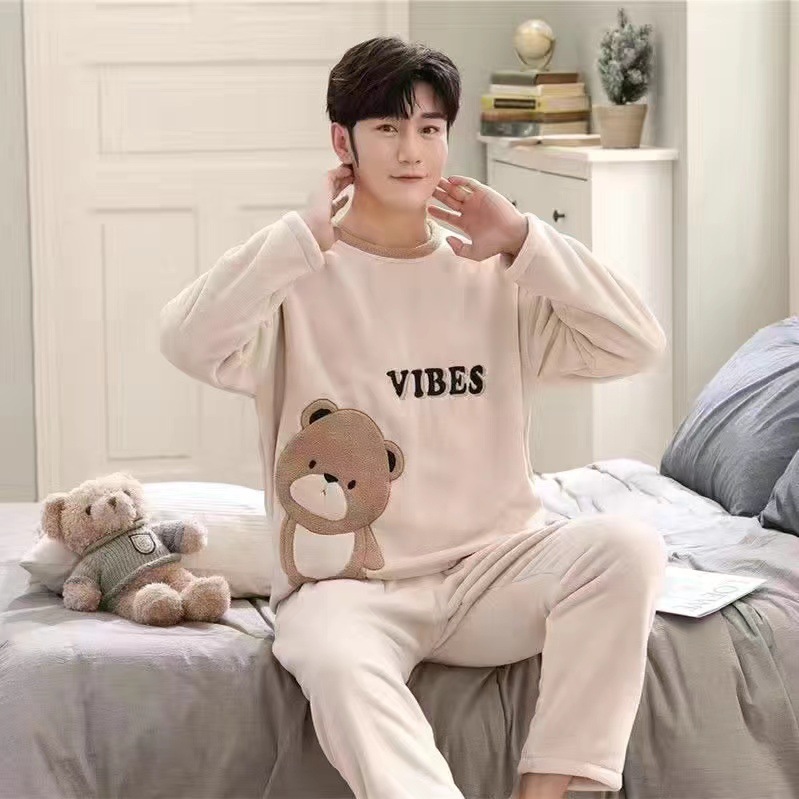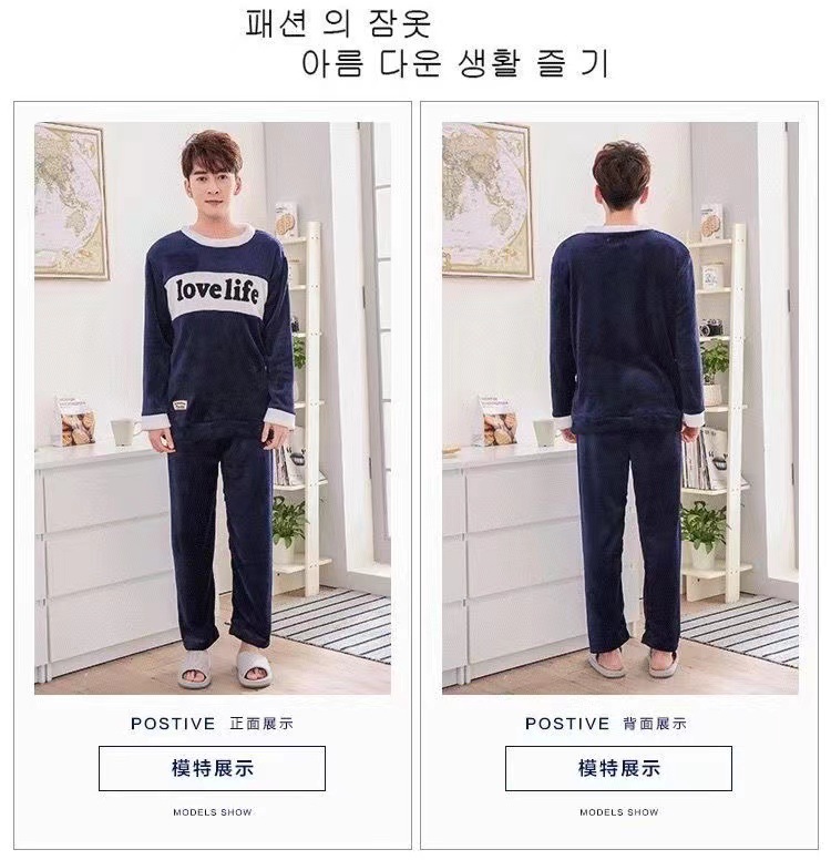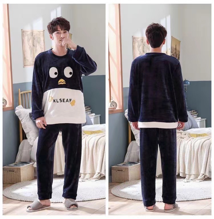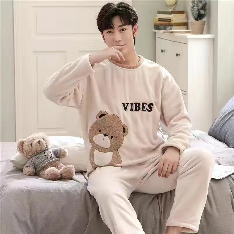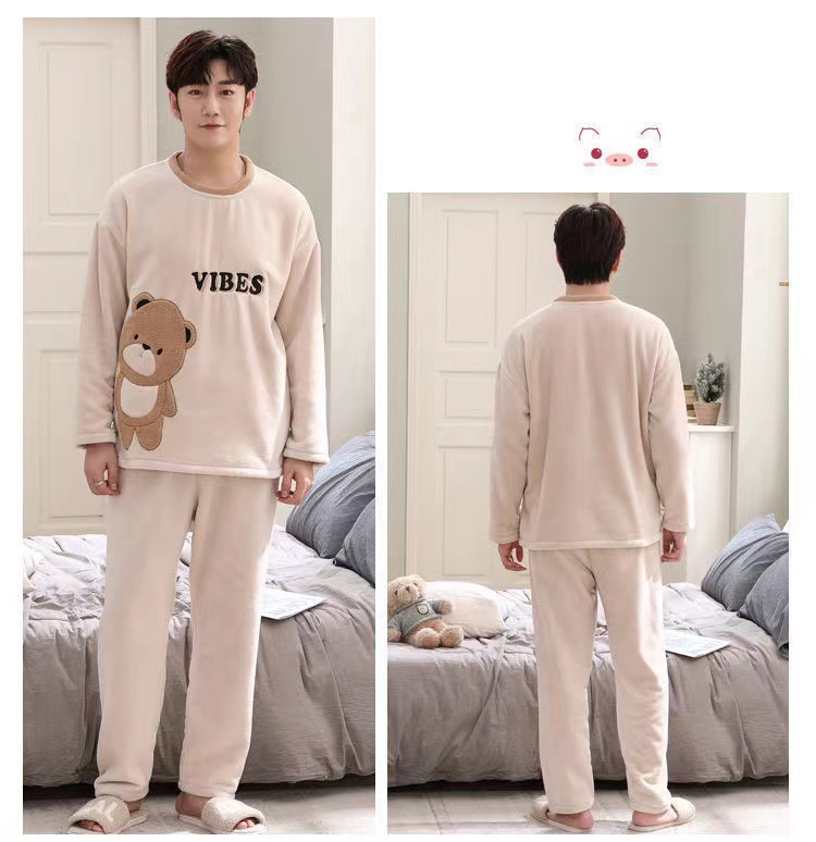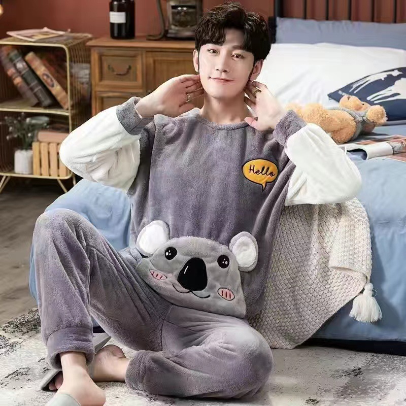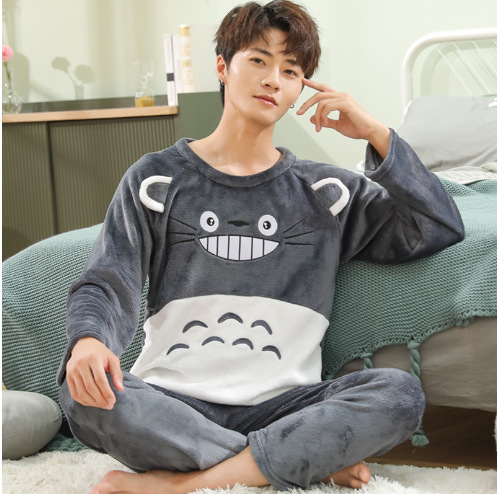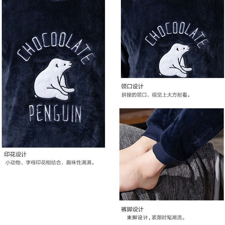 Коралловый бархатный пижама мужской осенний и зимний бархатный набор с круглым вырезом фланелевый мальчик подросток домашняя одежда
