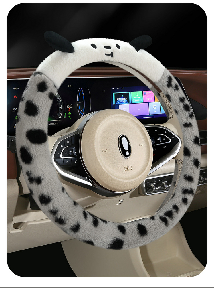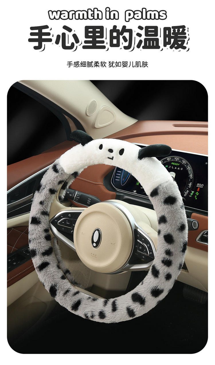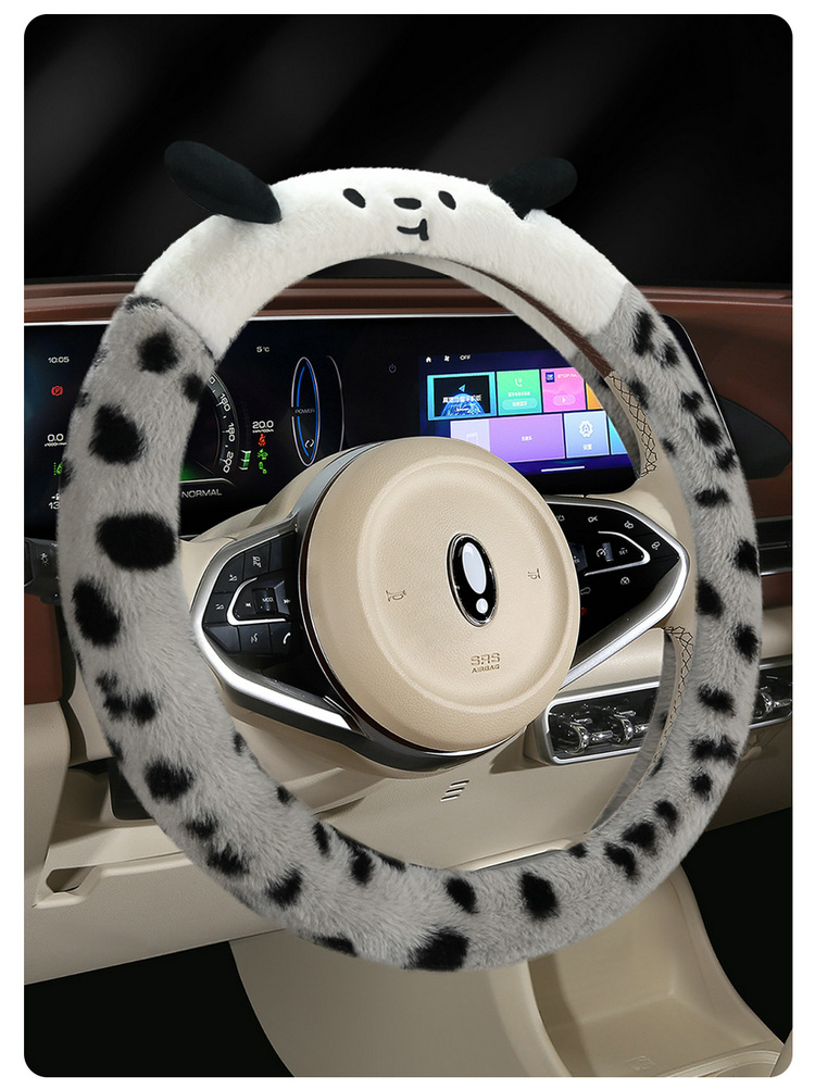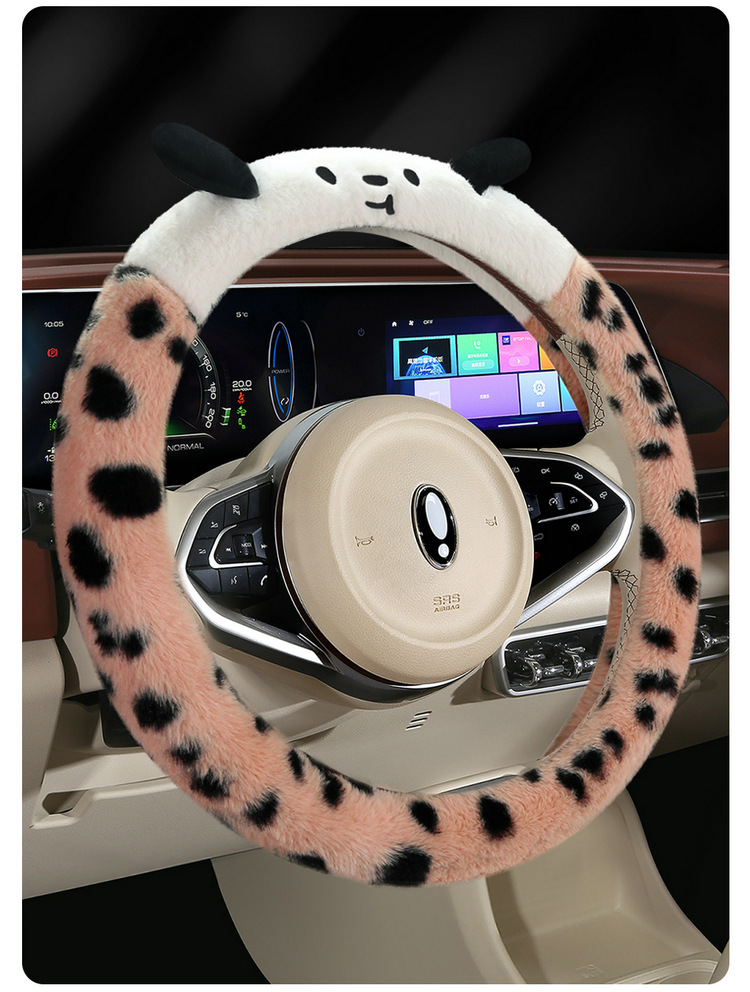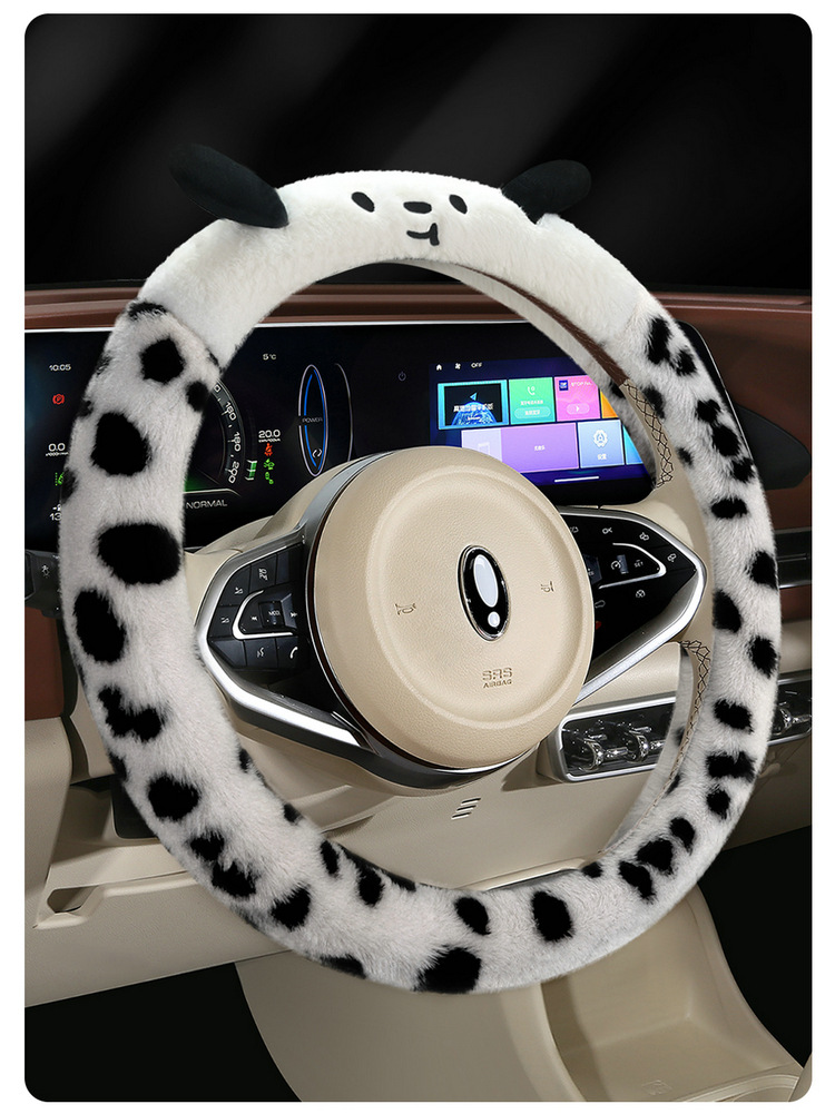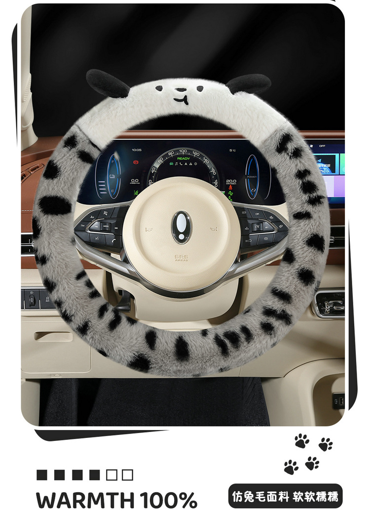 Новый мультфильм имитация меха кролика плюшевый пятнистый щенок зимний автомобиль рулевое рулевое колесо универсальная сетка красная богиня автомобиль чехол