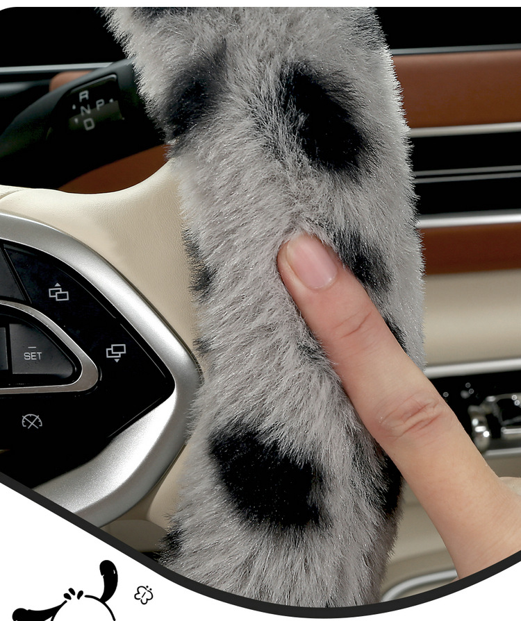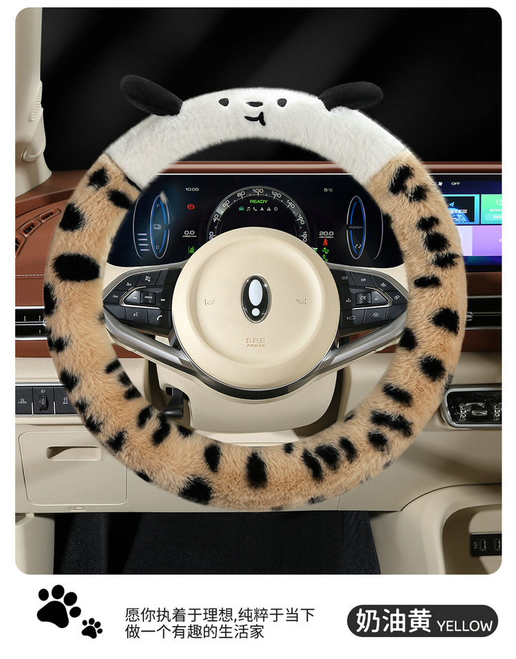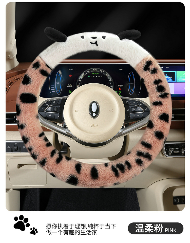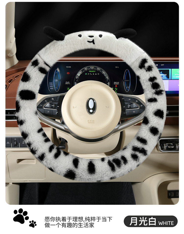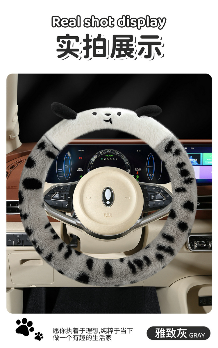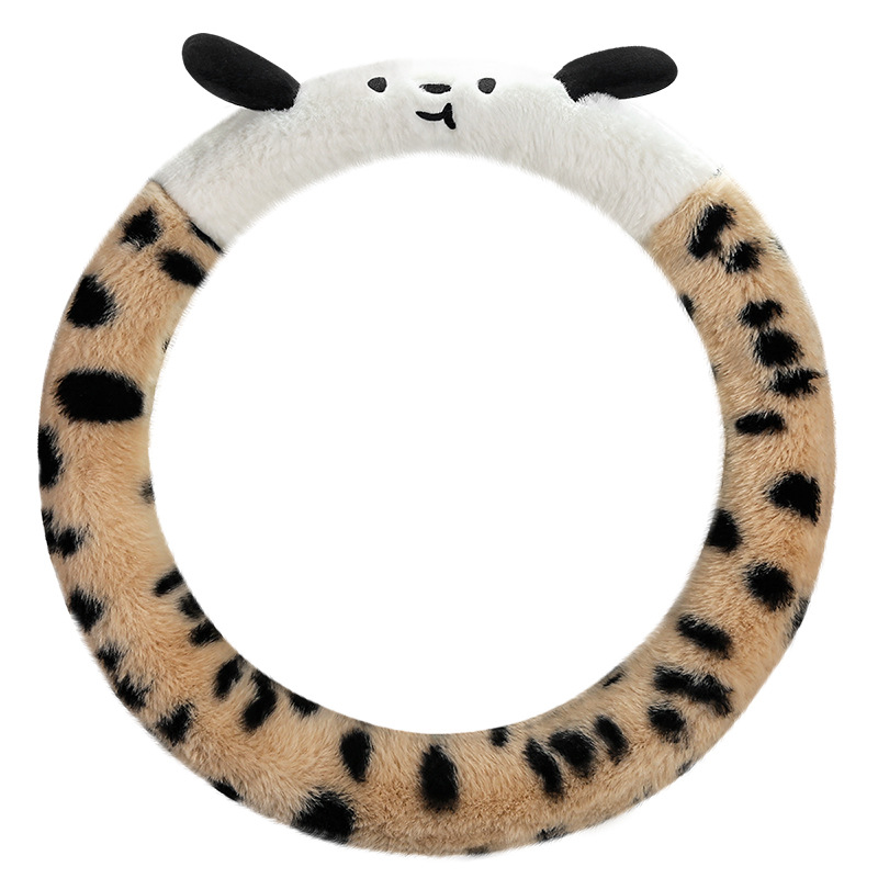 Новый мультфильм имитация меха кролика плюшевый пятнистый щенок зимний автомобиль рулевое рулевое колесо универсальная сетка красная богиня автомобиль чехол