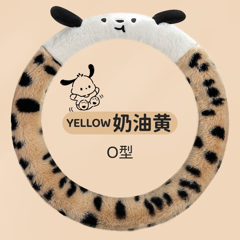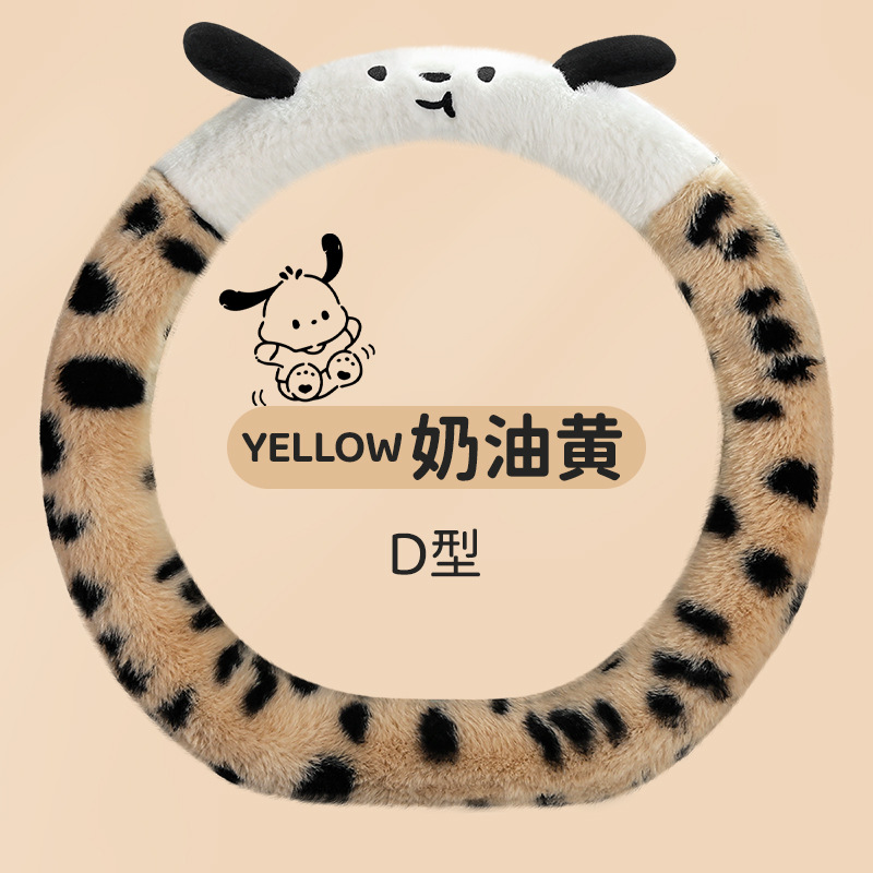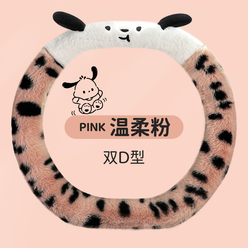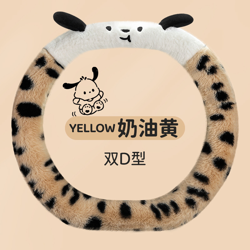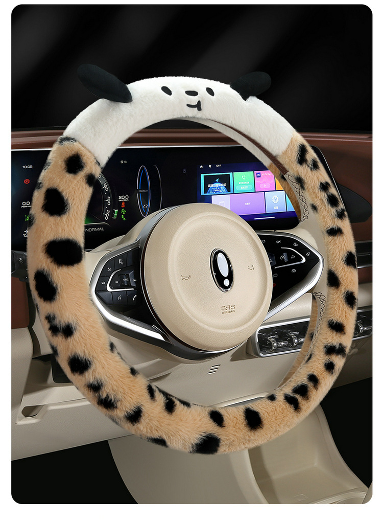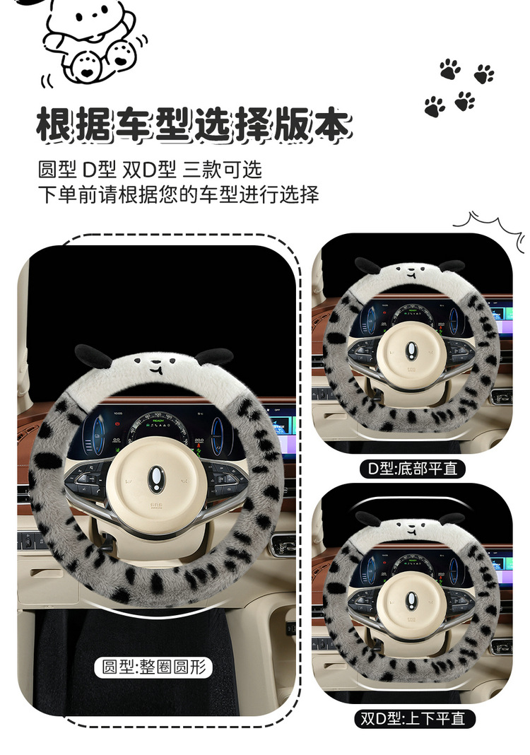 Новый мультфильм имитация меха кролика плюшевый пятнистый щенок зимний автомобиль рулевое рулевое колесо универсальная сетка красная богиня автомобиль чехол