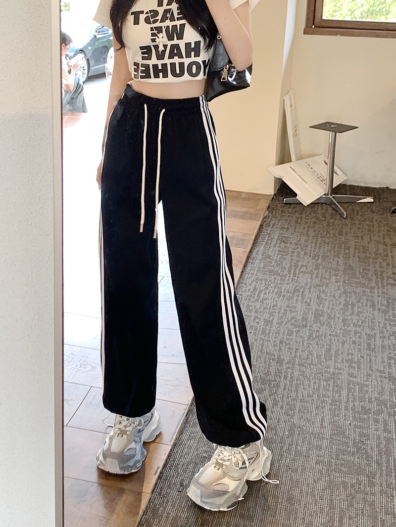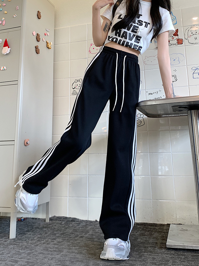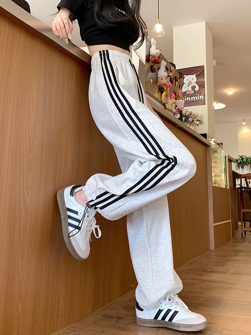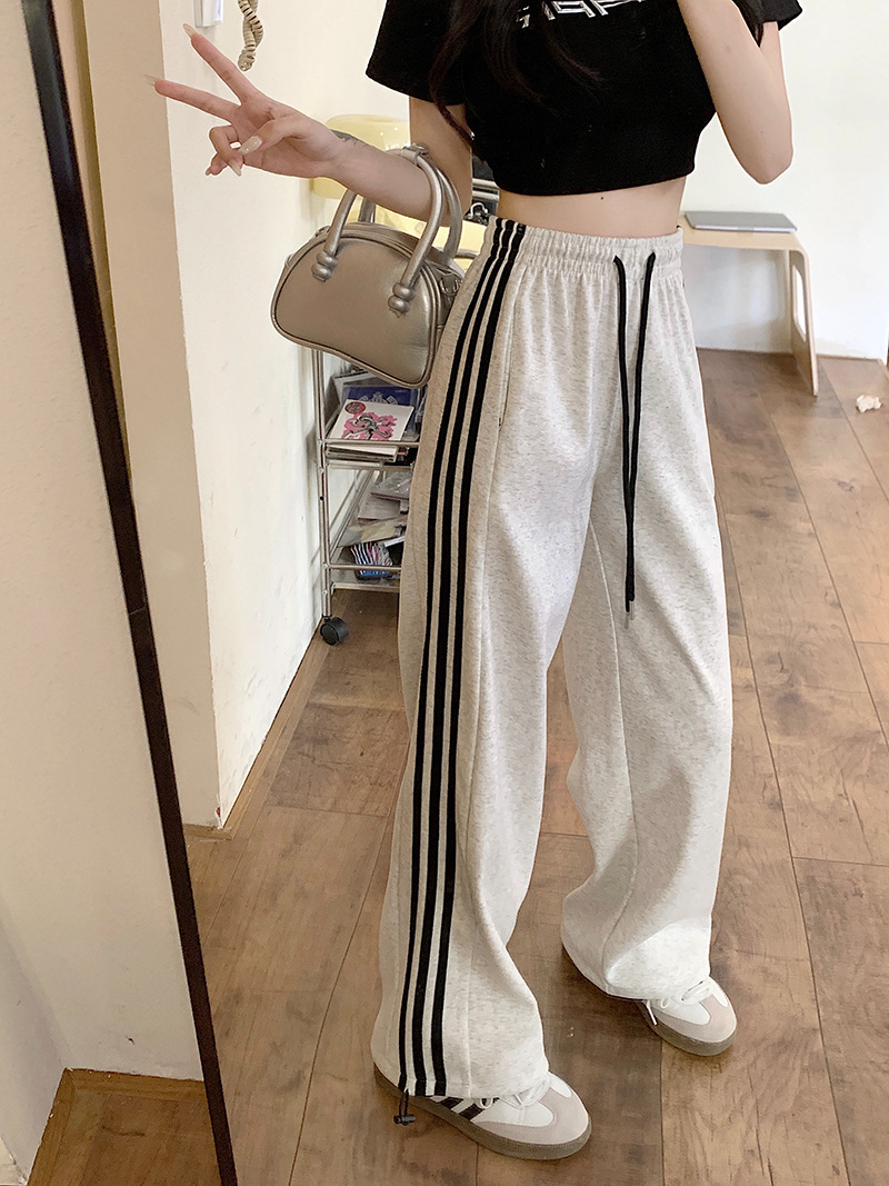 Трансграничные белые серые полосатые брюки женские новые широкие прямые брюки повседневные тонкие дикие свободные спортивные штаны
