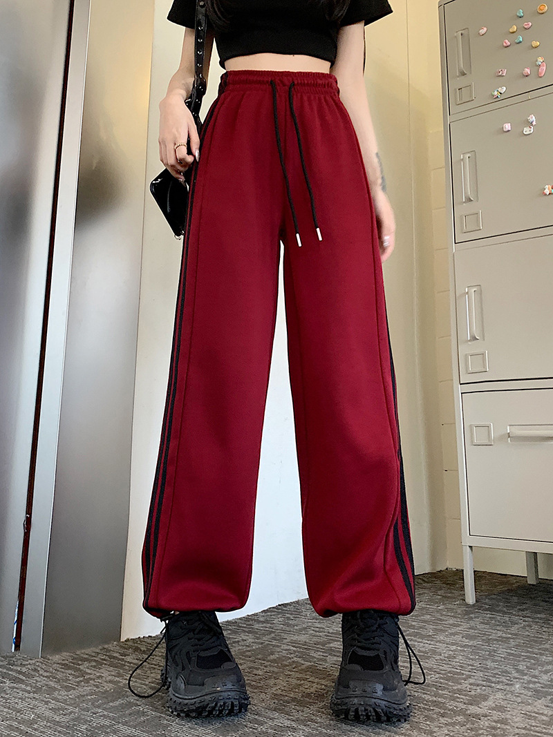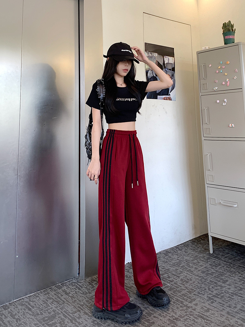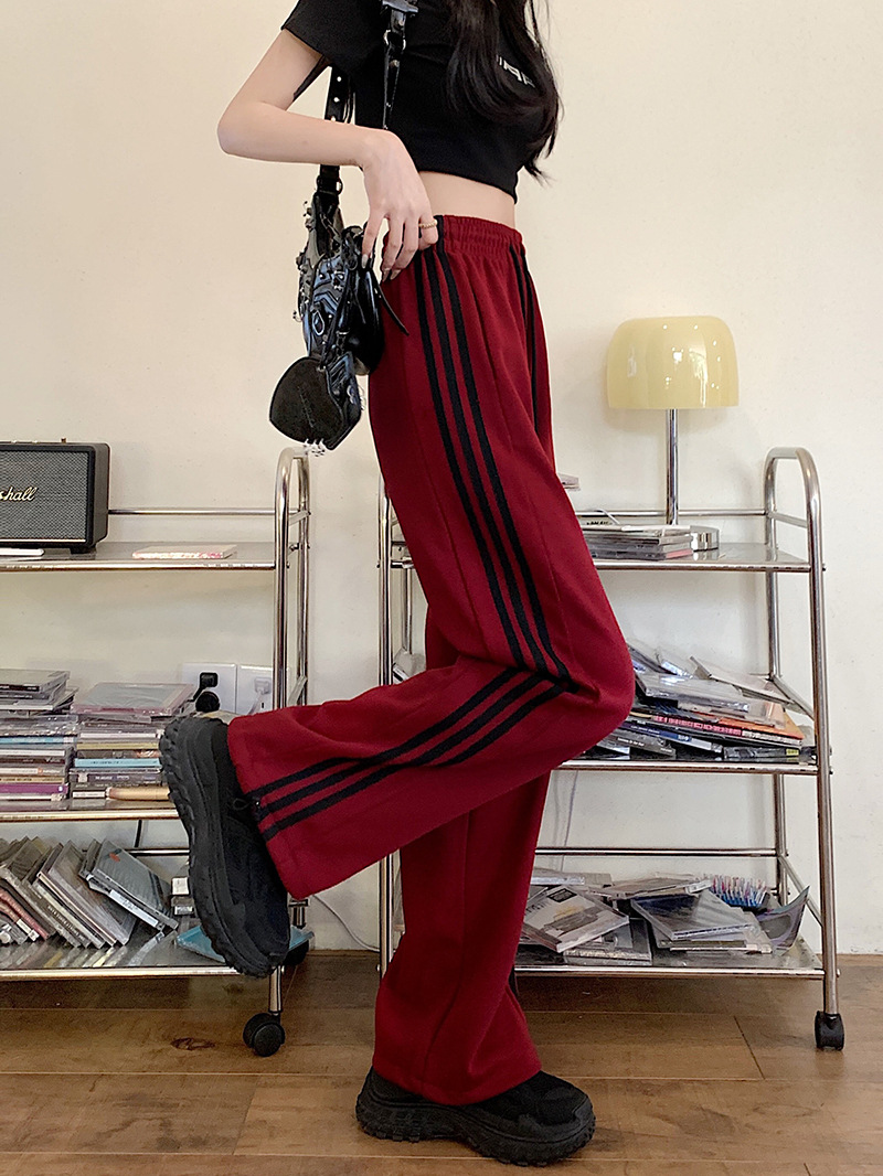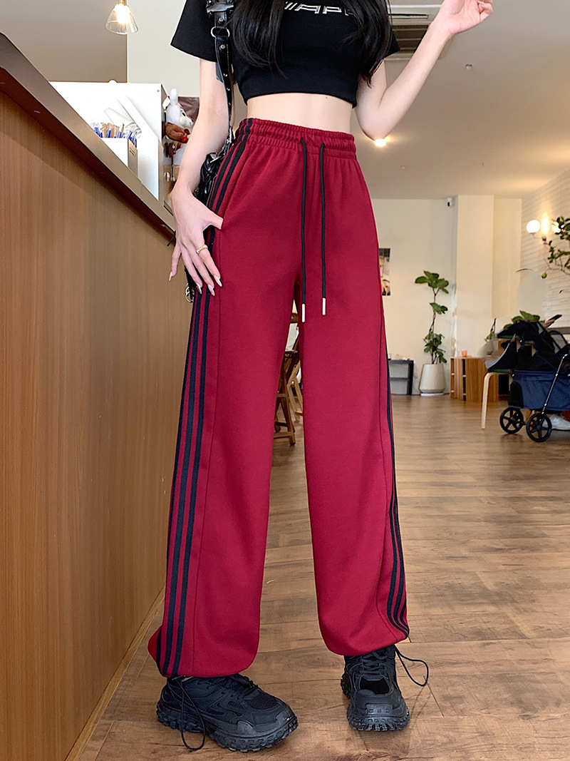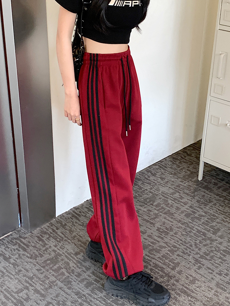 Трансграничные белые серые полосатые брюки женские новые широкие прямые брюки повседневные тонкие дикие свободные спортивные штаны