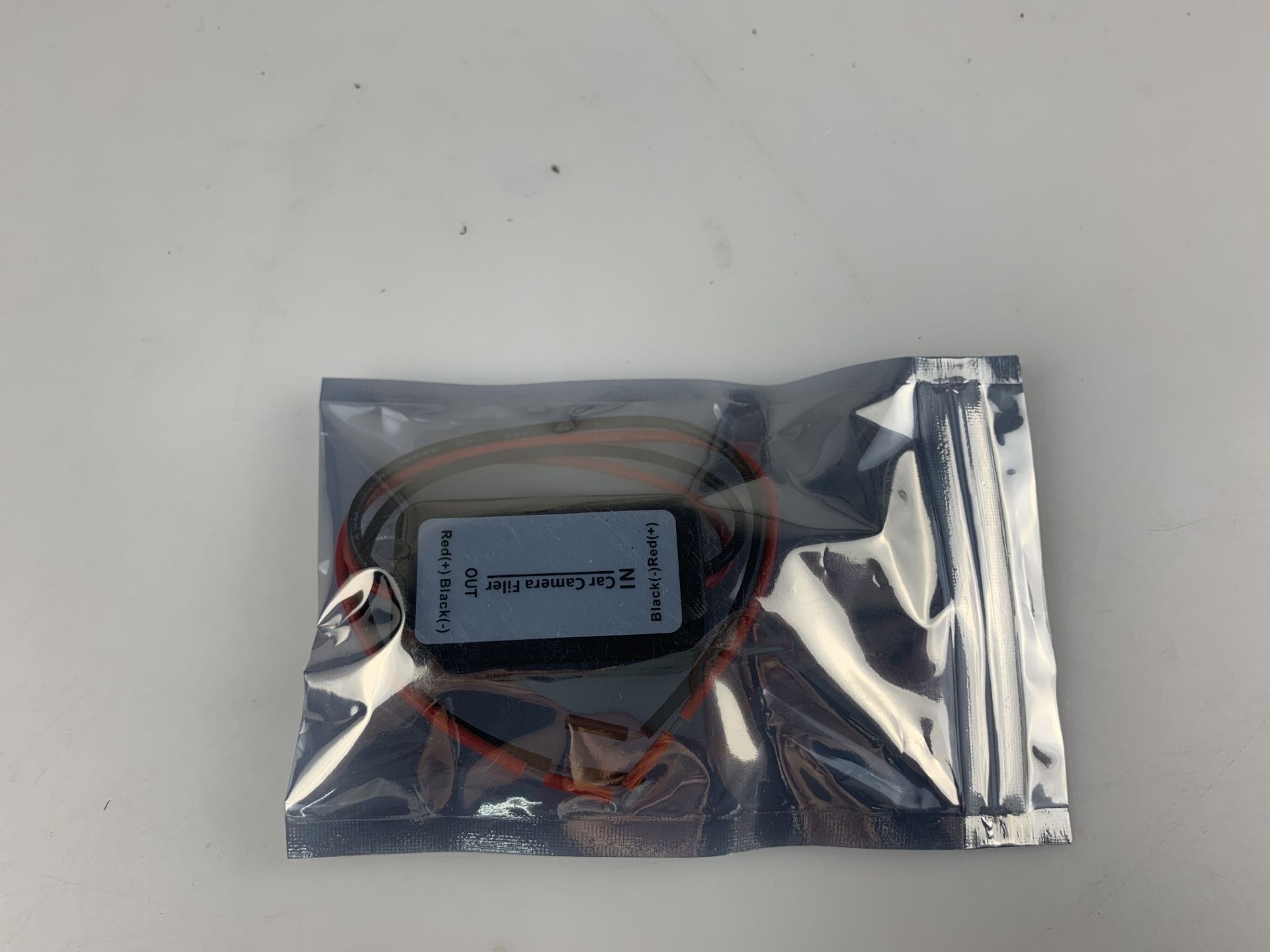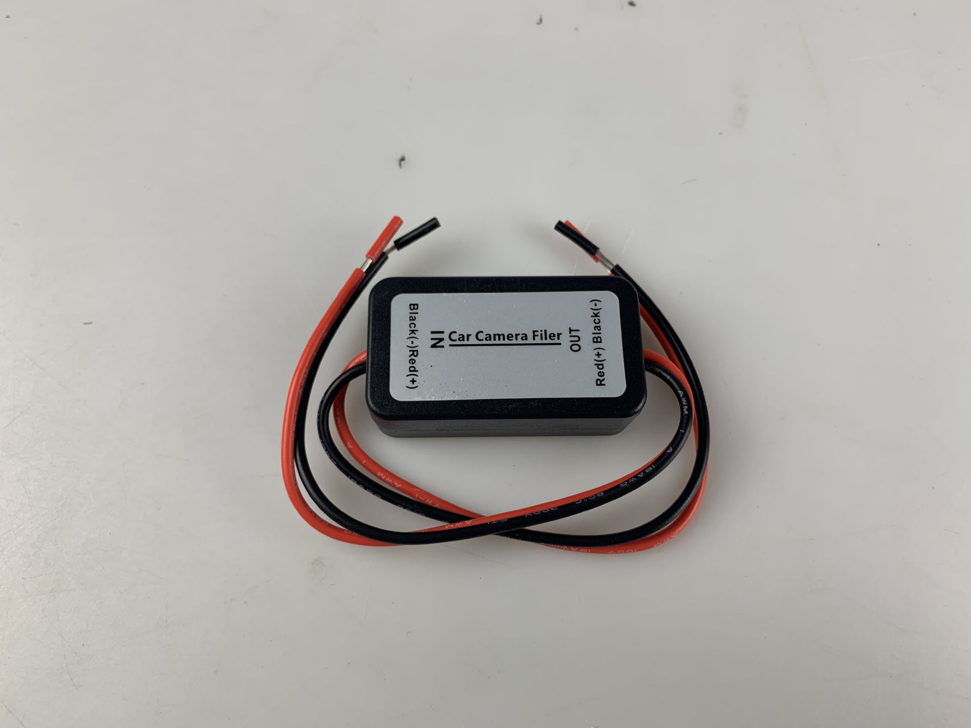 Output positive and negative power supply connected to the camera, reversing lights power input connector is negative, reversing ballast is the solution to your reversing camera interference ripple best choice.