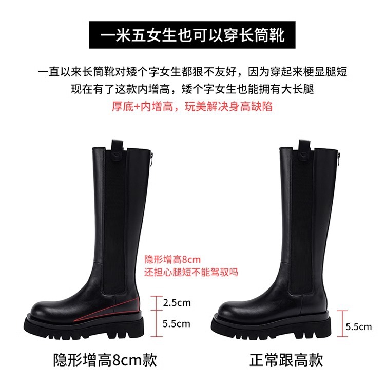 Длинные сапоги с двойной трубкой, увеличивающие рост, для невысоких женщин, высокие сапоги до колена на толстой подошве для полных ног.