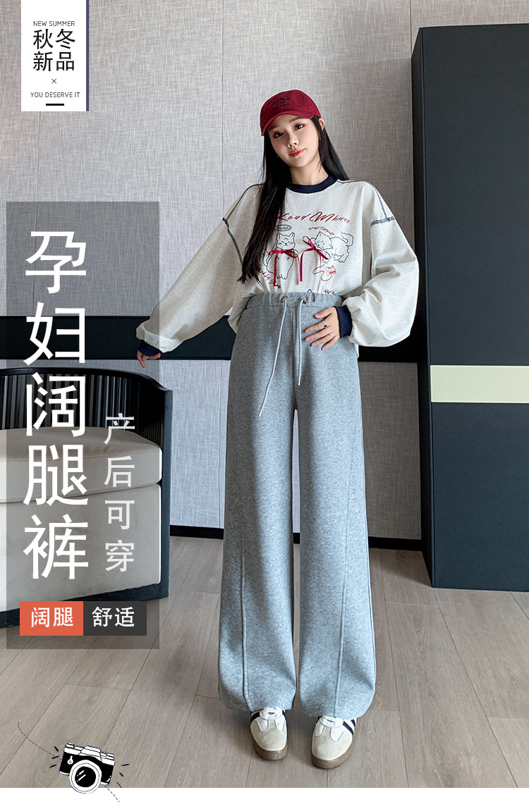 Брюки для беременных 2024 весна и осень носить широкие бараньи бархатные банановые брюки без живота высокие брюки для беременных