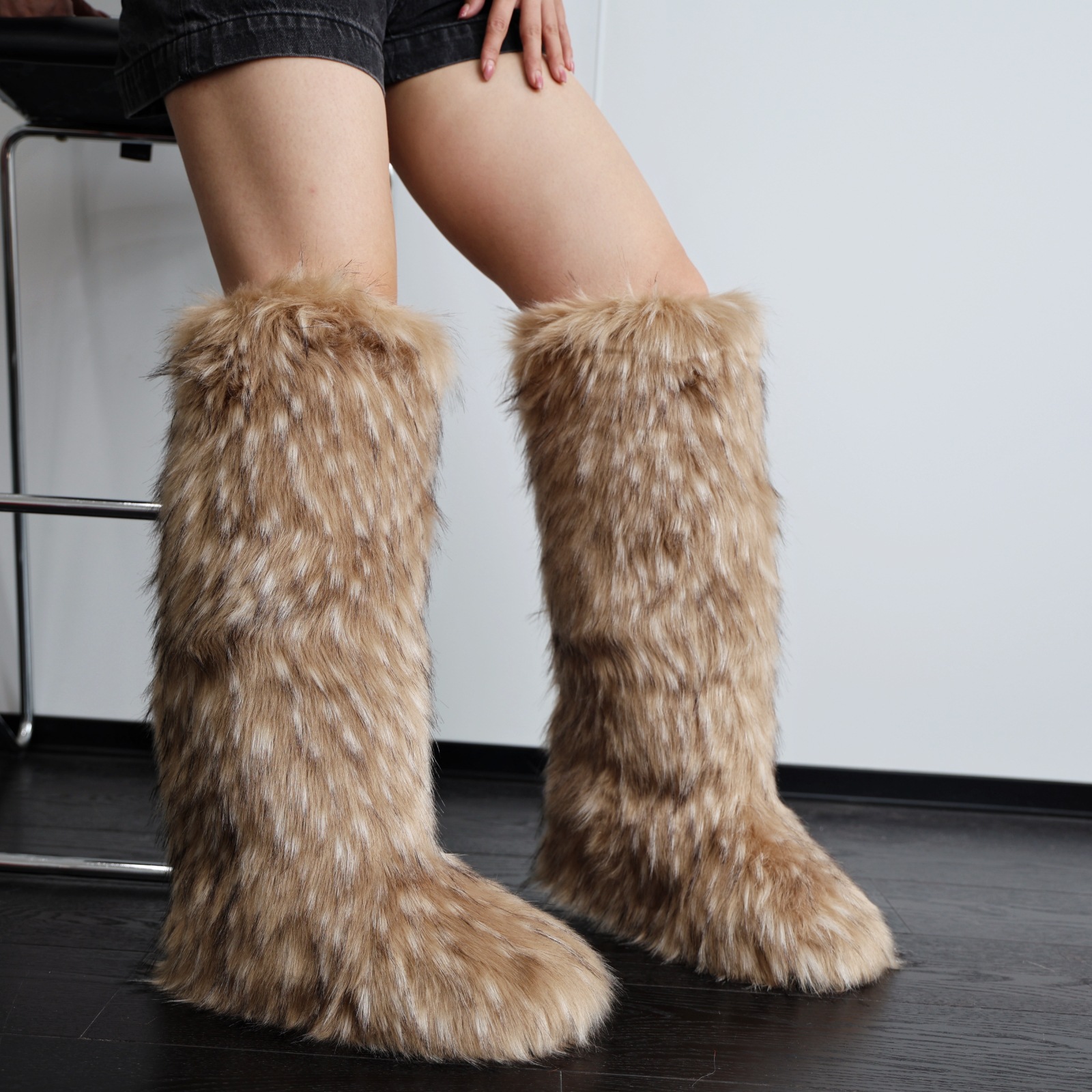 Новые высокие сапоги, зимние сапоги до колена, теплые сапоги из искусственного лисьего меха, сапоги из искусственного меха енота Сапоги Y2Kfur