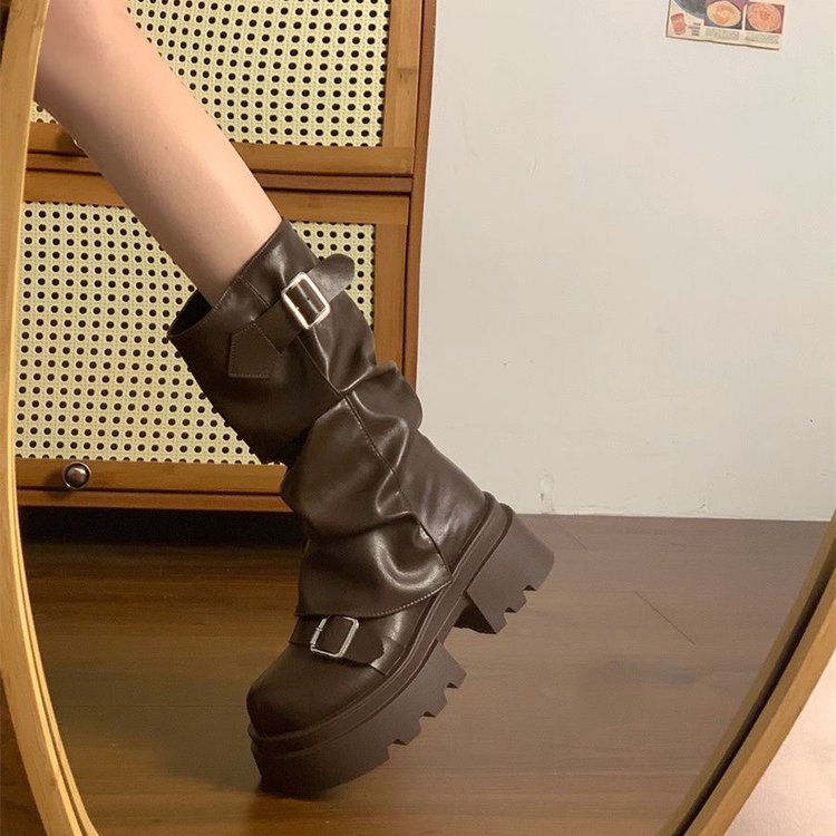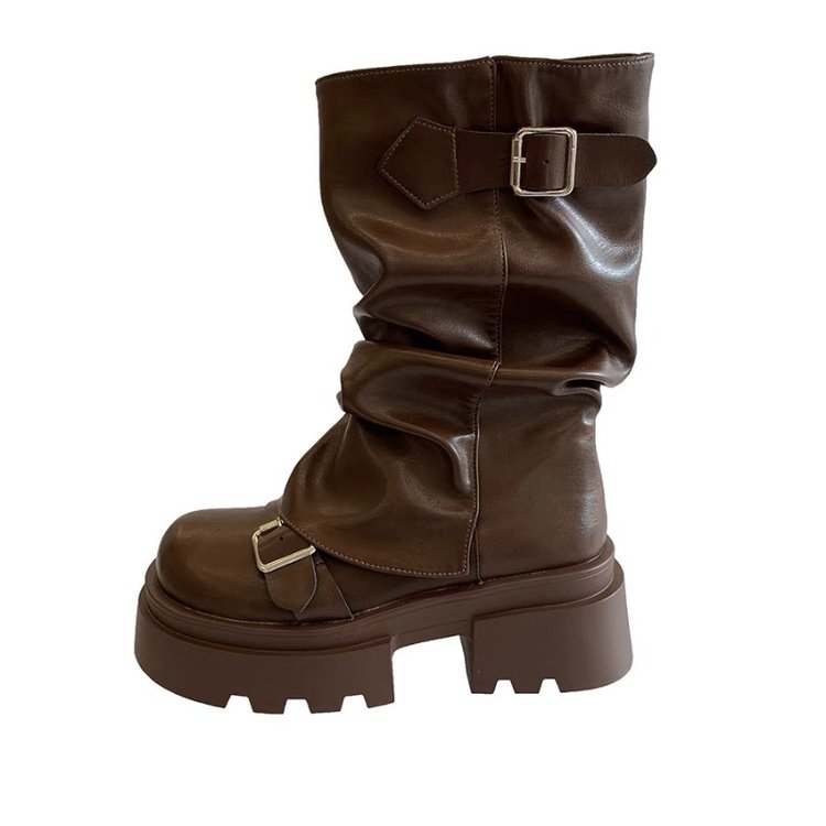 Коричневые дикие толстые подошвы Martin сапоги женские 2024 новые весенние и осенние зимние ретро средние сапоги Mailard