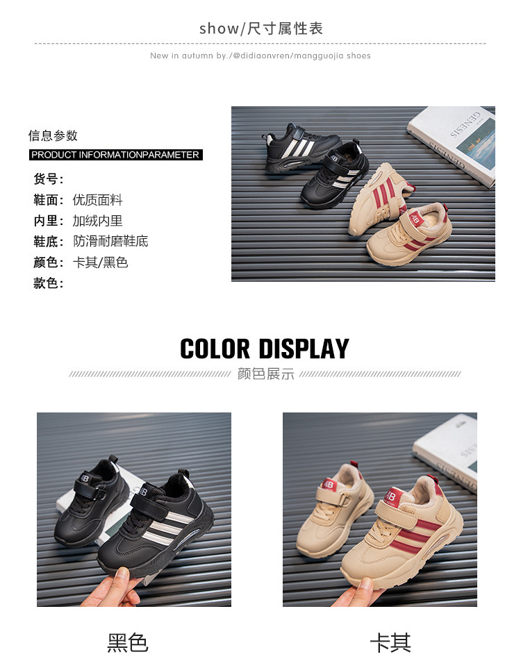 Спортивная обувь для мальчиков Плюшевая детская беговая обувь зимняя новая толстая детская обувь теплая нескользкая обувь для мальчиков