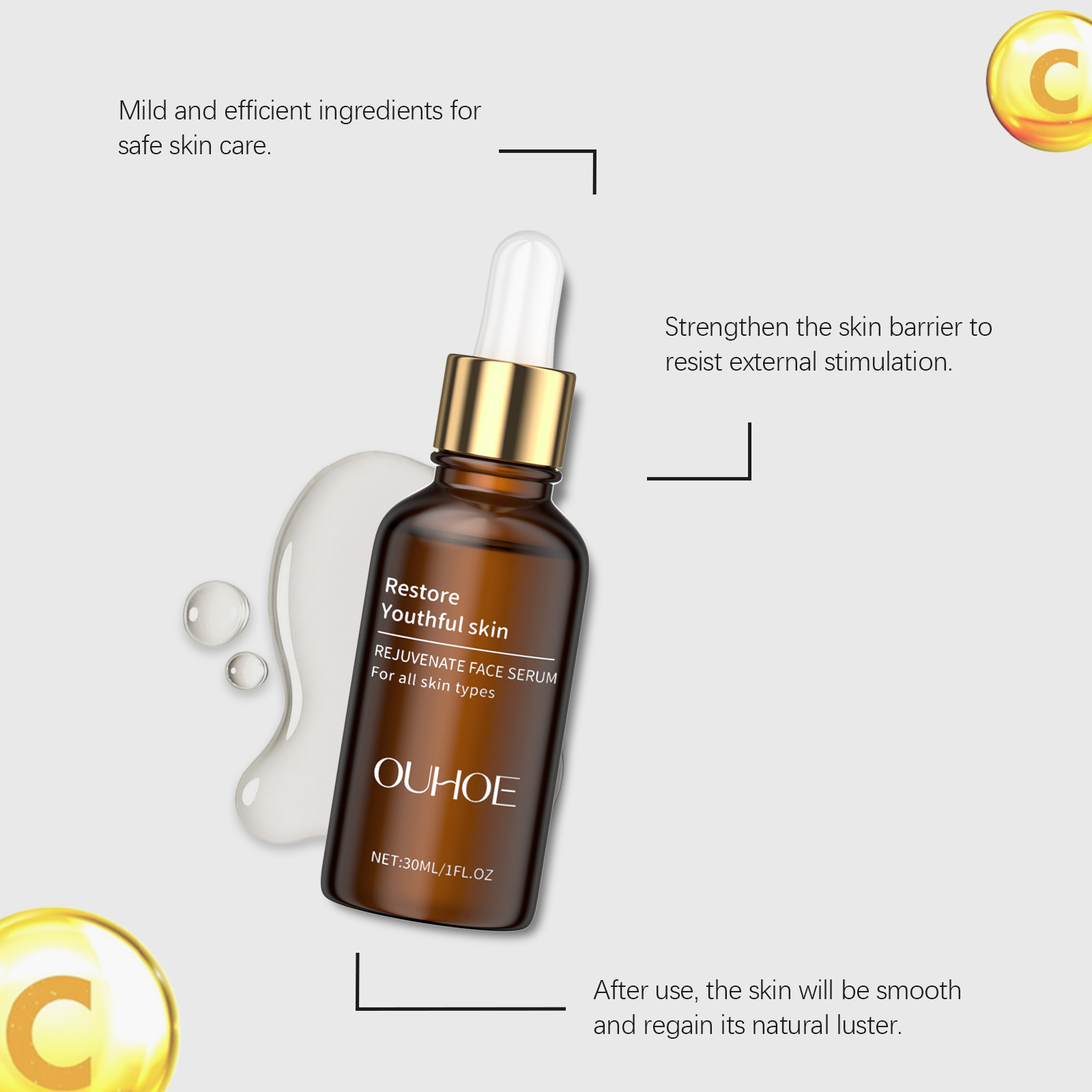 OUHOE Essence для ухода за лицом, чтобы очистить кожу лица, нежный увлажняющий уход, мягкий блеск