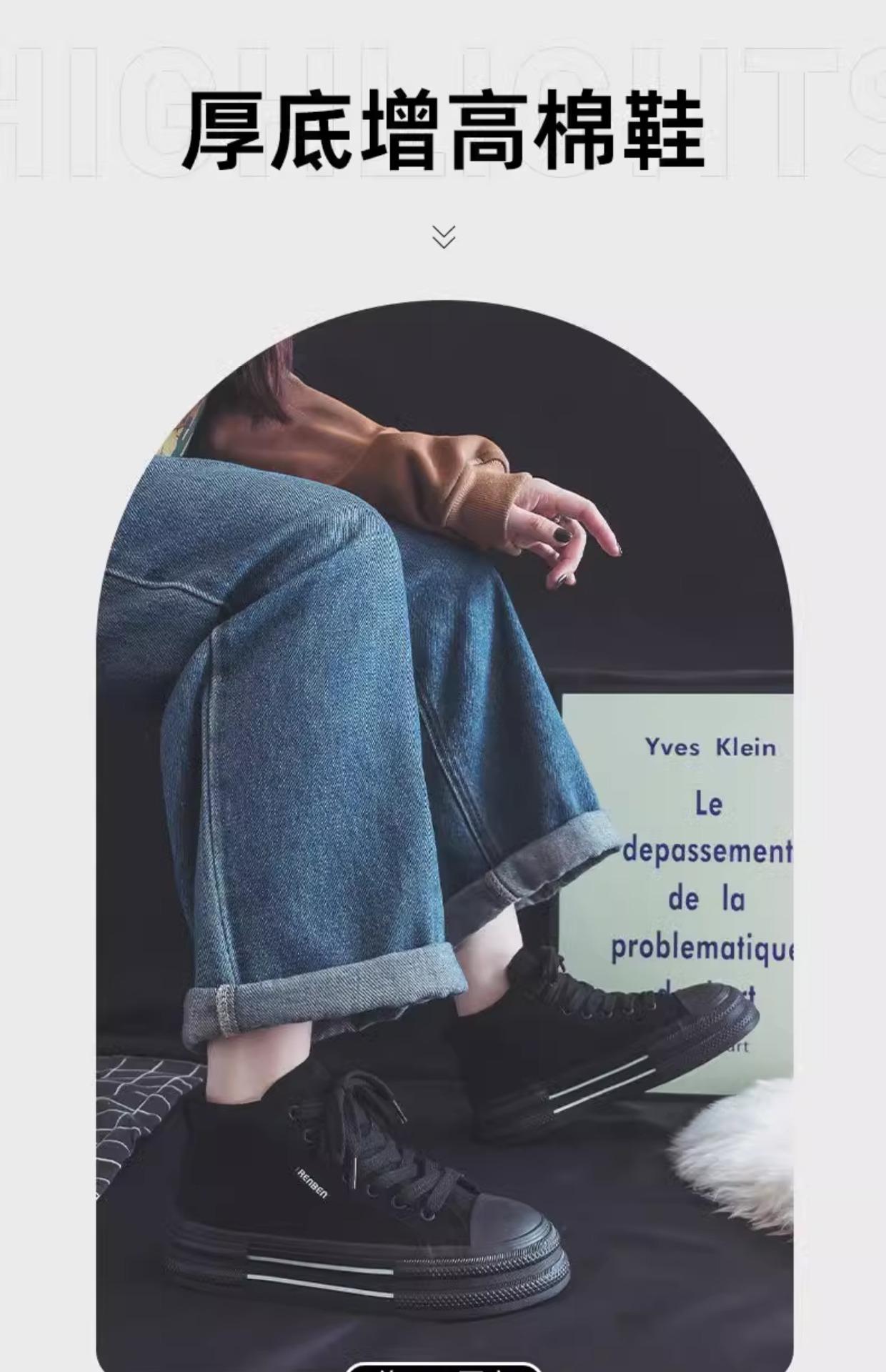 RB23213 высокие бархатные хлопчатобумажные туфли женские зимние новые толстые подошвы хлопковые сапоги дикие толстые утепленные туфли