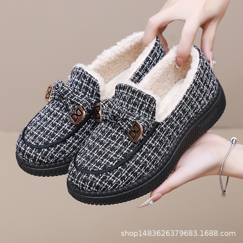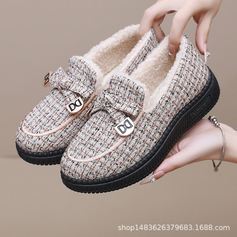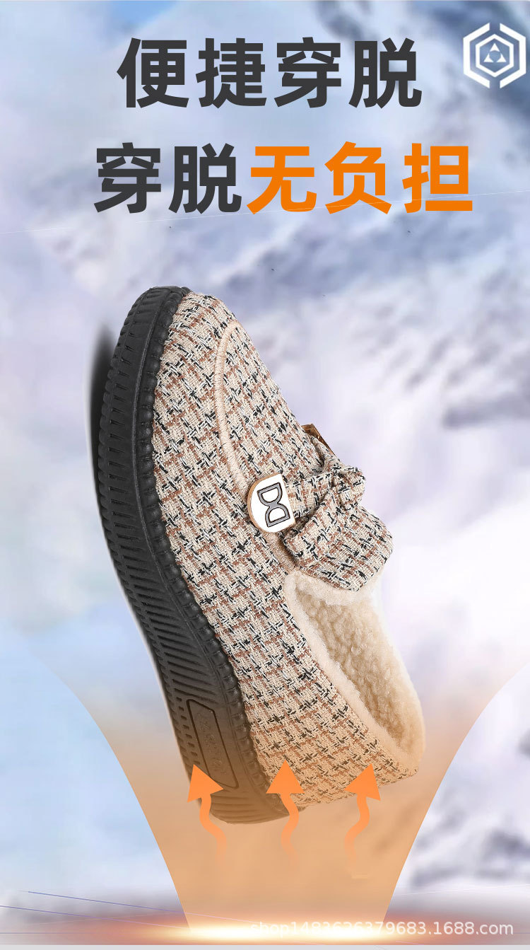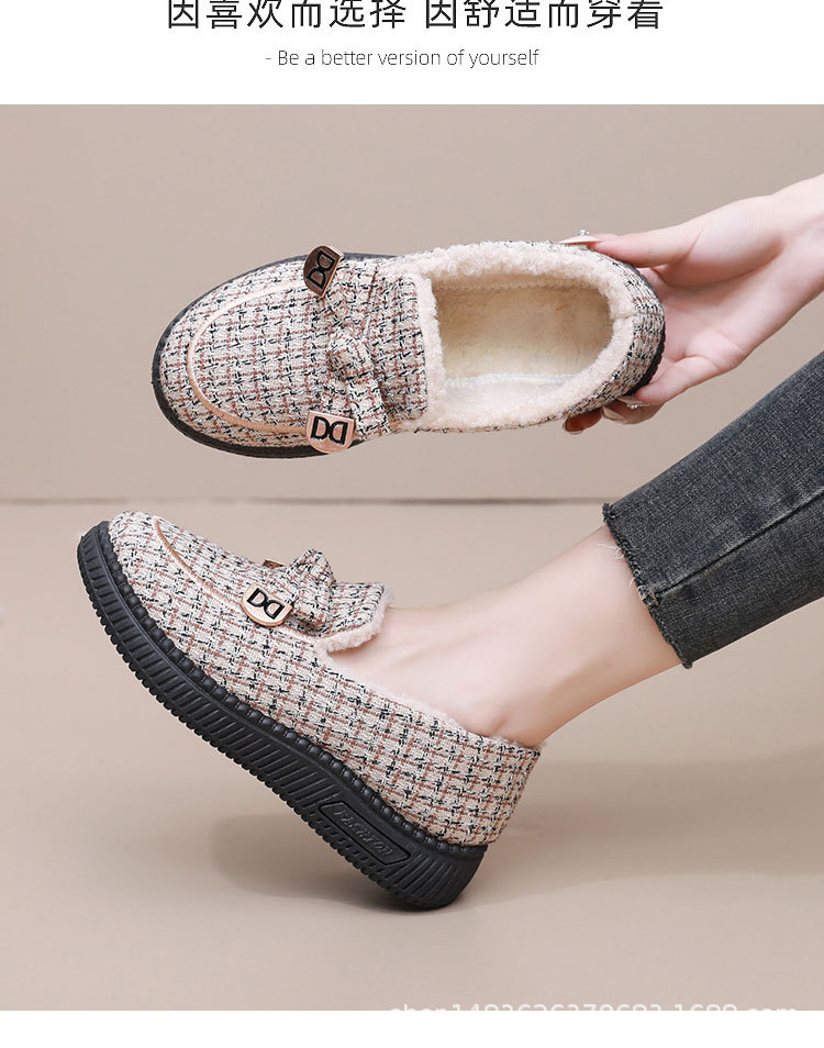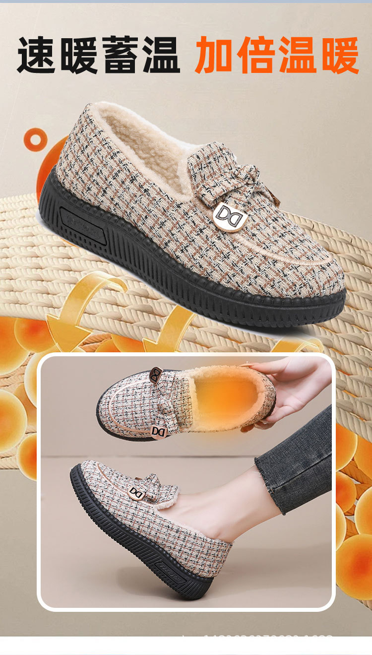 Туфли-бини, зимние хлопковые туфли на флисовой подкладке для среднего и пожилого возраста, нескользящая утолщенная теплая обувь для мам, домашняя и уличная женская хлопковая обувь, хлопковые тапочки