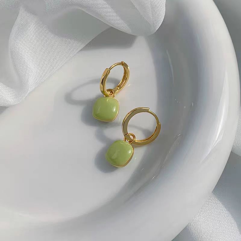 Трансграничный темперамент минималистский красный квадратный сахар-пряжка для ушей французское ретро квадратная двухсторонняя эмалевая глазурь дикие серьги