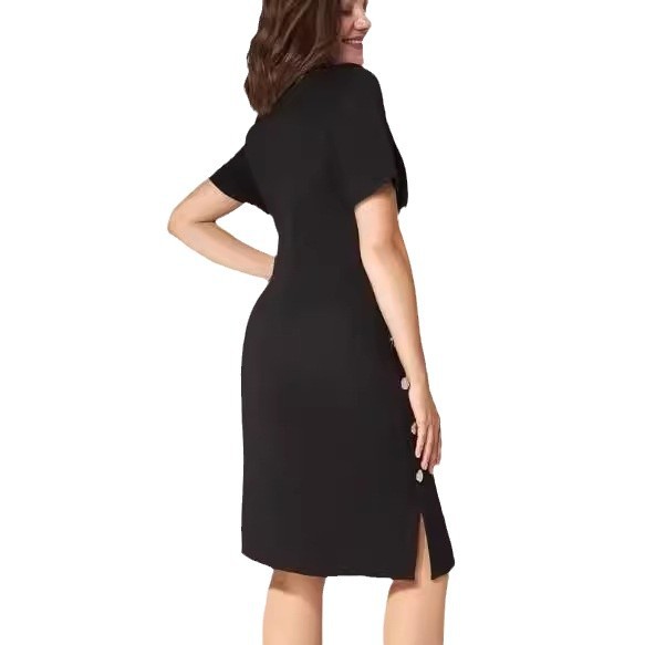 2025 Европейская и американская трансграничная новая мода: платье с круглым вырезом и пуговицами, однотонное