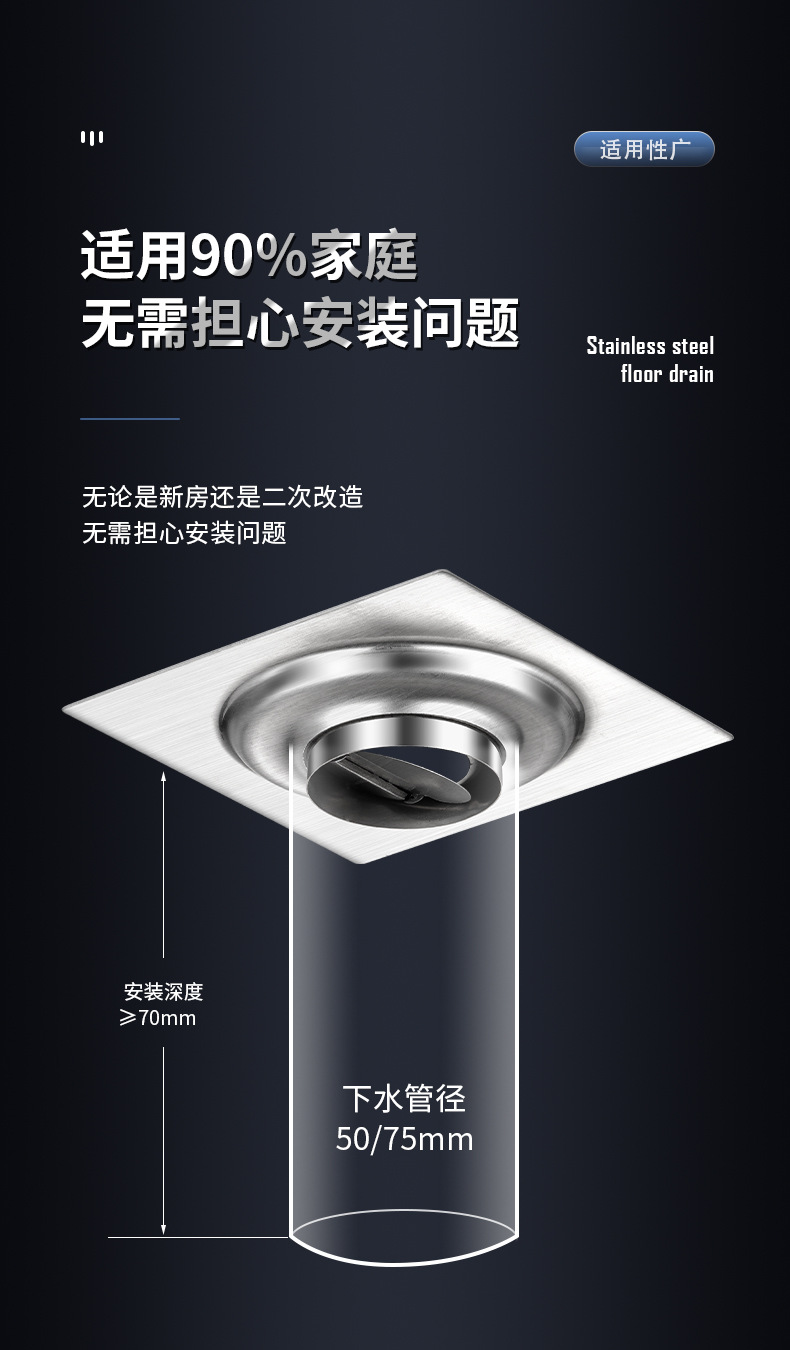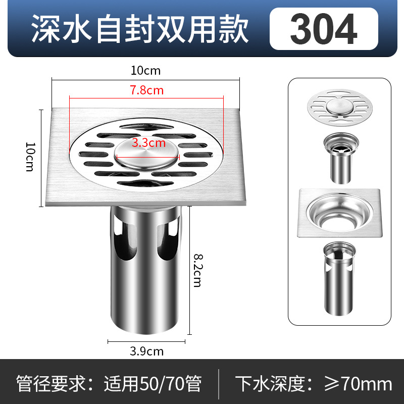 304 нержавеющая сталь против запаха самозакрывающая ванная комната дренаж балкон стиральная машина канализация квадратный проект смещения