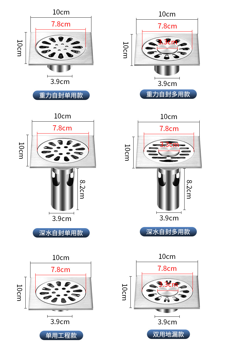 Нержавеющая сталь 201 одноразовая-инженерная модель толщиной 2 мм.; Нержавеющая сталь 201 одноразового использования – относительно большой диаметр – толщина 2 мм.; Нержавеющая сталь 201 двойного назначения — толщина 2 мм.; Нержавеющая сталь 201 одноразовая, с защитой от запаха, толщина 2 мм.; Нержавеющая сталь 201 двойного назначения, с защитой от запаха, толщина 2 мм.; Нержавеющая сталь 201 одноразового использования - с защитой от запаха глубоководной трубы - толщина 2 мм; Нержавеющая сталь двойного назначения 201 - с защитой от запаха глубоководной трубы - толщина 2 мм; Нержавеющая сталь 304, одноразовая, толщина 2 мм, гарантия не ржавеет.; Нержавеющая сталь 304, двойное назначение — толщина 2 мм, рекомендуется не ржавеет.; Нержавеющая сталь 304 одноразового использования - с защитой от запаха толщиной 2 мм, рекомендуется не ржавеет.; Нержавеющая сталь двойного назначения 304 - с защитой от запаха толщиной 2 мм, рекомендуется не ржавеет.; Нержавеющая сталь 304, одноразовое использование - с глубоководной трубой, с защитой от запаха, толщина 2 мм, рекомендуется не ржавеет.; Нержавеющая сталь двойного назначения 304 - с глубоководопроводной трубой, толщина защиты от запаха 2 мм, рекомендуется не ржавеет.; Нержавеющая сталь 201 - 12cm × 12cm - с дезодорирующим фильтром; Нержавеющая сталь 304 - 12cm × 12cm - с дезодорирующим фильтром; Нержавеющая сталь 201 - 15cm × 15cm - с дезодорирующим фильтром; Нержавеющая сталь 304 - 15cm × 15cm - с дезодорирующим фильтром; Нержавеющая сталь 201 - 20cm × 20cm - с дезодорирующим фильтром; Нержавеющая сталь 304 - 20cm × 20cm - с дезодорирующим фильтром