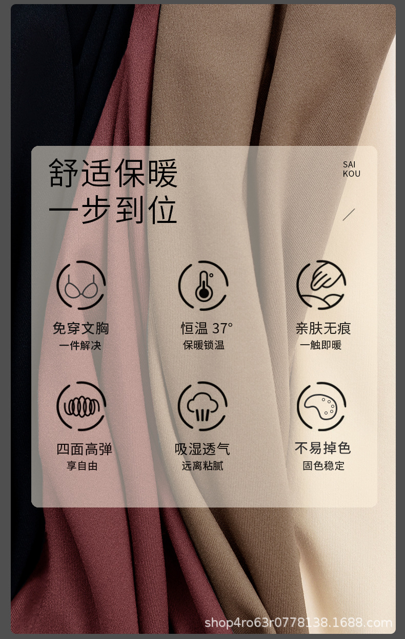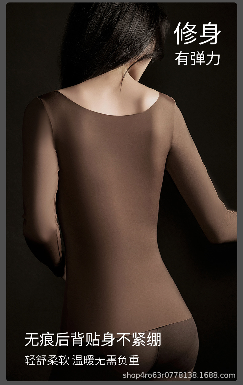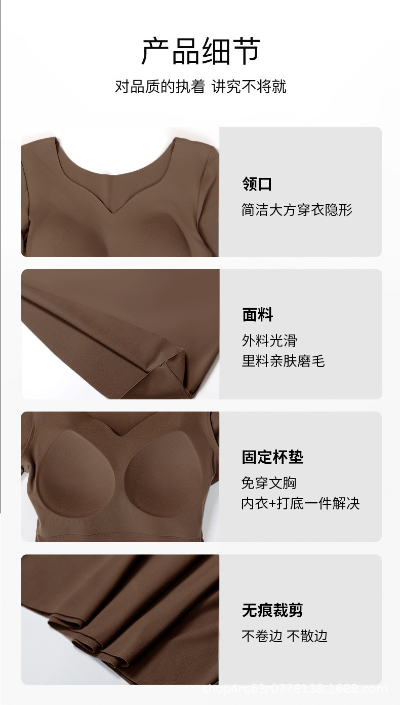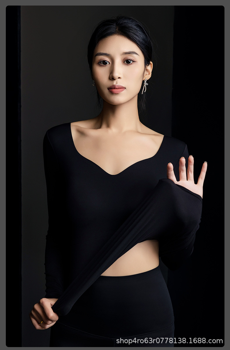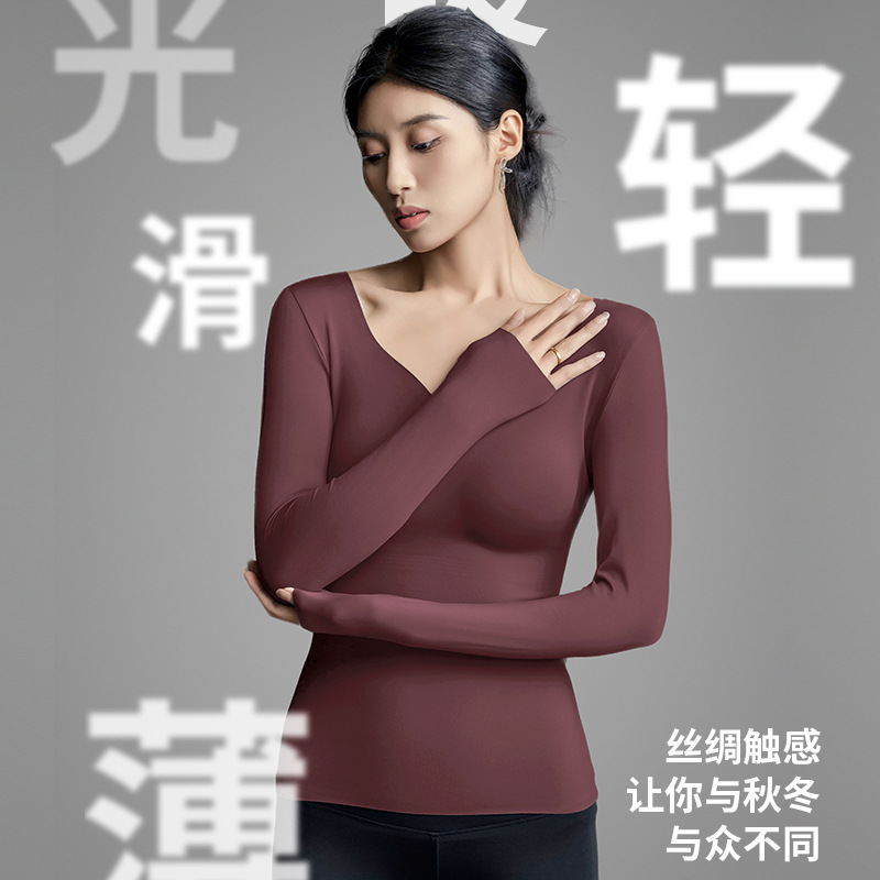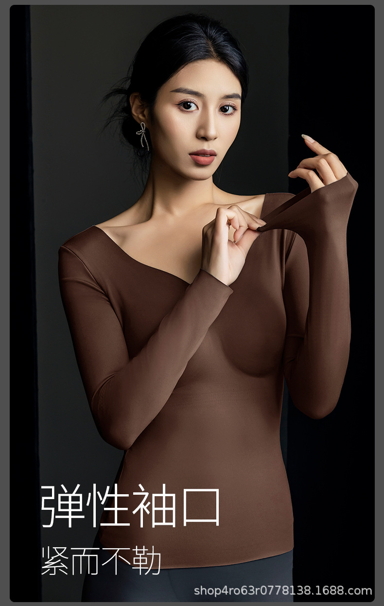 Новое осенне-зимнее термобелье для женщин, невидимое под одеждой, с длинными рукавами, низким вырезом, из начёсанной ткани, с подушечками для груди, внутренний слой для коррекции фигуры.