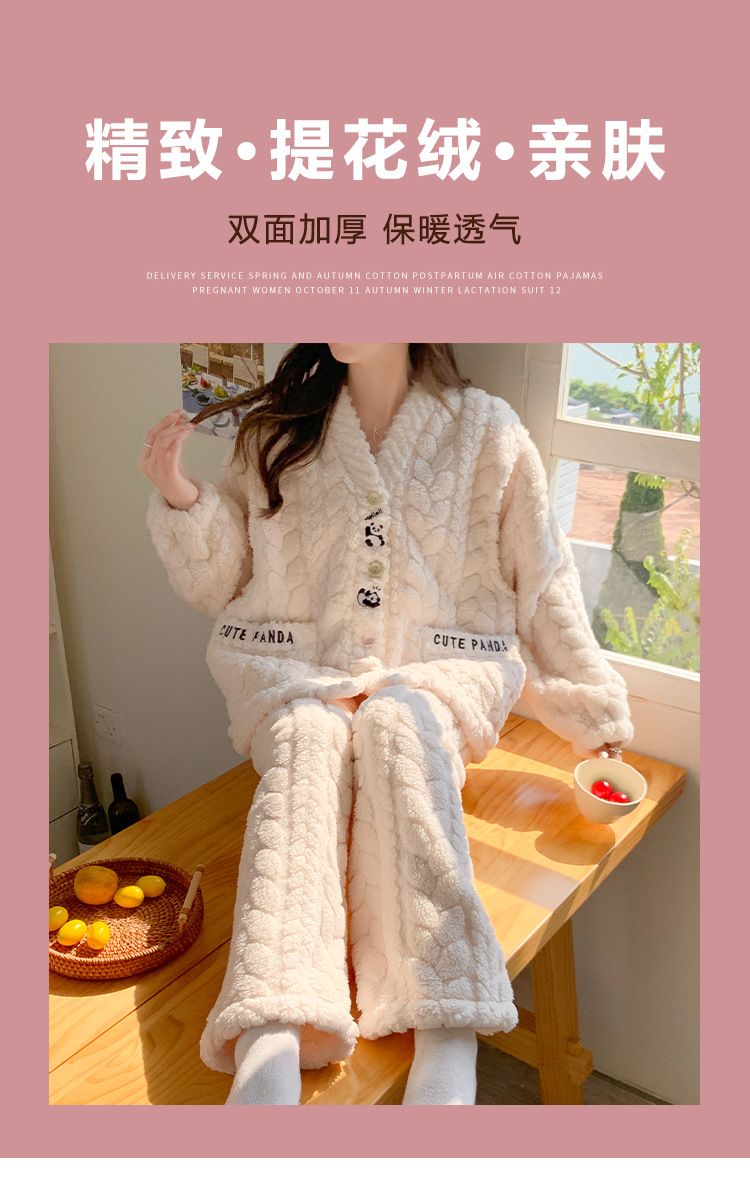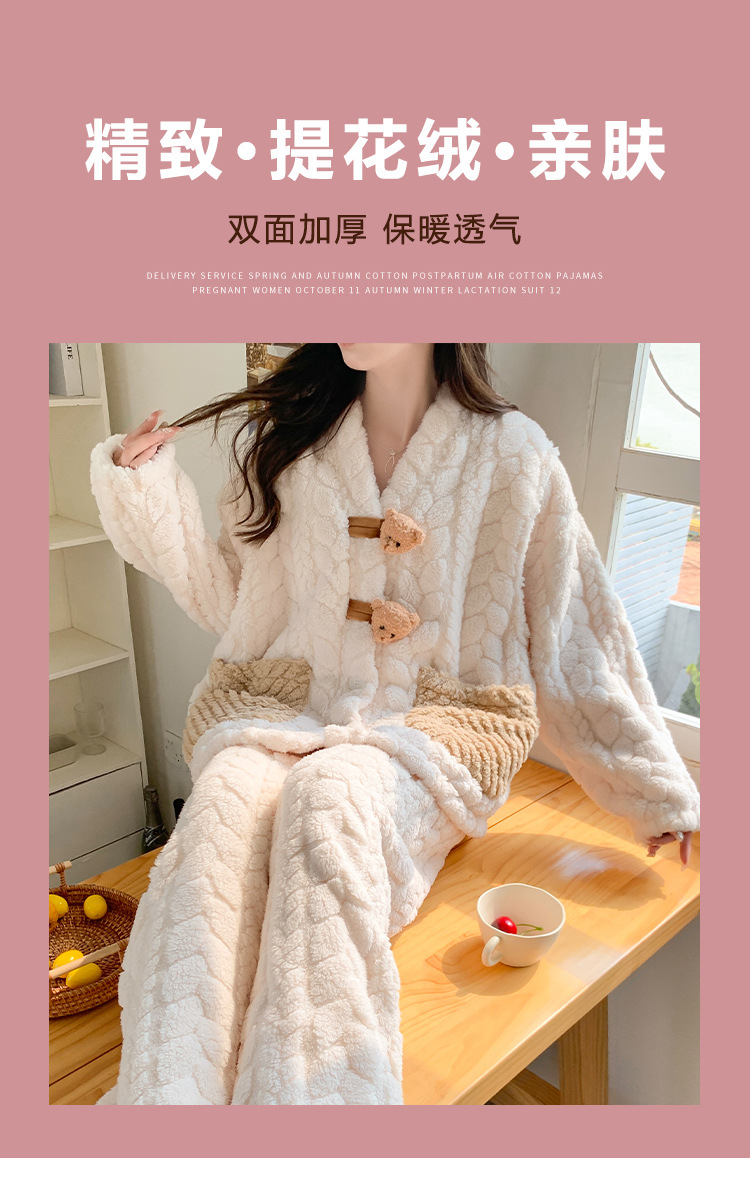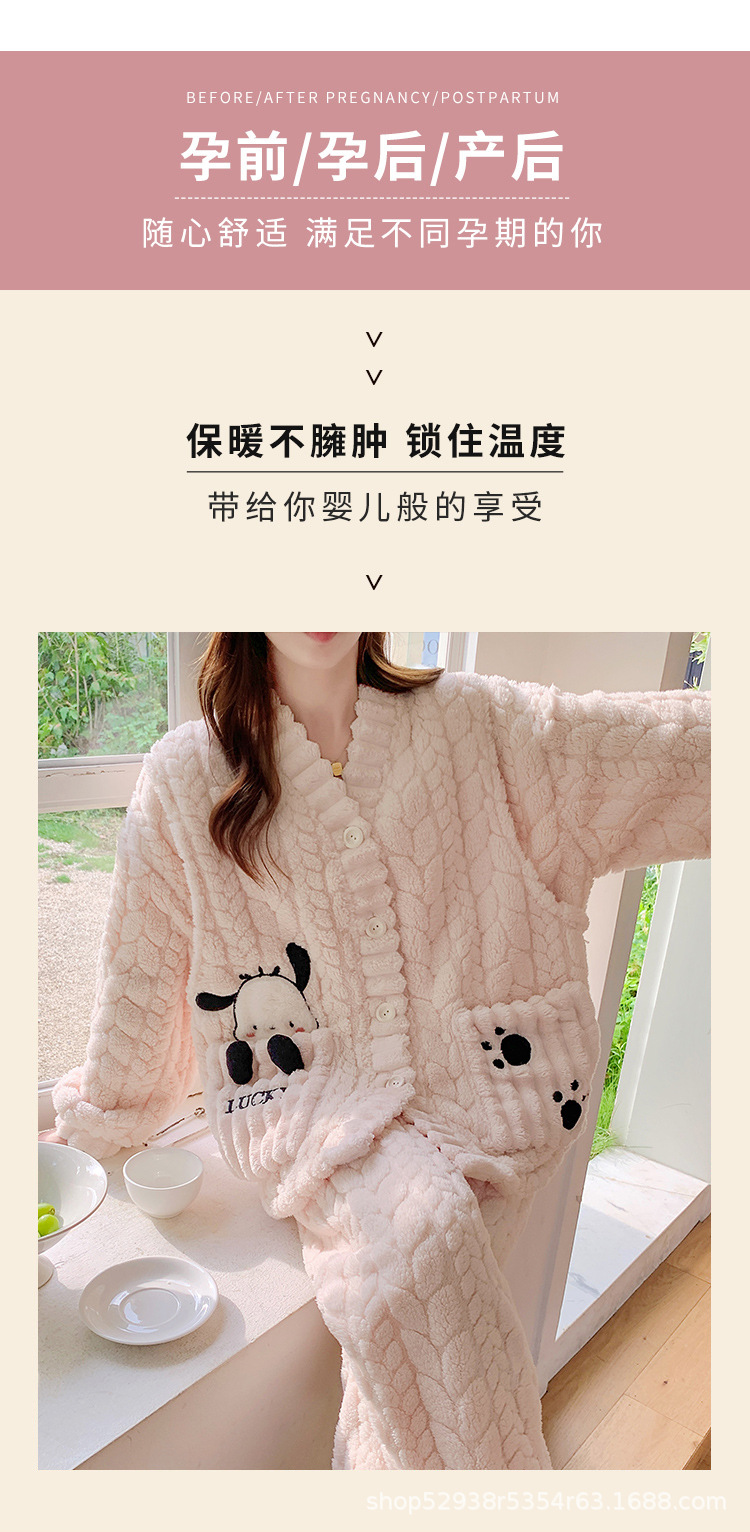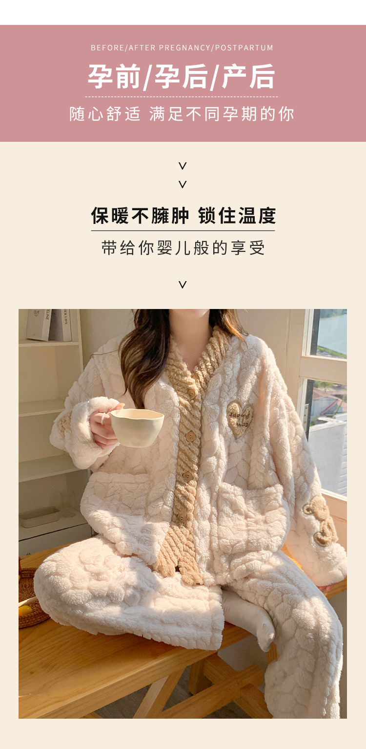 Коралловый бархатный костюм осенью и зимой бархат утолщает послеродовое кормление беременные женщины пижамы зимняя одежда вне беременности