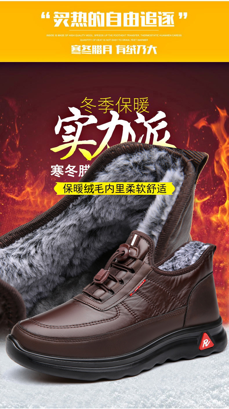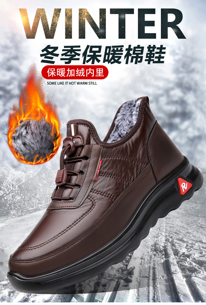 Зимние мужские тканевые туфли в стиле старого Пекина, хлопковые туфли с дополнительным флисом и утеплением, «папские» туфли для людей среднего и пожилого возраста, теплые и нескользящие хлопковые туфли для пожилых людей.