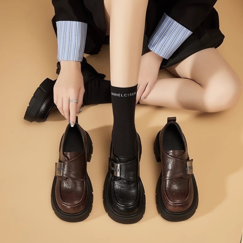 Туфли ретро Lefu обувь женская педаль в британском стиле маленькие кожаные туфли женская осень 2024 новые туфли на высоком каблуке jk