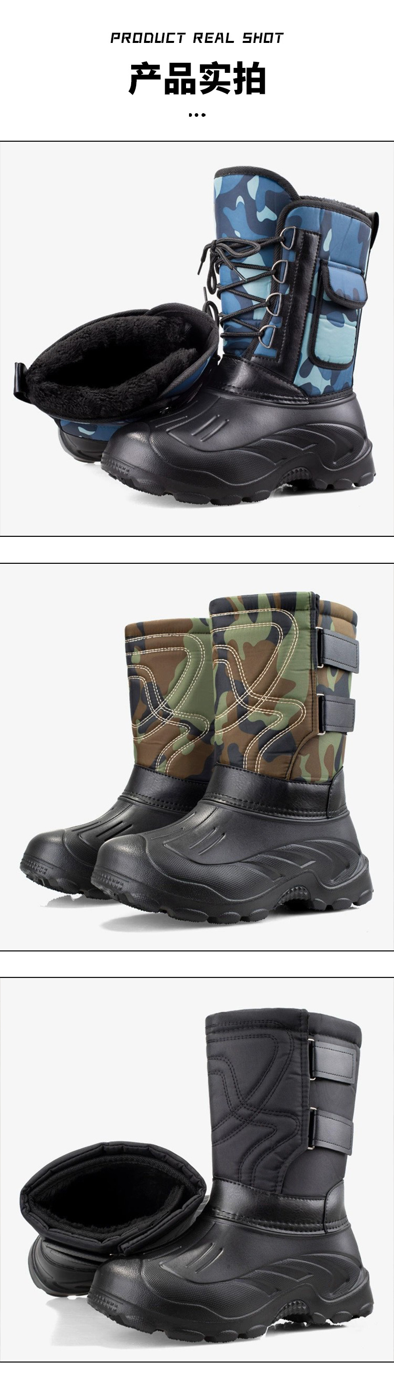 Оптовые зимние камуфляжные мужские теплые ботинки с утеплением, водонепроницаемые сапоги для рыбалки и снега, утепленные ботинки для активного отдыха