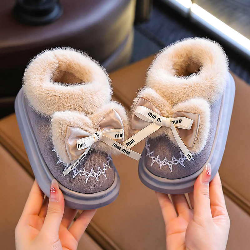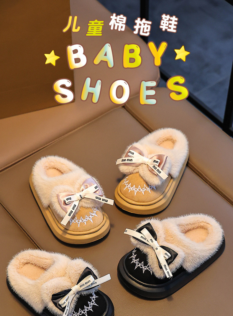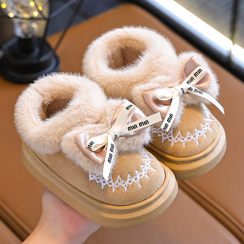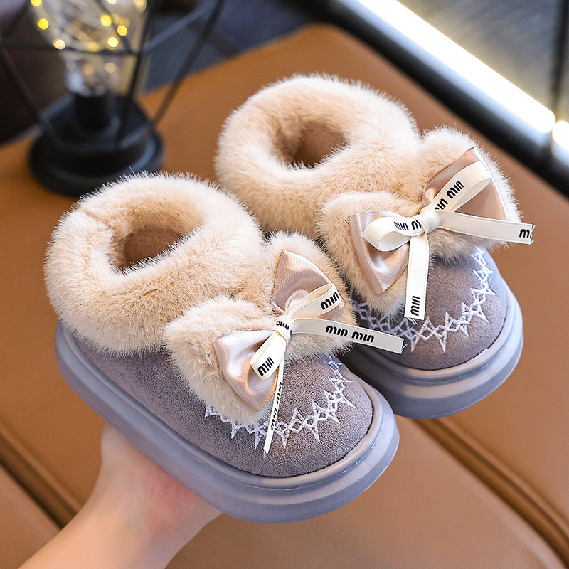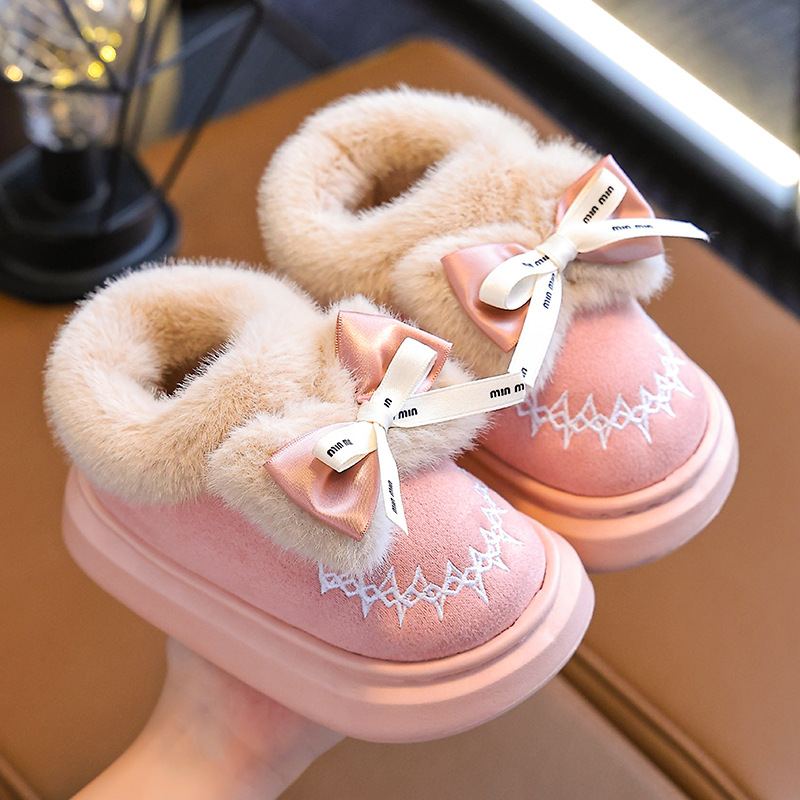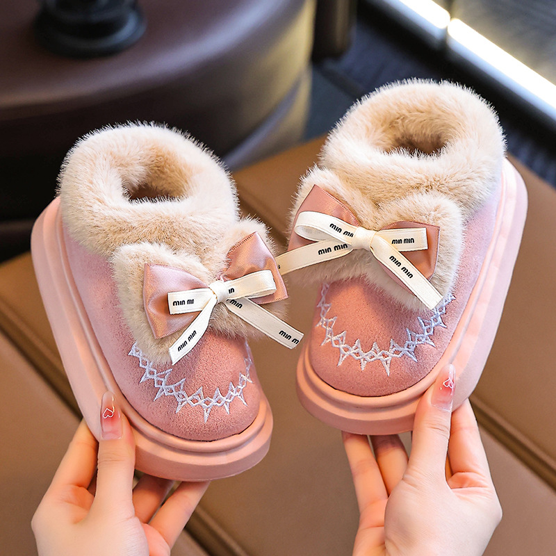 Новинка 2024 года, детская хлопковая обувь, зимние теплые домашние и уличные тапочки для девочек среднего и большого возраста, хлопковые тапочки для маленьких девочек