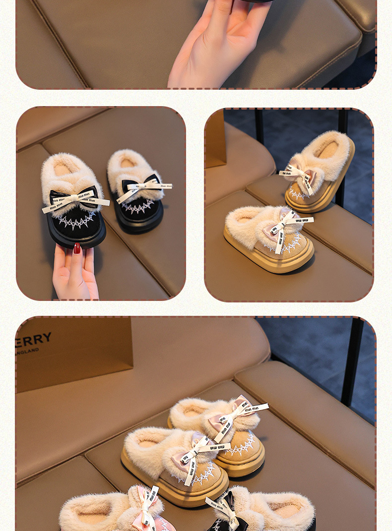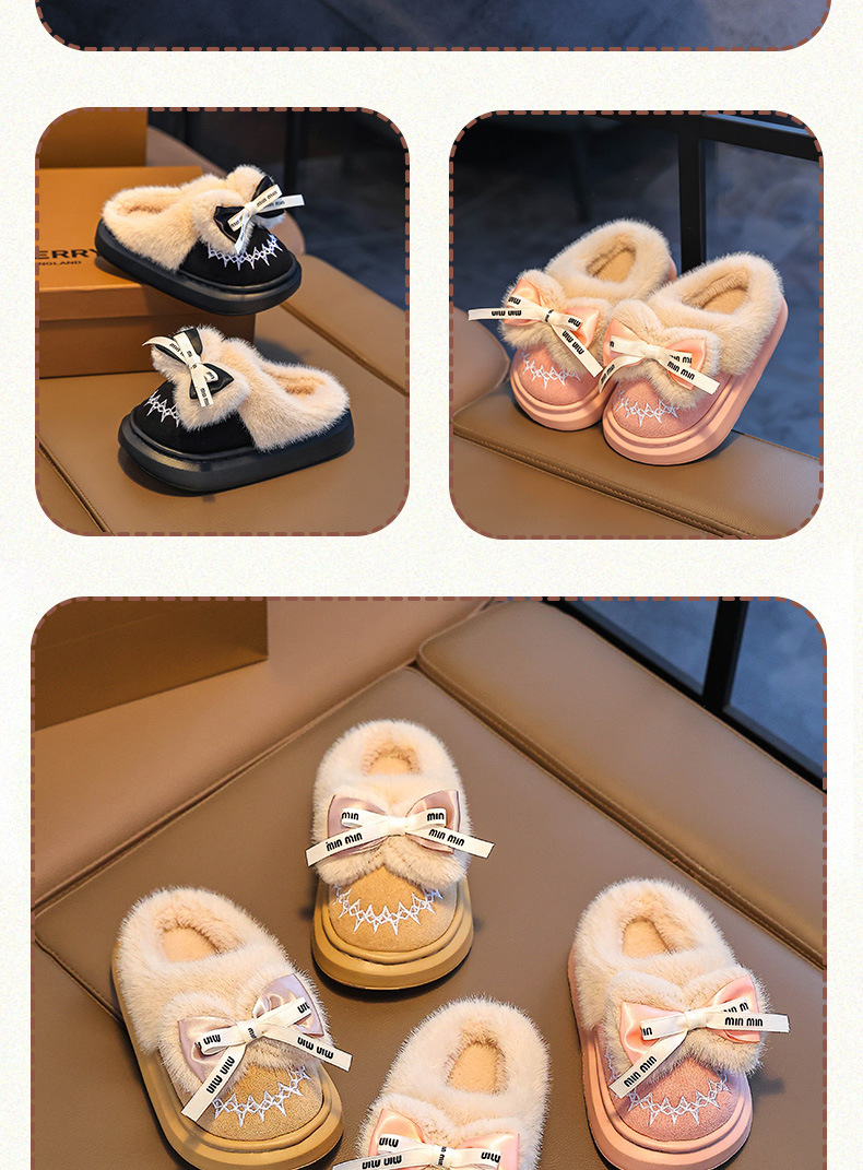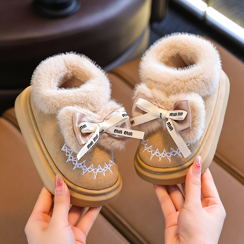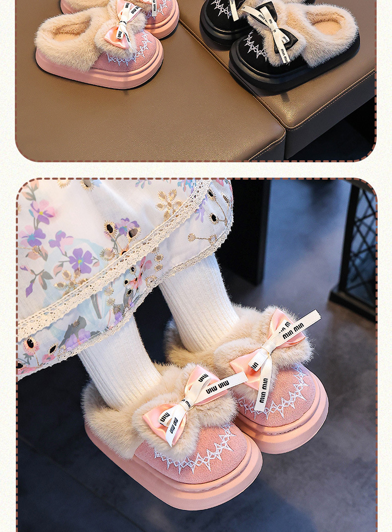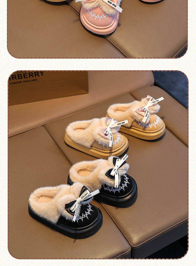 Новинка 2024 года, детская хлопковая обувь, зимние теплые домашние и уличные тапочки для девочек среднего и большого возраста, хлопковые тапочки для маленьких девочек