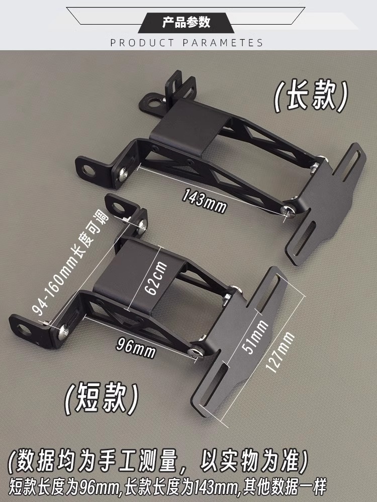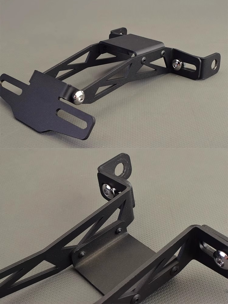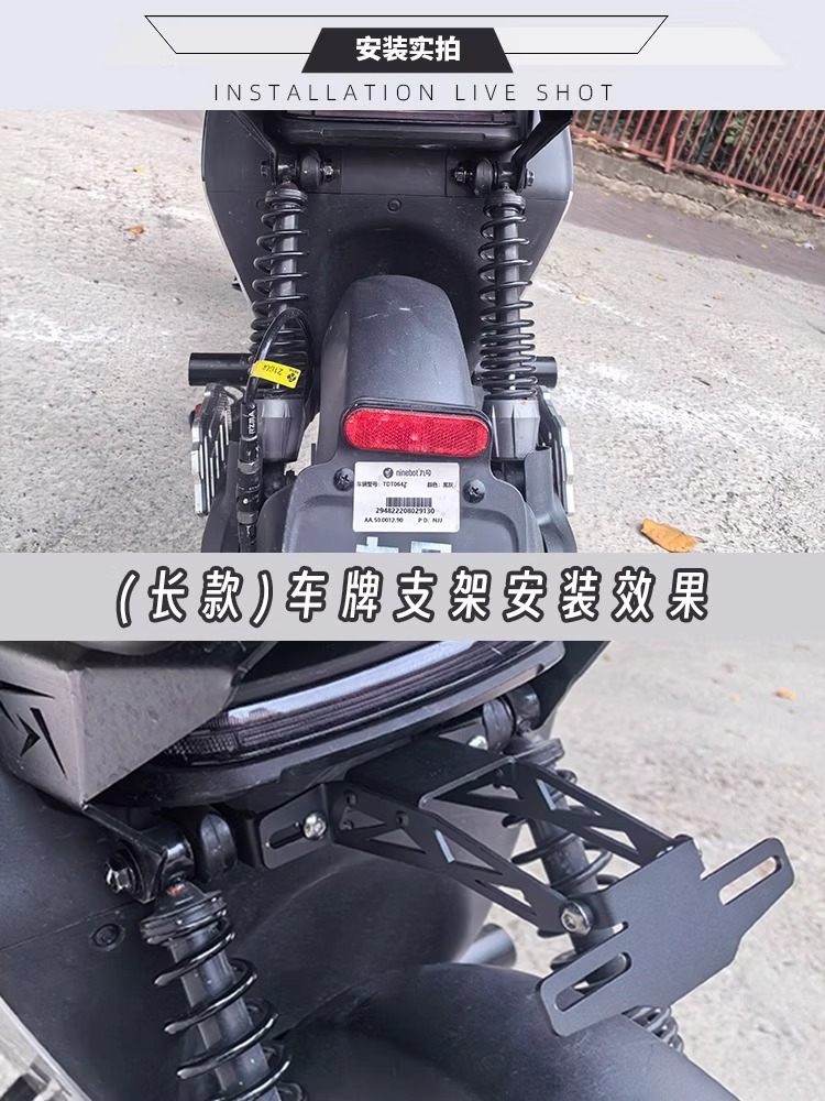 Регулируемый держатель номерного знака в механизме/дома, короткий; Регулируемый держатель номерного знака в механизме/дома, длинный; Универсальную сумку для сиденья и оригинальную хвостовую раму не могут быть установлены.; Подвижная долгое время после установки задней рамы и заднего фонаря.