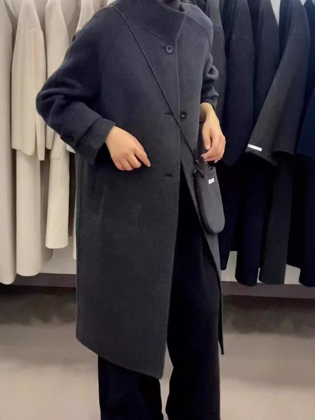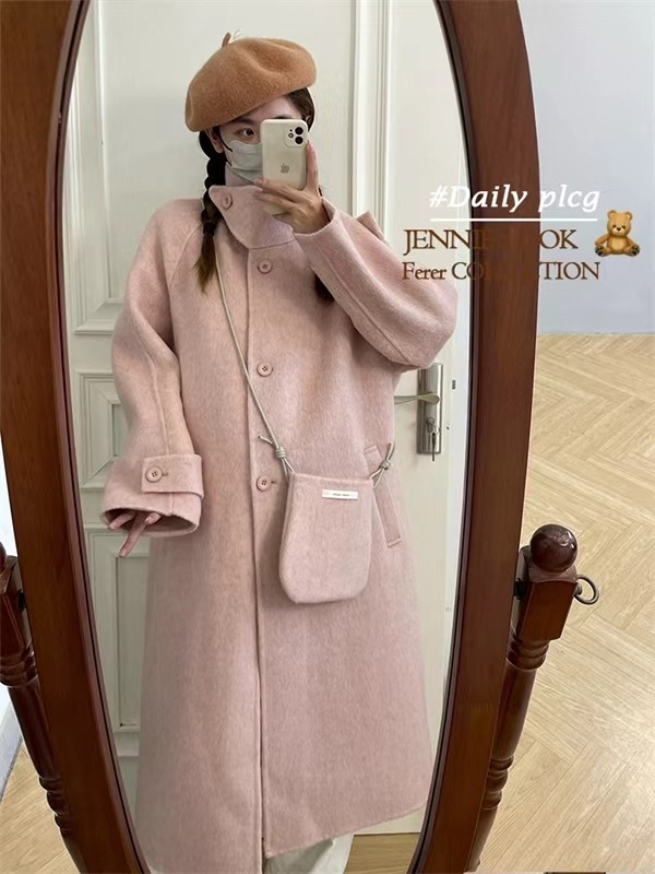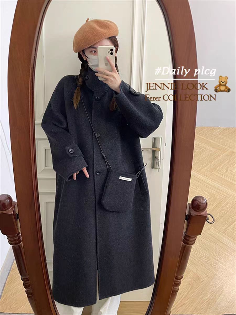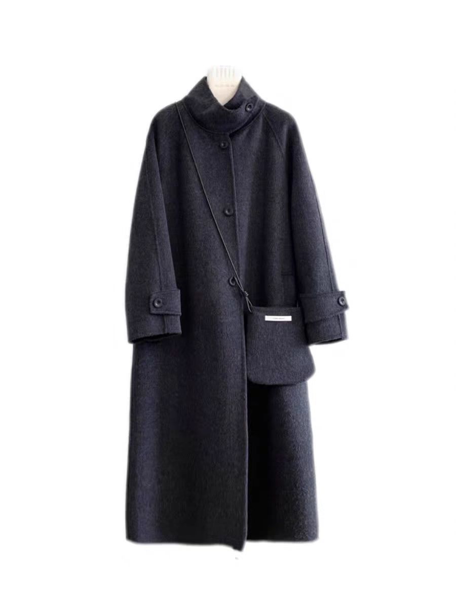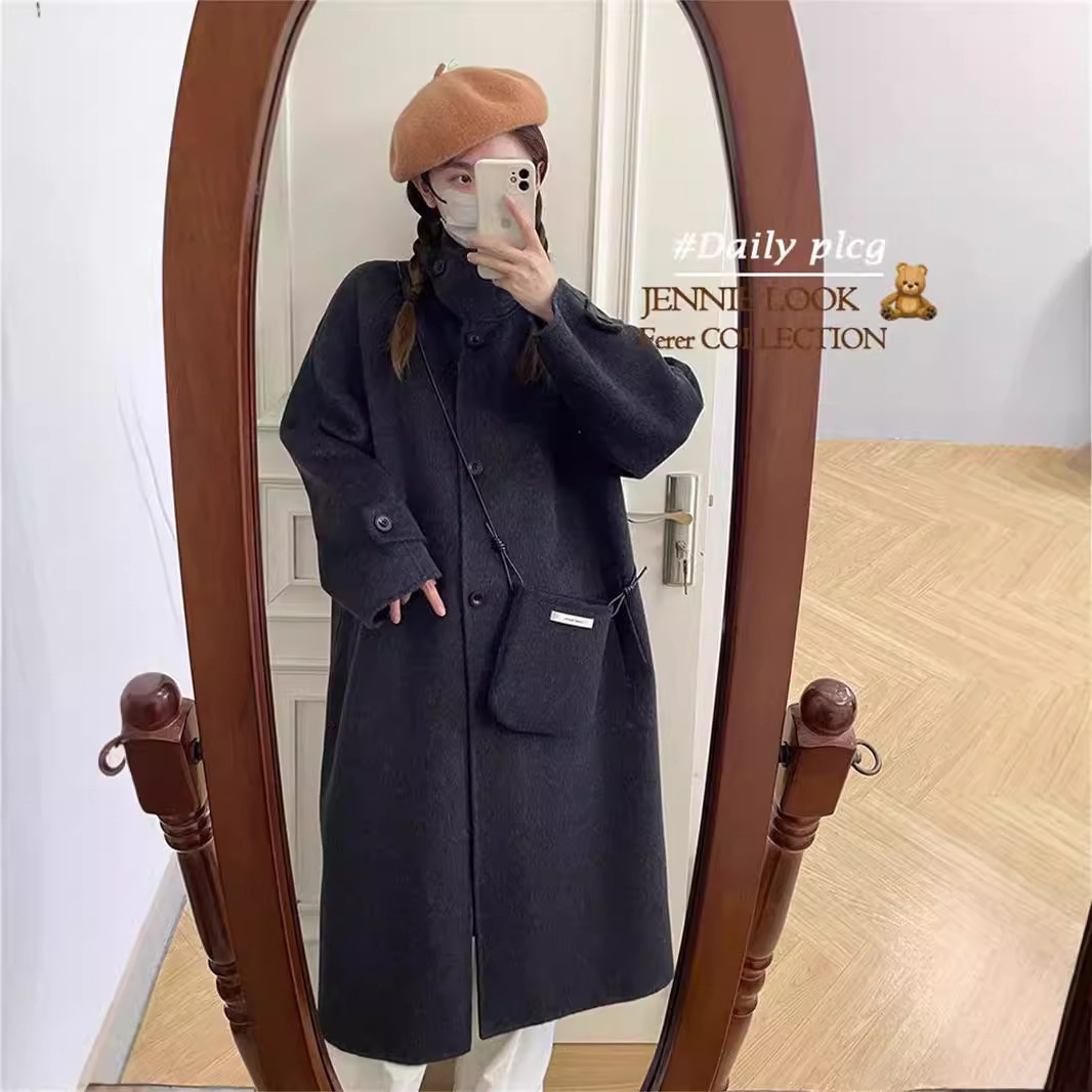 2024 осень и зима новый кросс-сумка куртка плеча однобортный воротник пряжка на коленях плюс повседневное корейское пальто