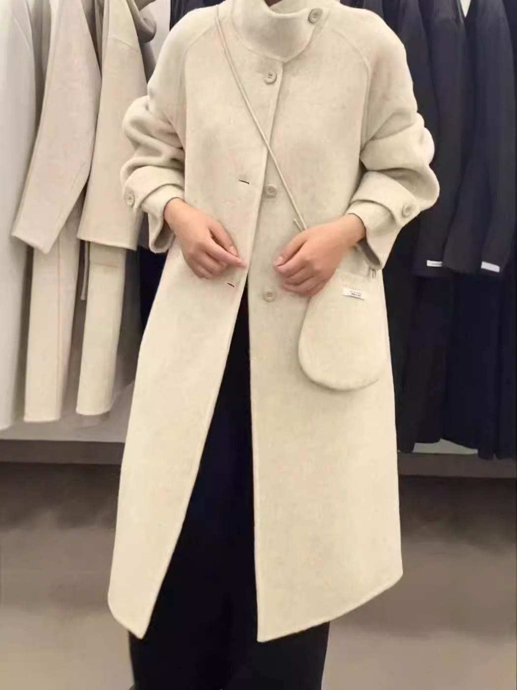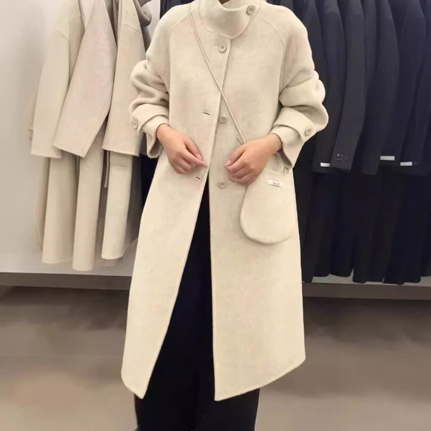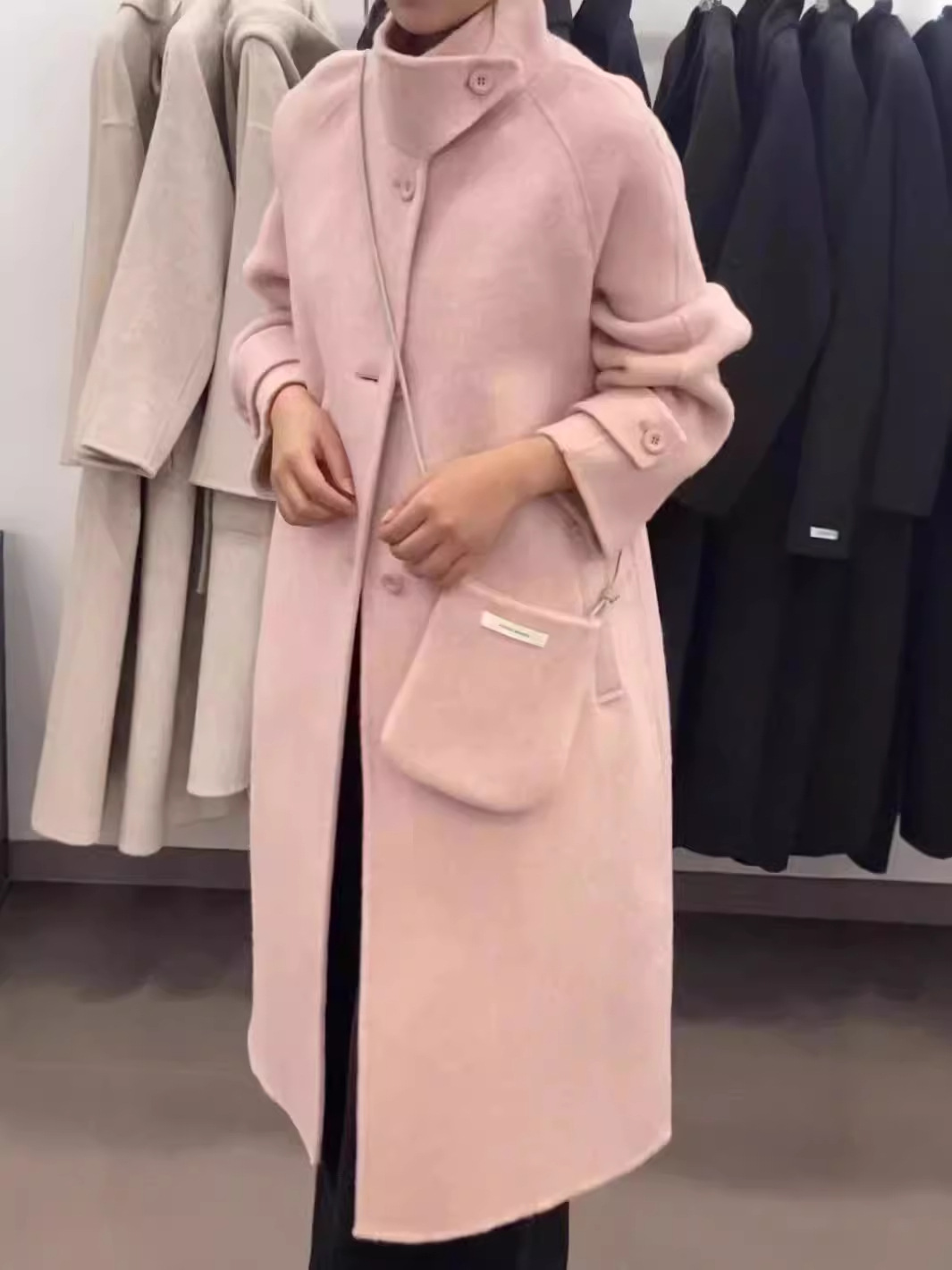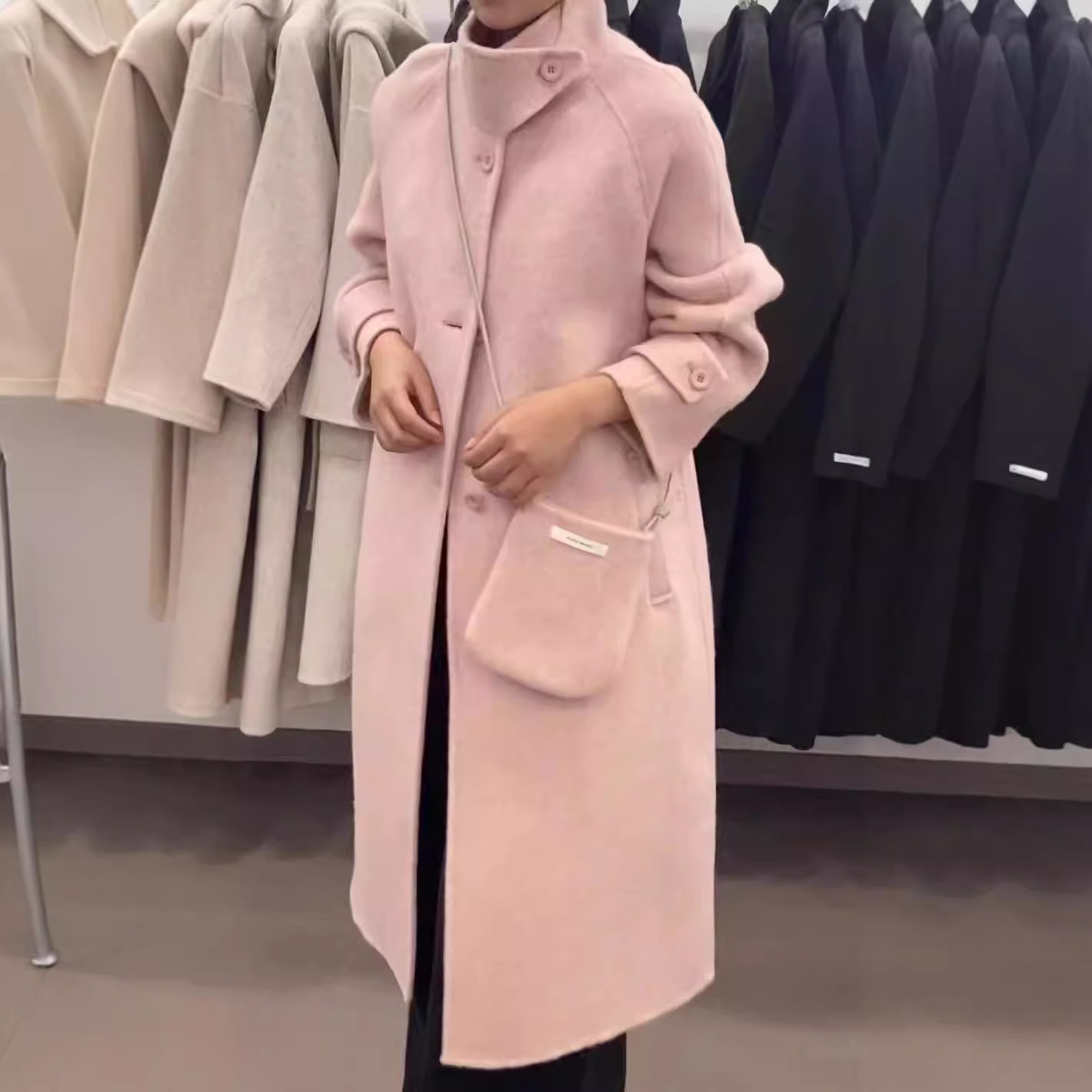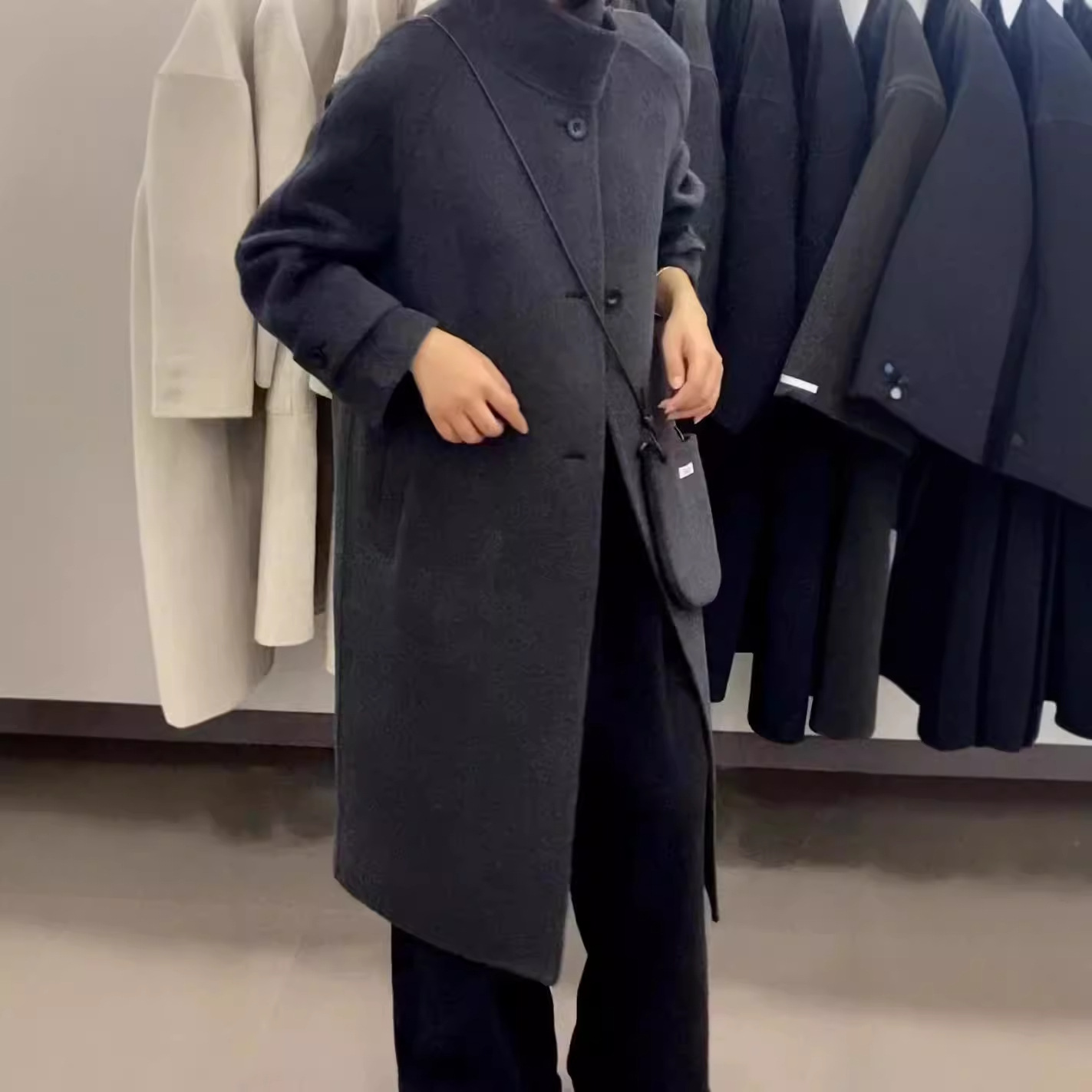 2024 осень и зима новый кросс-сумка куртка плеча однобортный воротник пряжка на коленях плюс повседневное корейское пальто