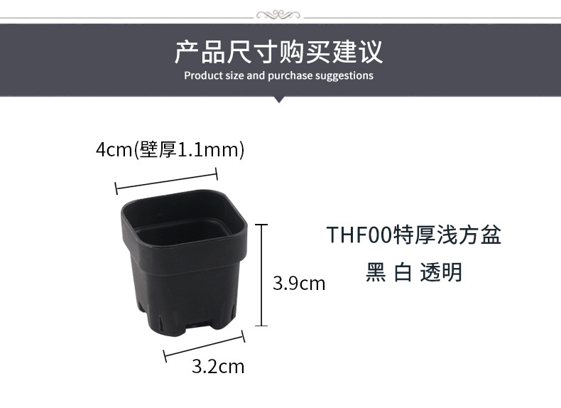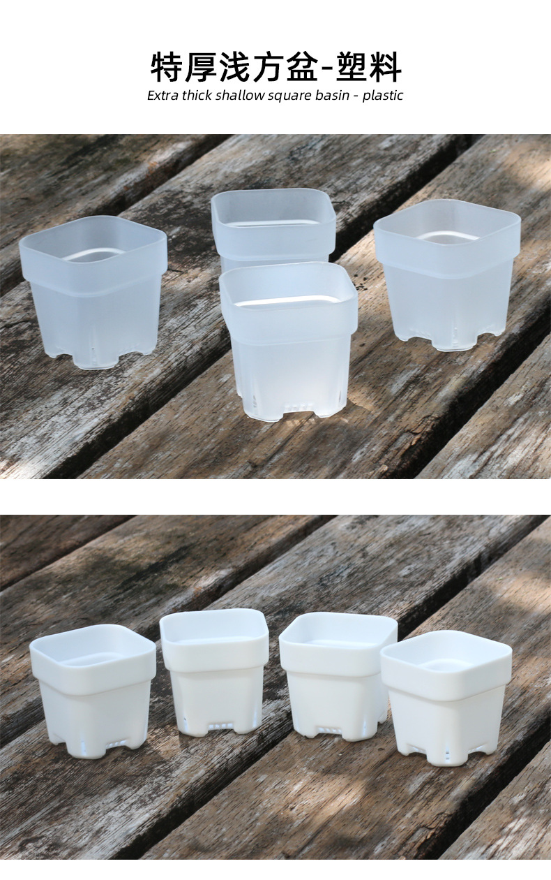4cm очень толстый вид мультисексит цветочный горшок черный пластик карликовый неглубокий квадратный горшок рассада провинциальная почва мини-горшок для большого пальца белый прозрачный